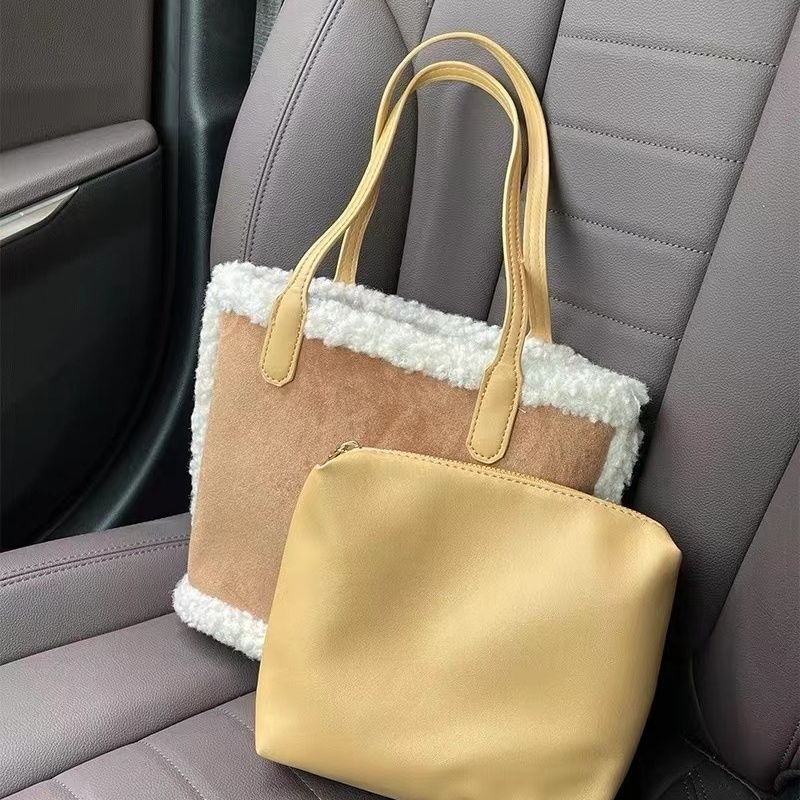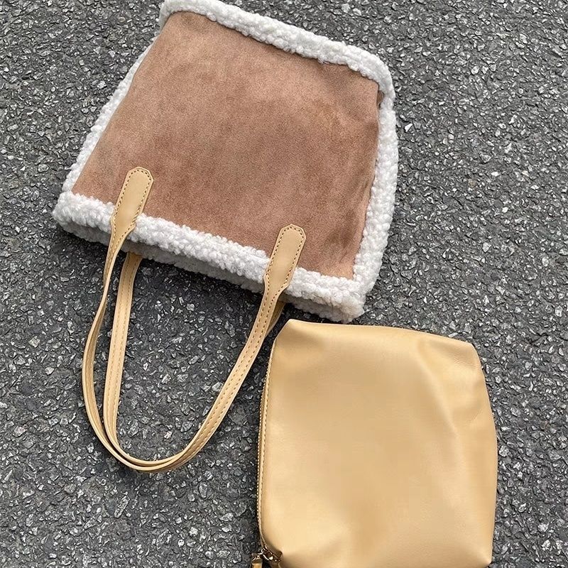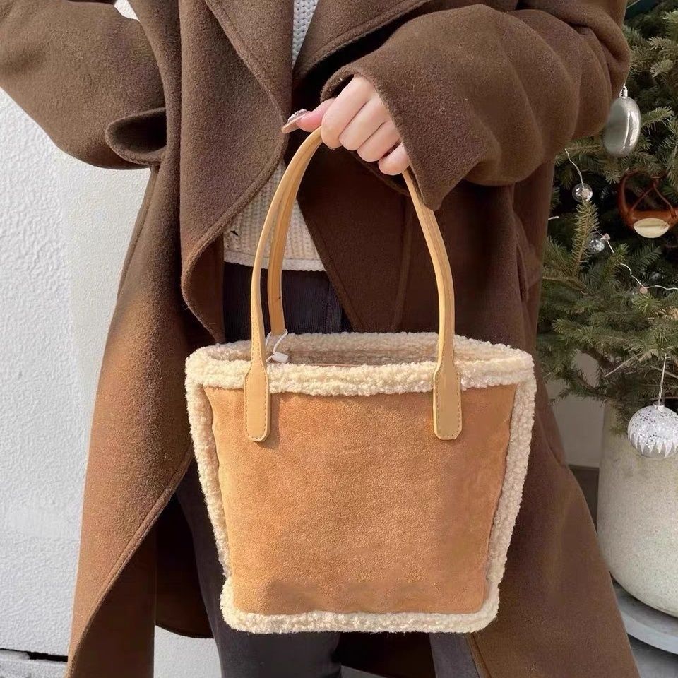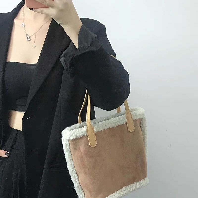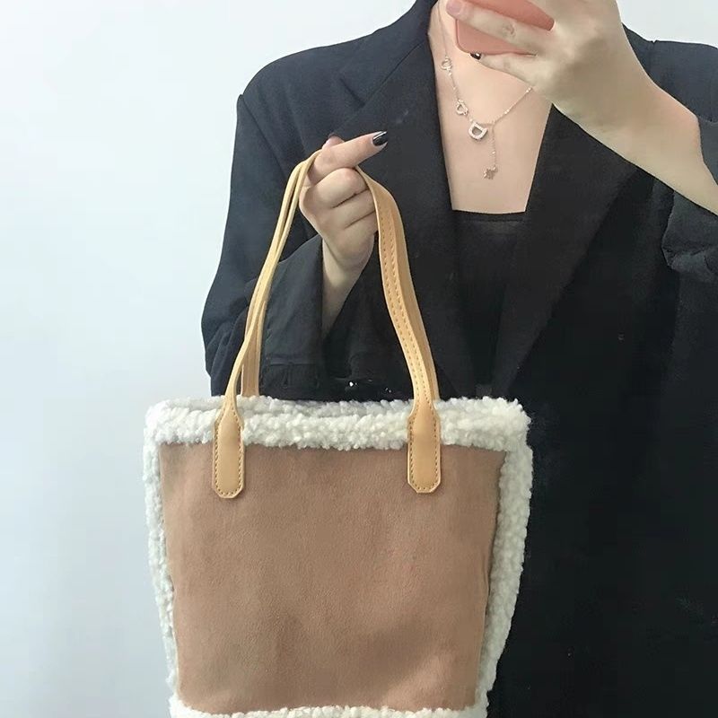 韩系秋冬2023新款羊羔包包复古托特时尚菜篮子百搭单肩手提包拎包