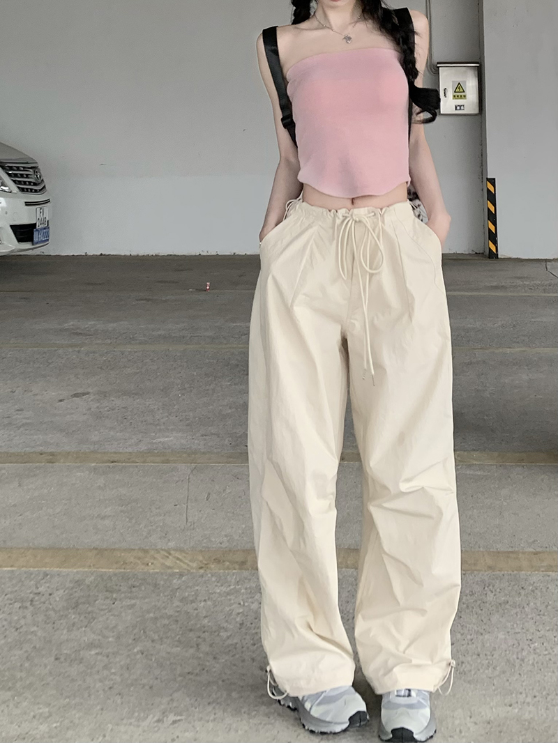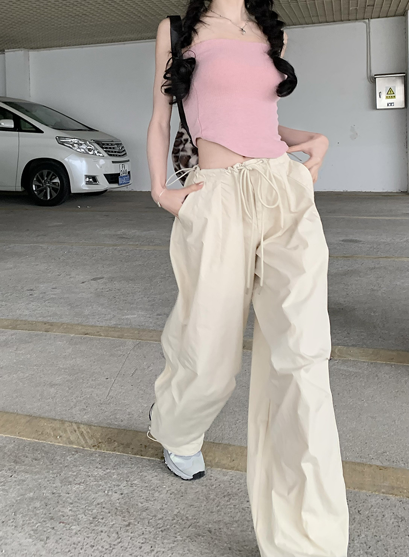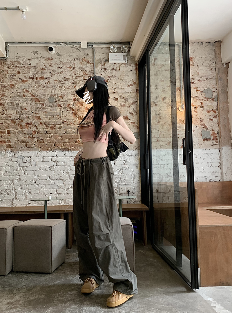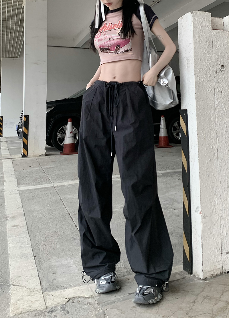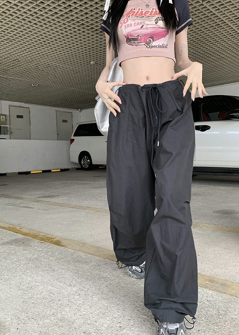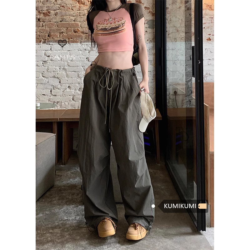 美式復古直筒褲工裝褲休閒褲女秋季辣妹闊腿褲高腰垂感拖地長褲子