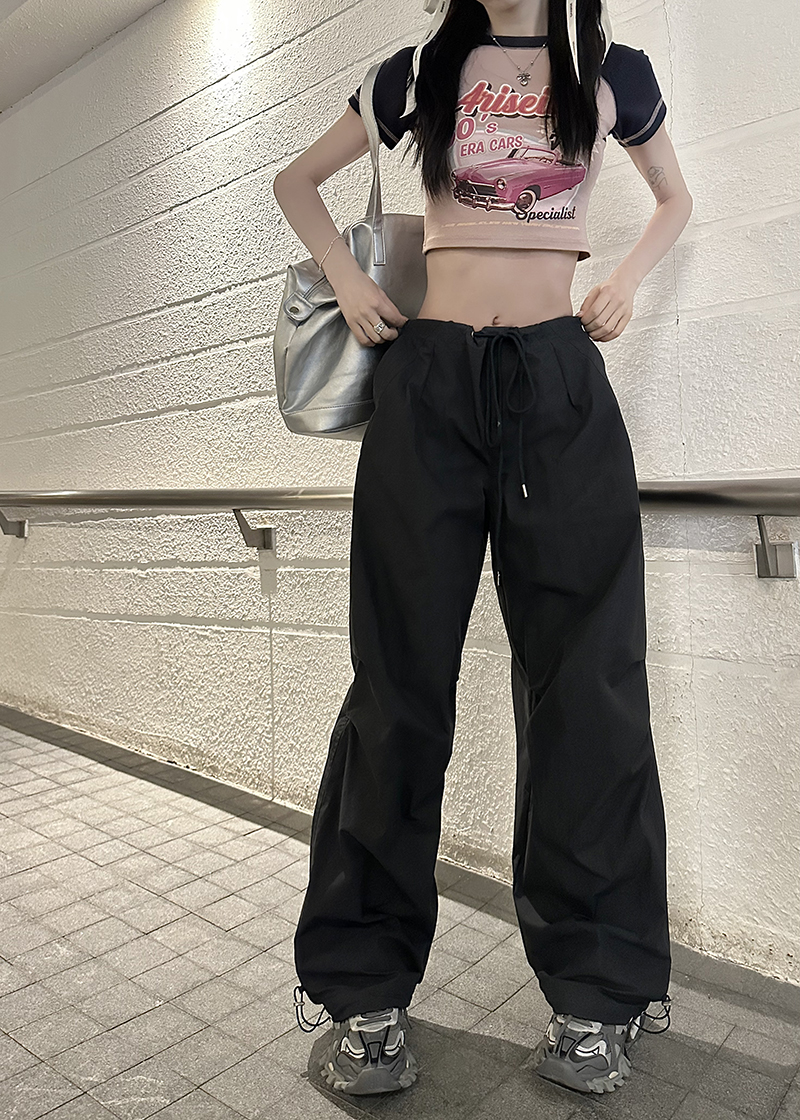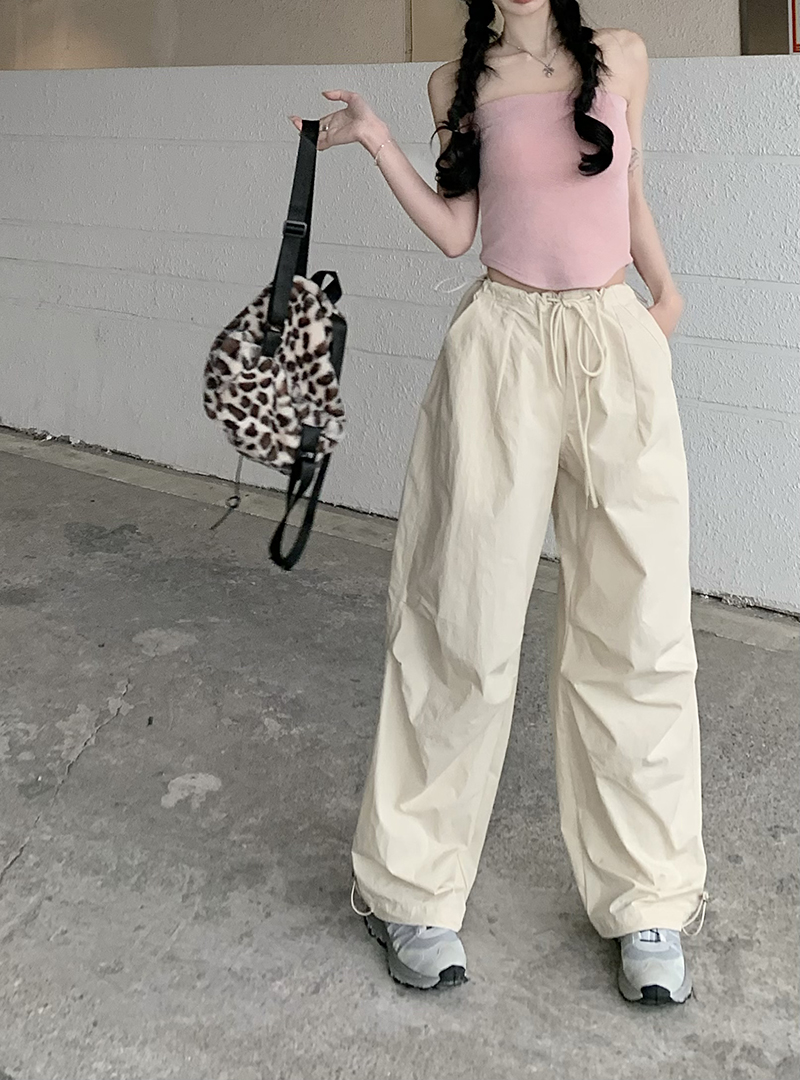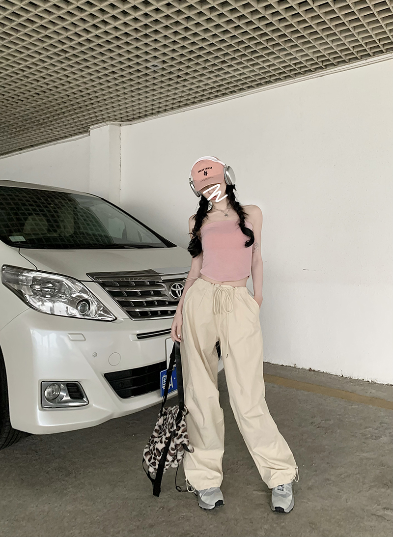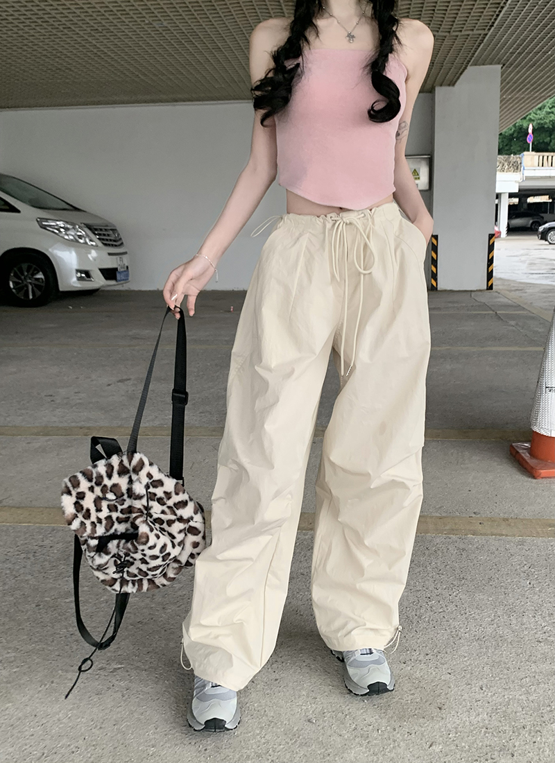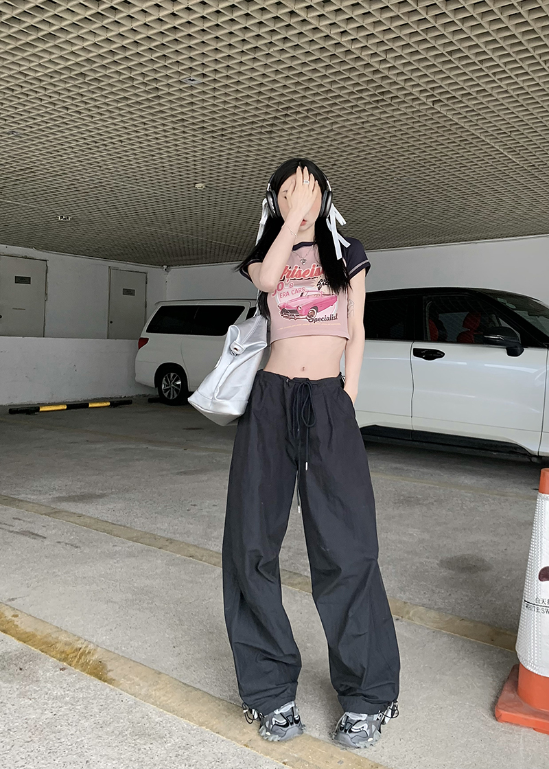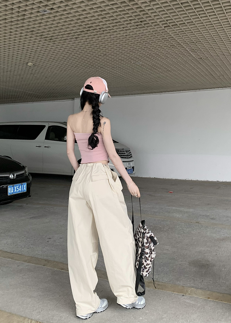 美式復古直筒褲工裝褲休閒褲女秋季辣妹闊腿褲高腰垂感拖地長褲子