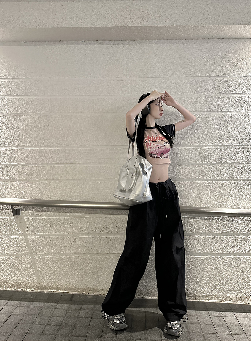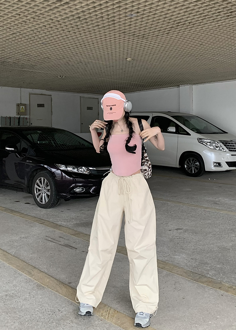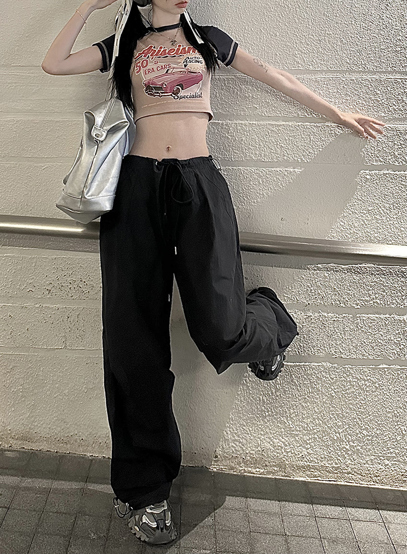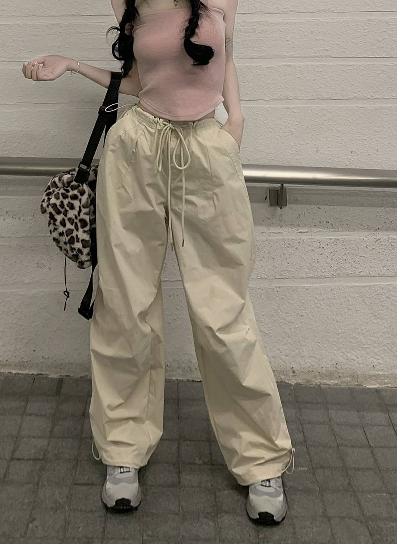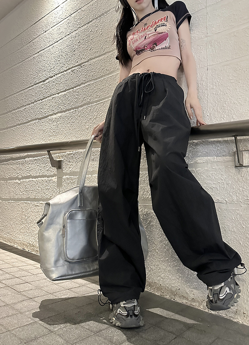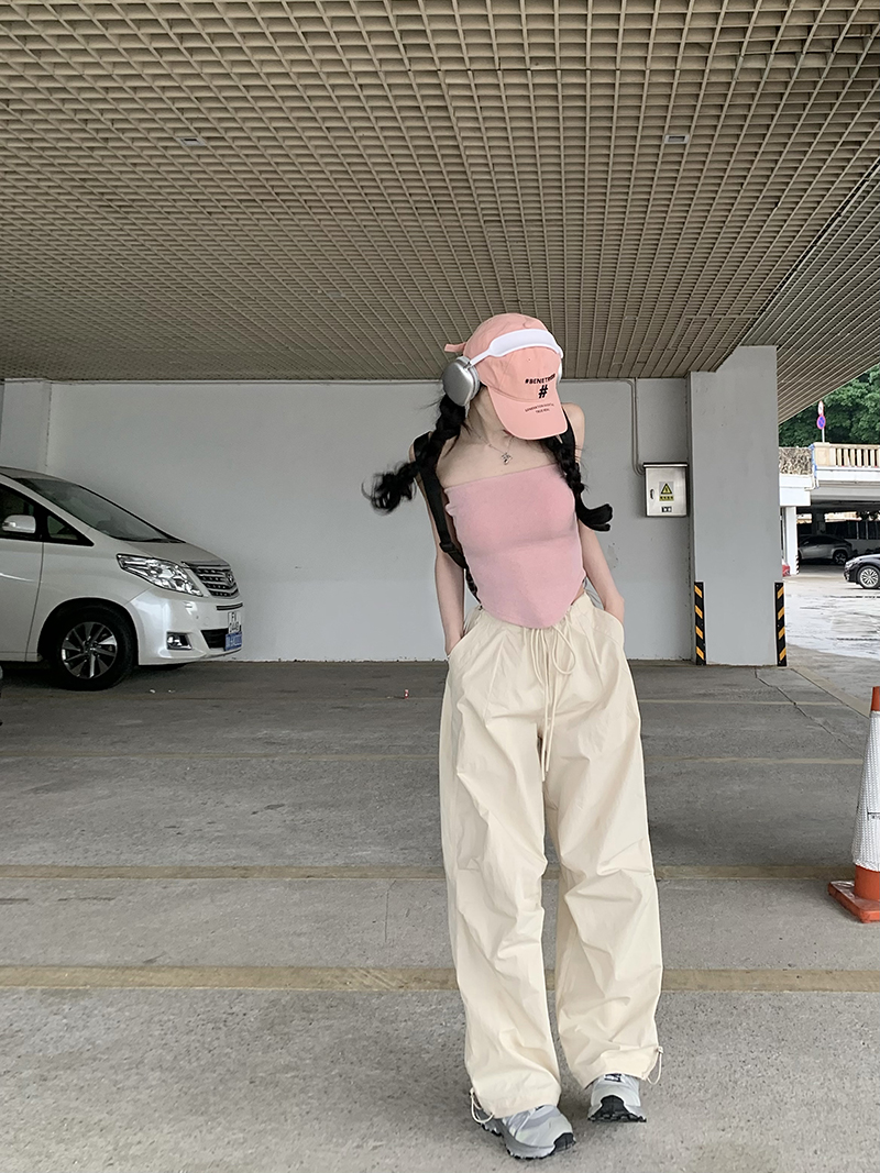 美式復古直筒褲工裝褲休閒褲女秋季辣妹闊腿褲高腰垂感拖地長褲子