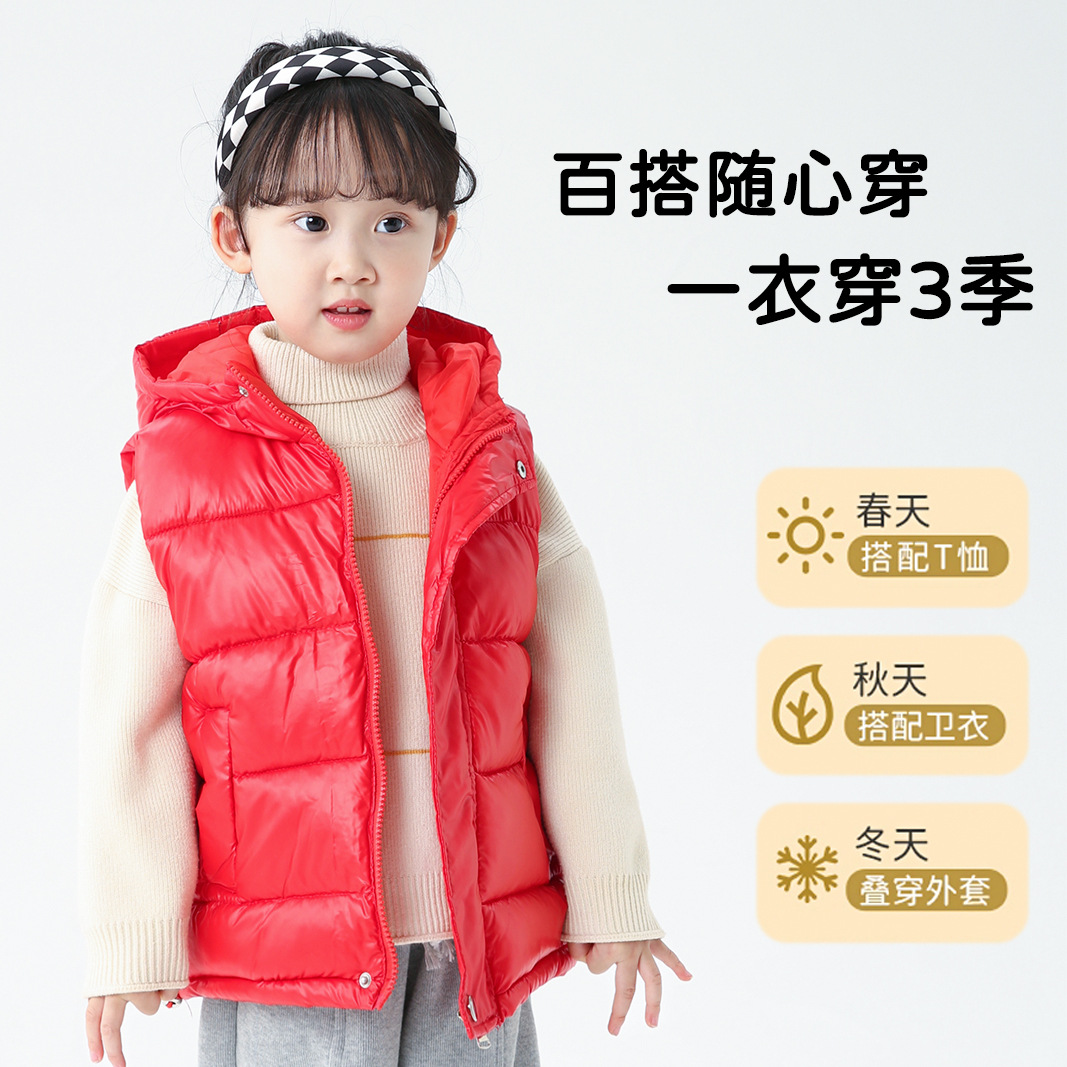 跨境外贸亚马逊热卖儿童秋冬马甲男童女童宝宝亲子装连帽冬装外穿