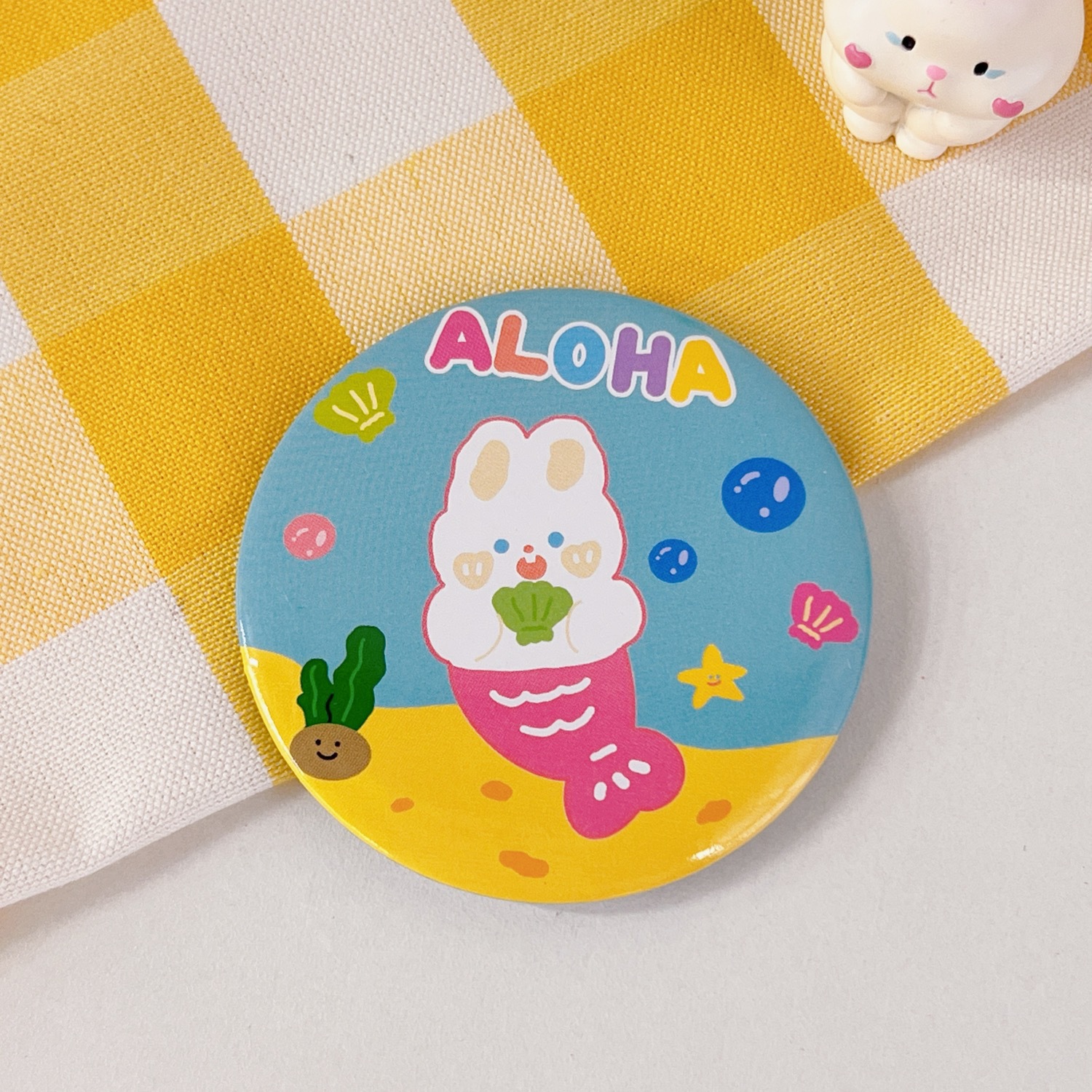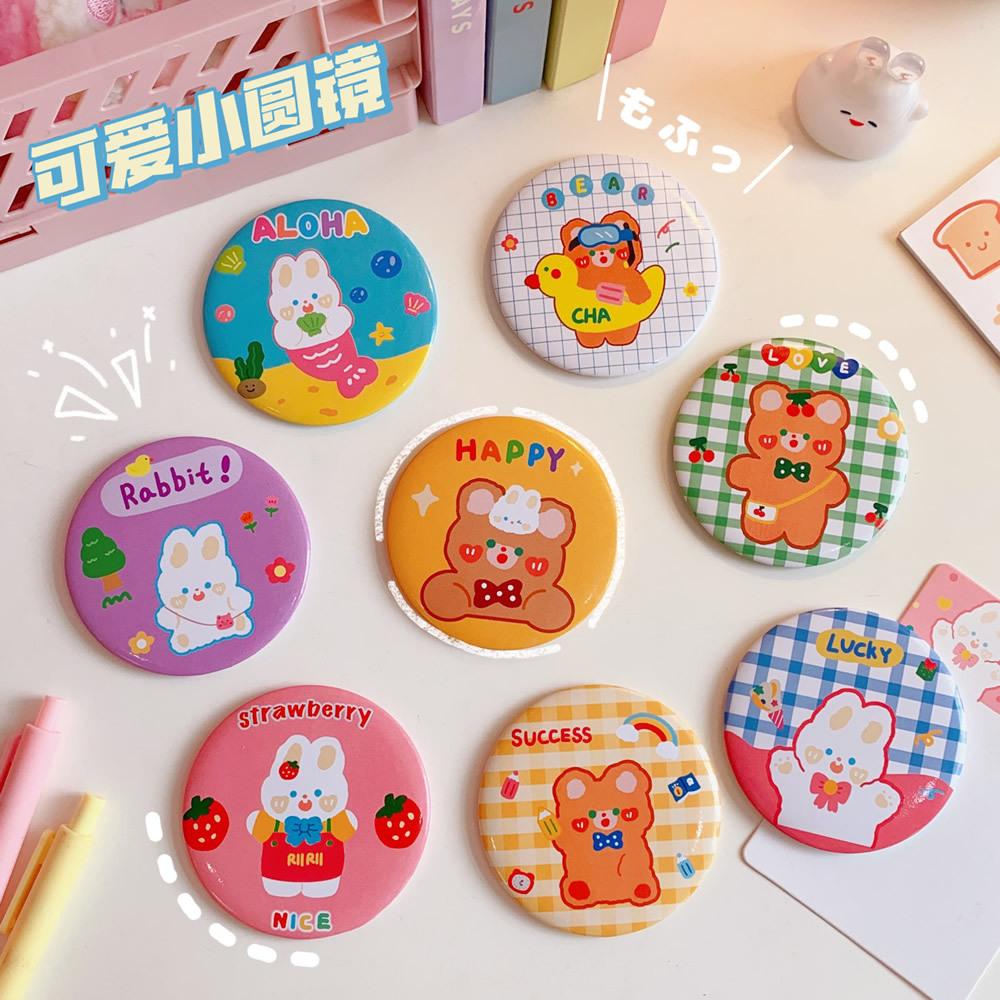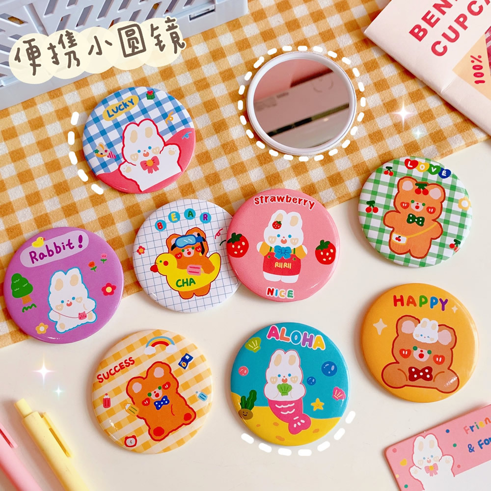 创意迷你单面小圆镜可爱便携芮芮兔化妆镜学生少女心随身梳妆镜