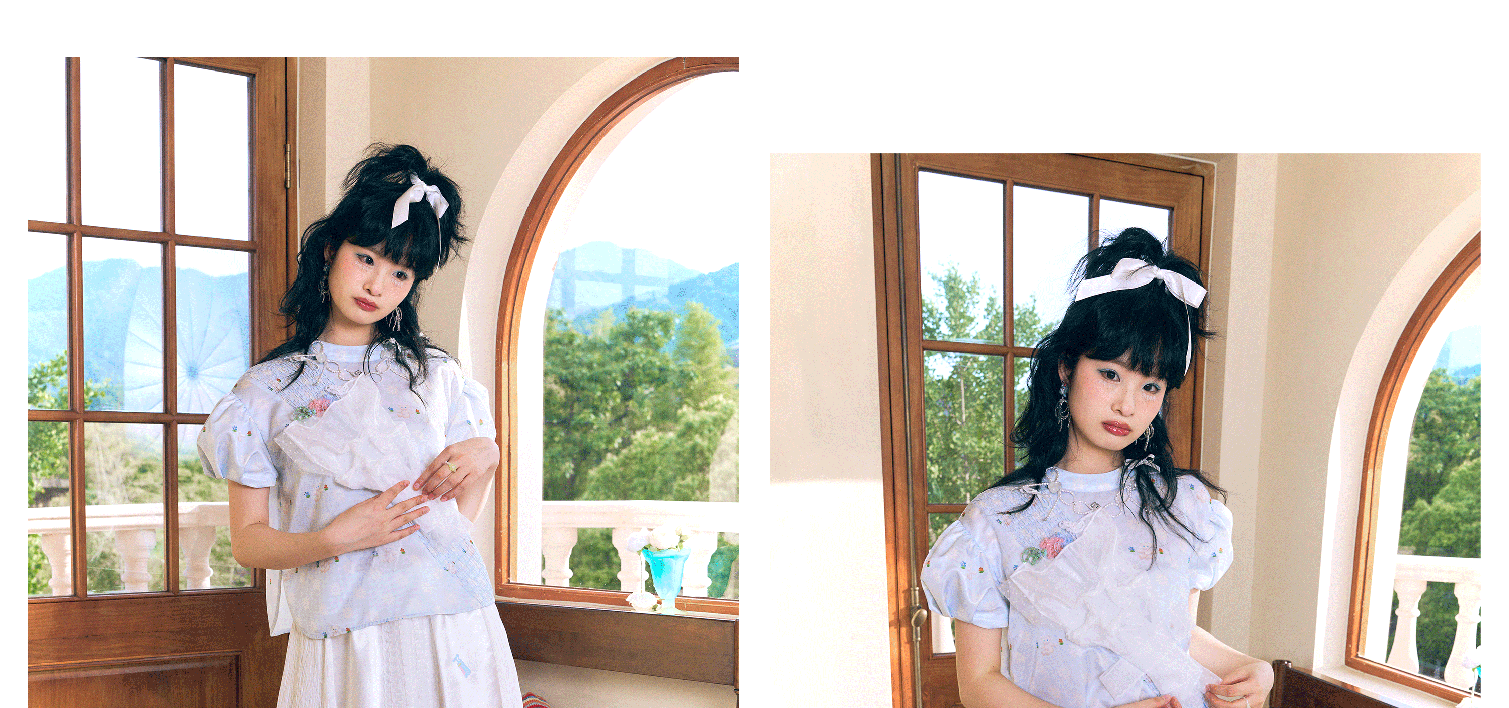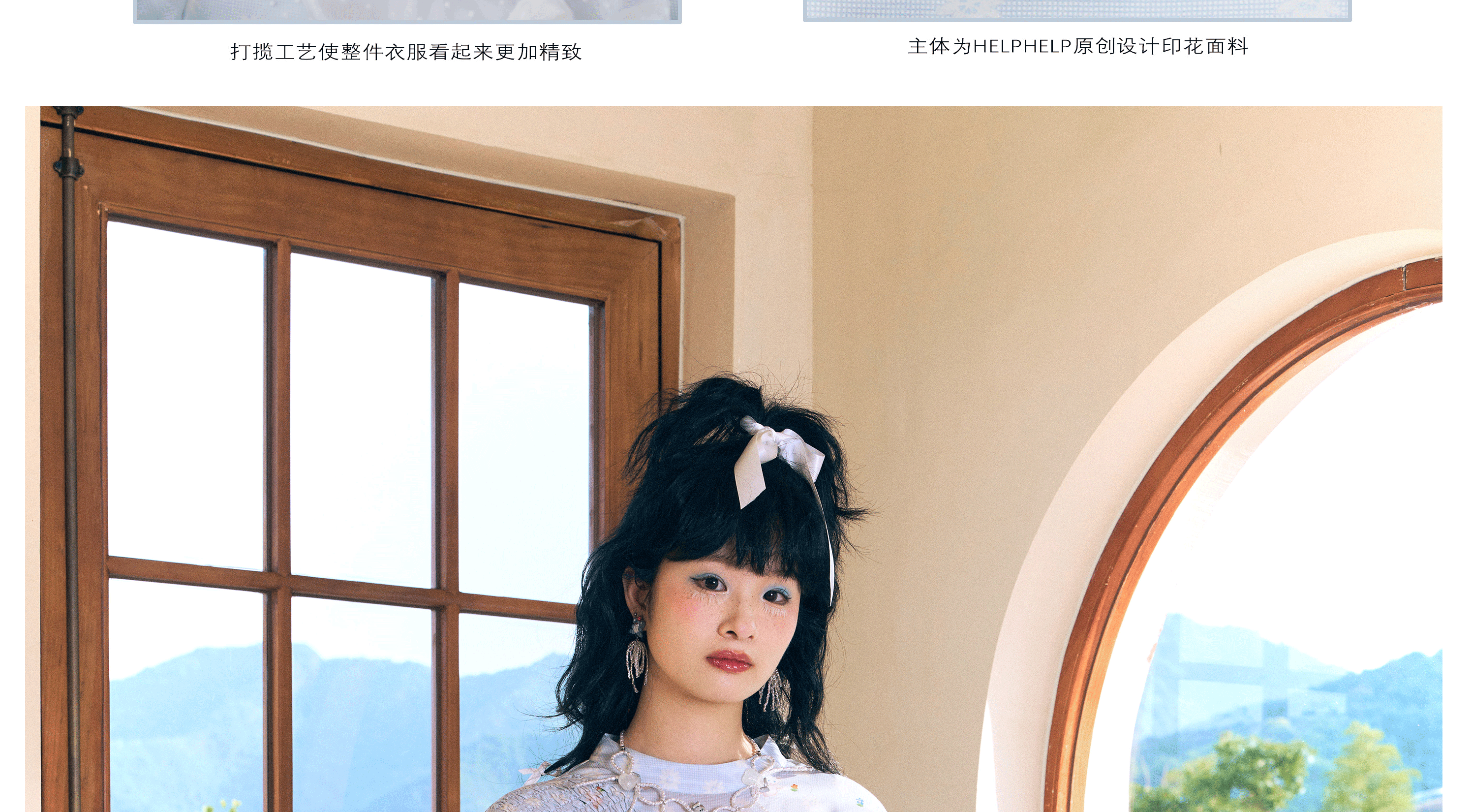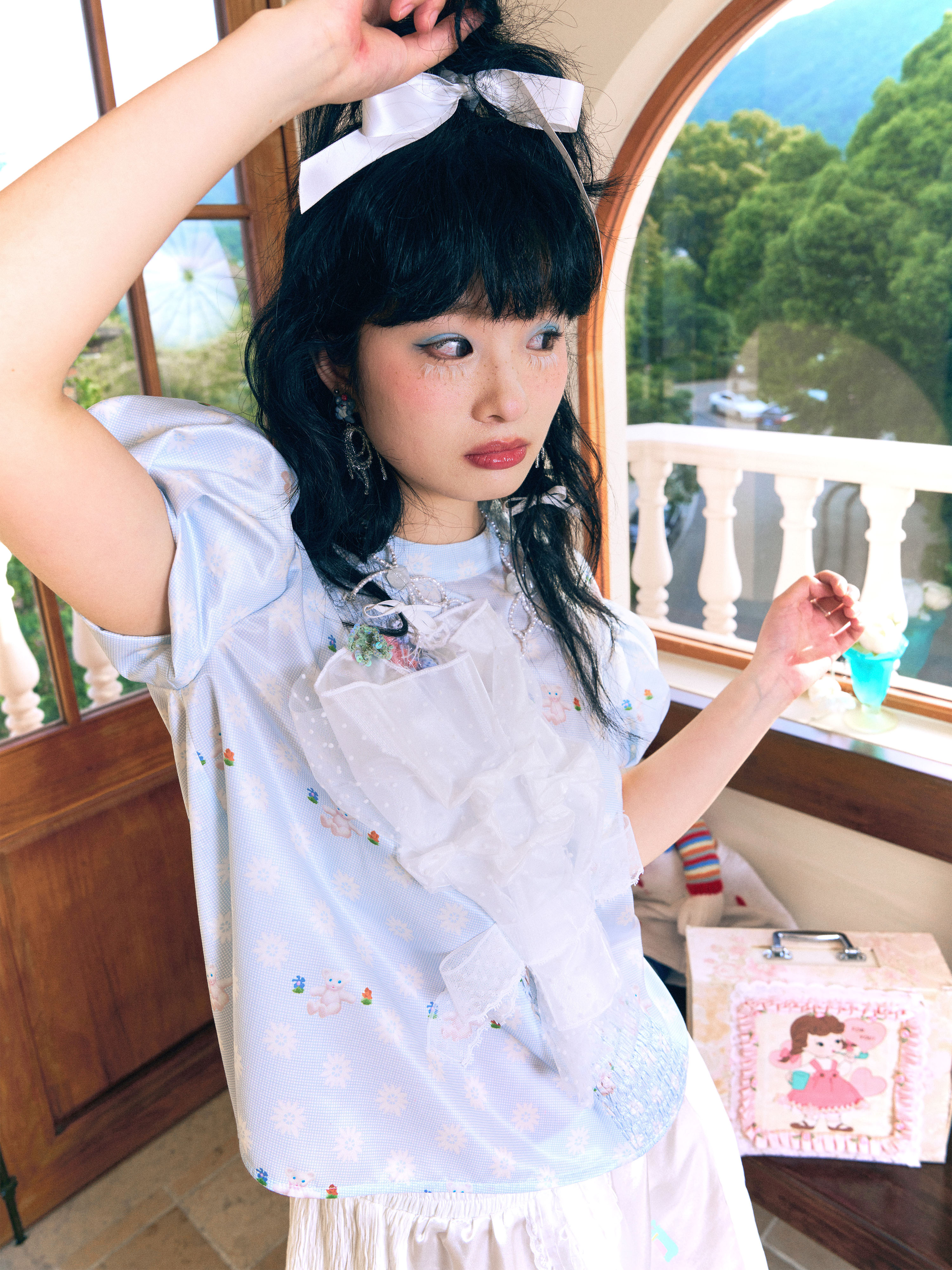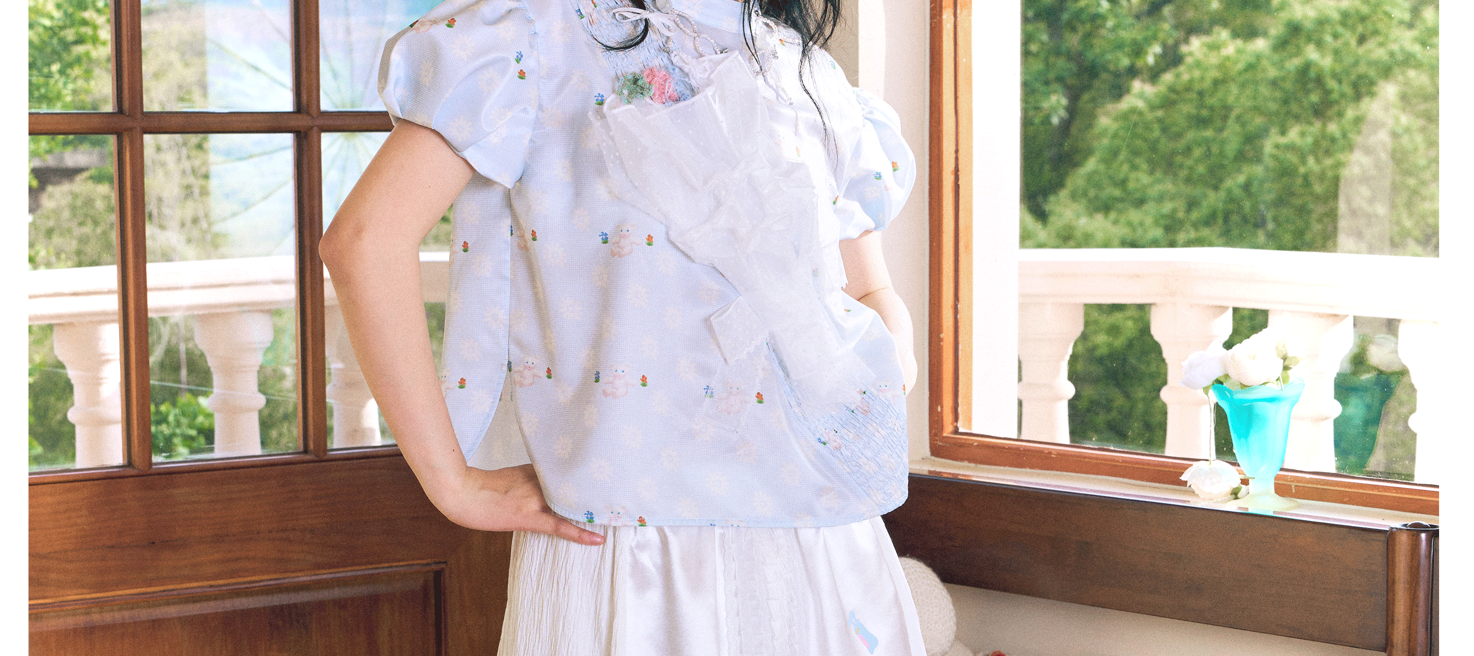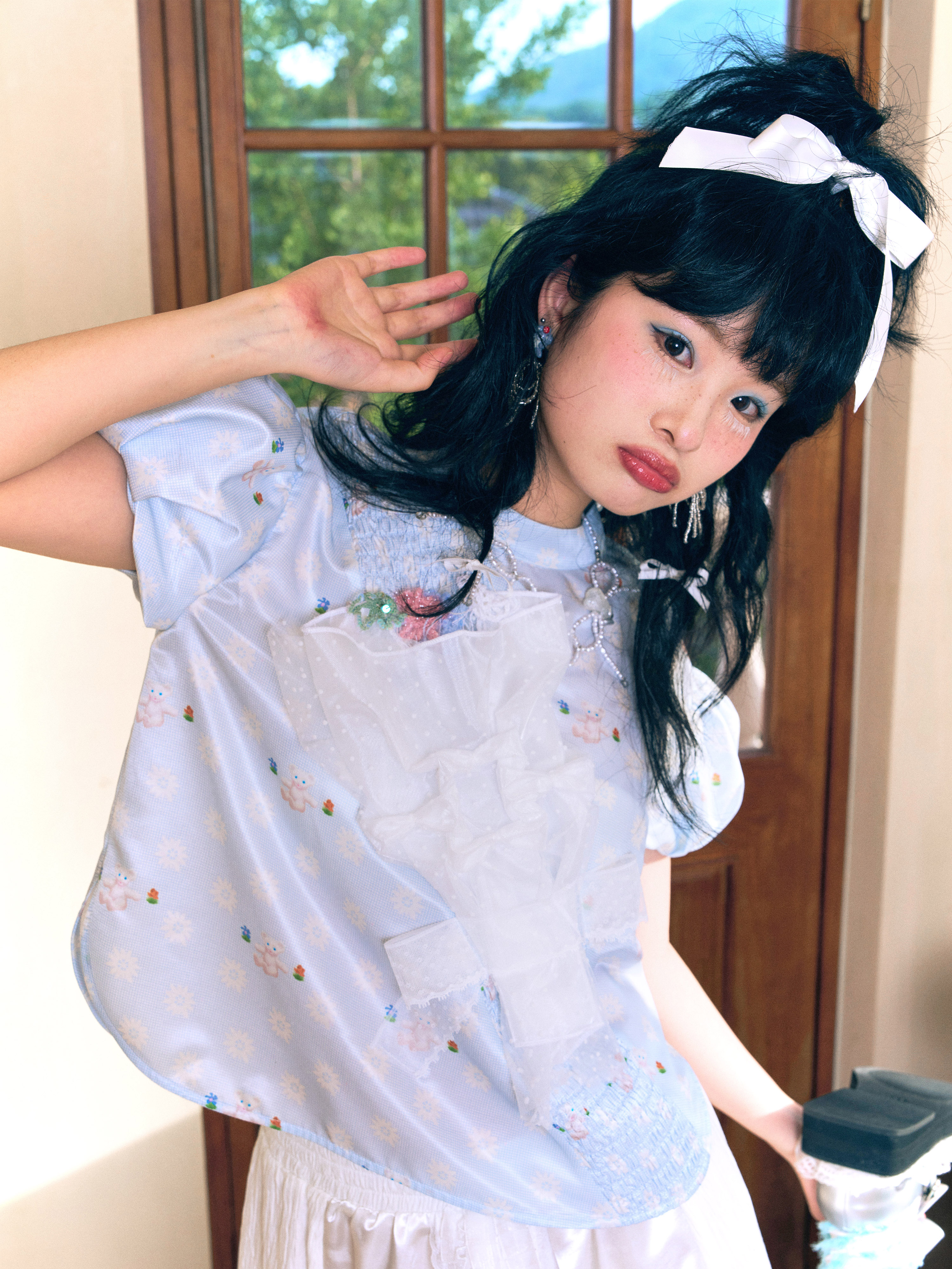 HELPHELP外星社花園系列藍色印花花束手工可愛襯衫2023夏季新品