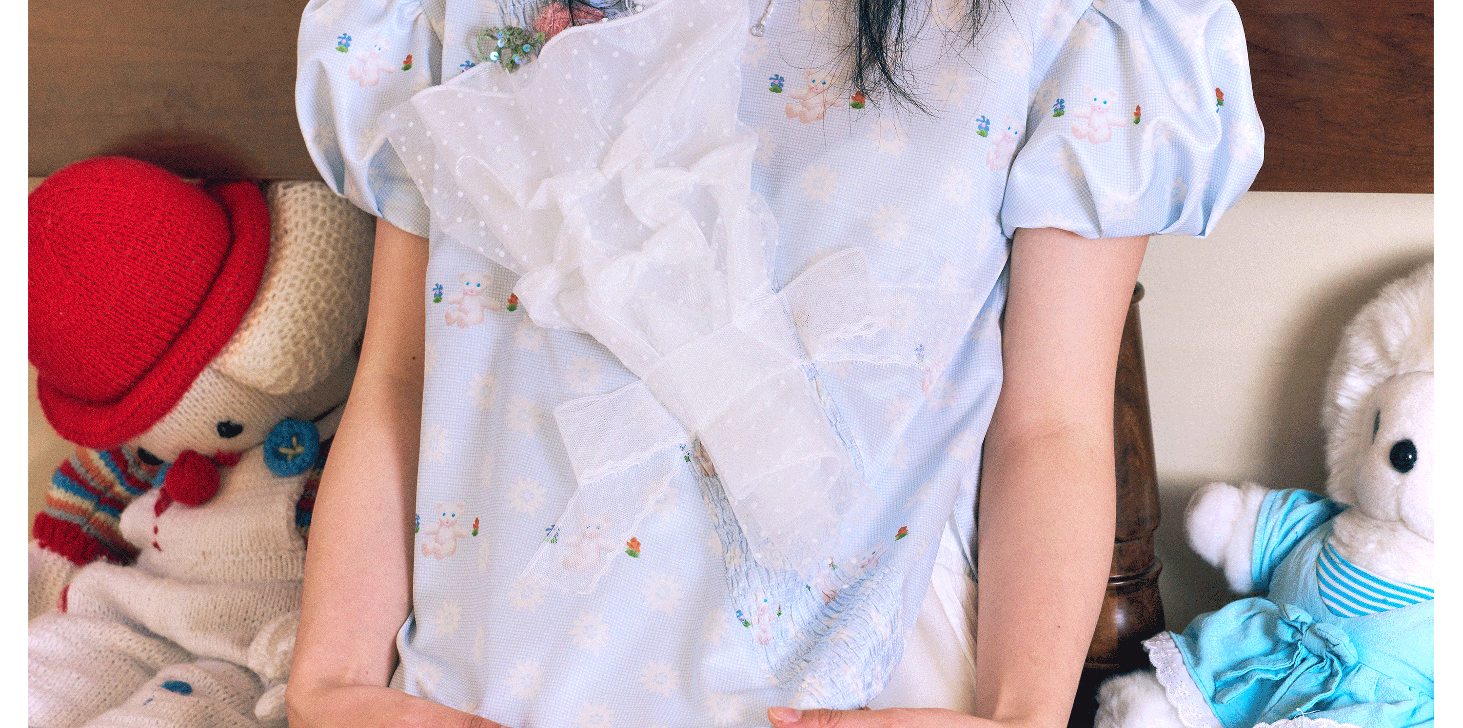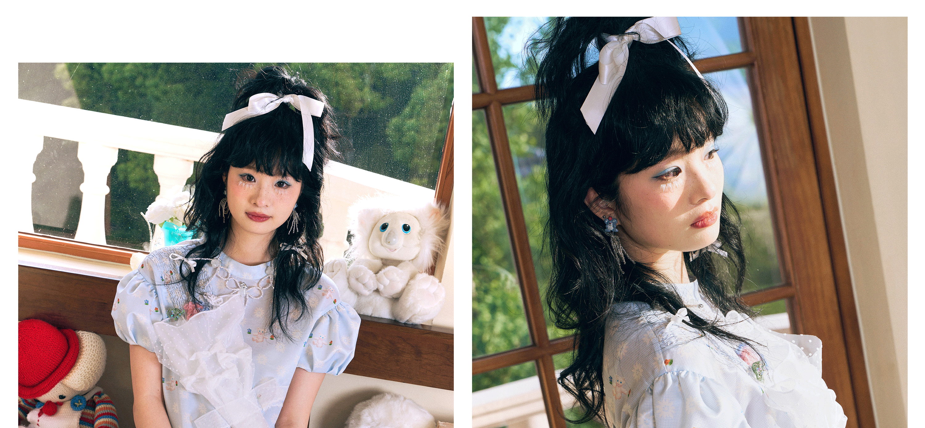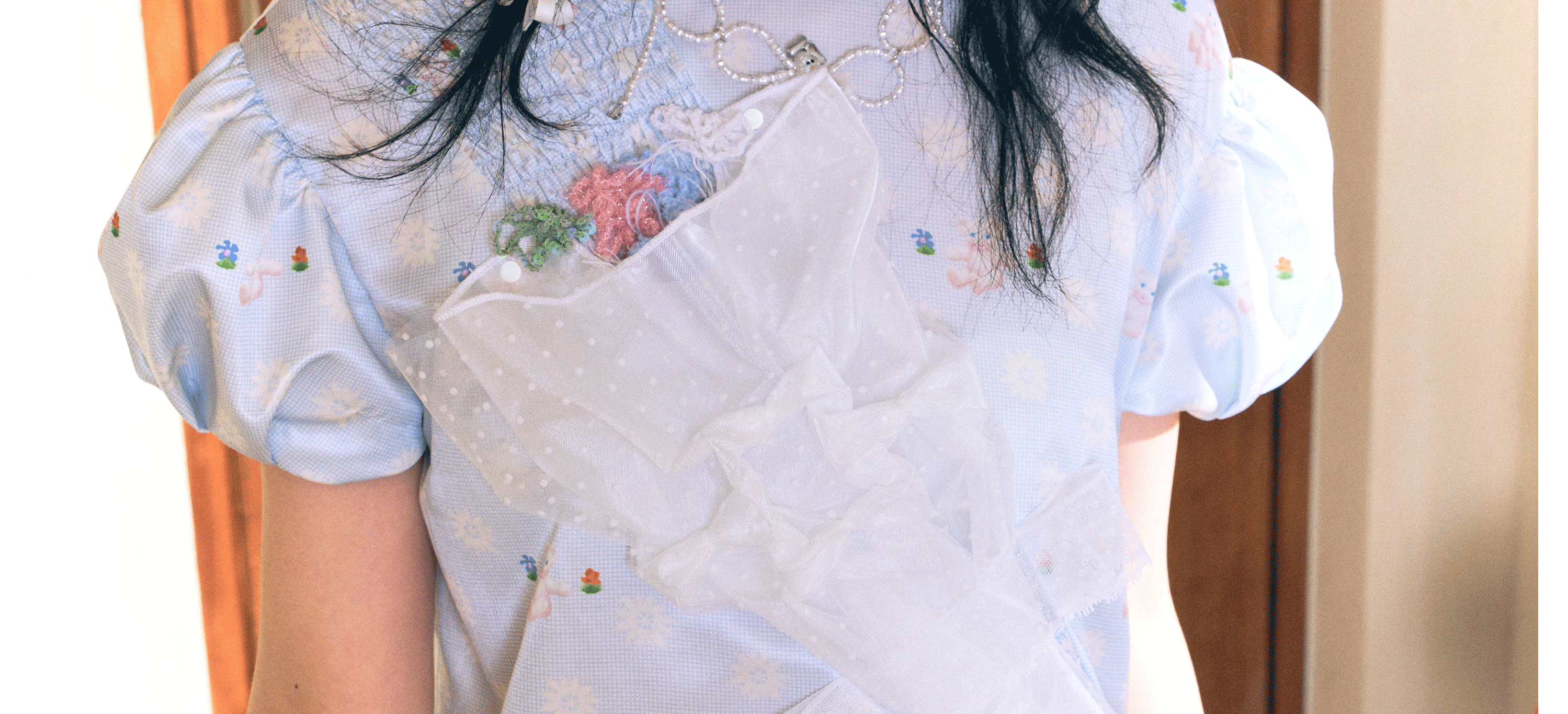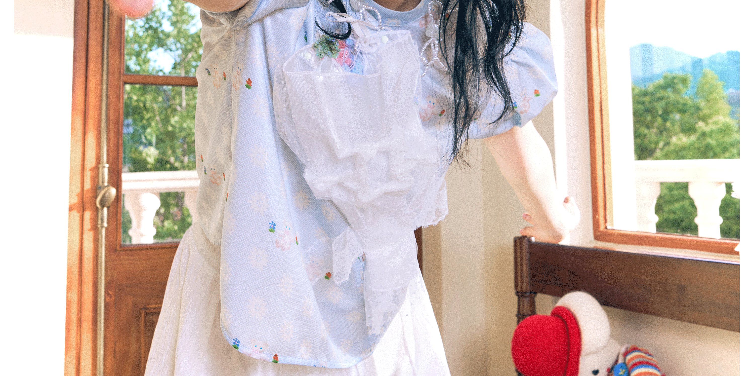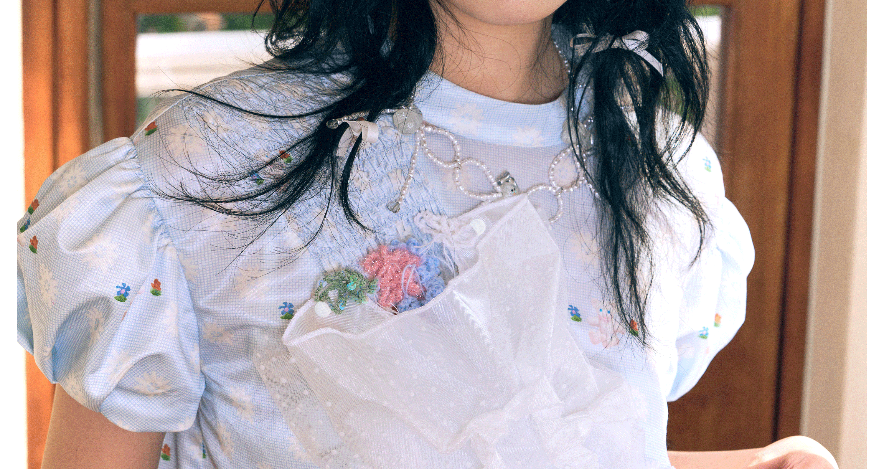 HELPHELP外星社花園系列藍色印花花束手工可愛襯衫2023夏季新品