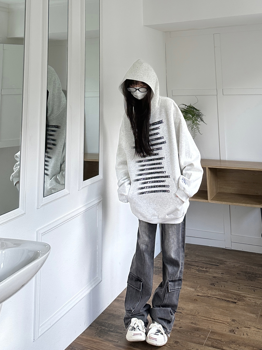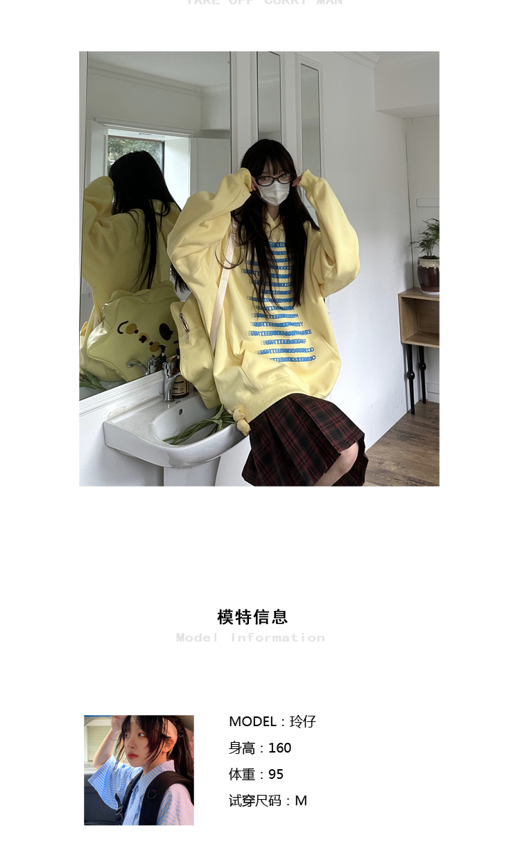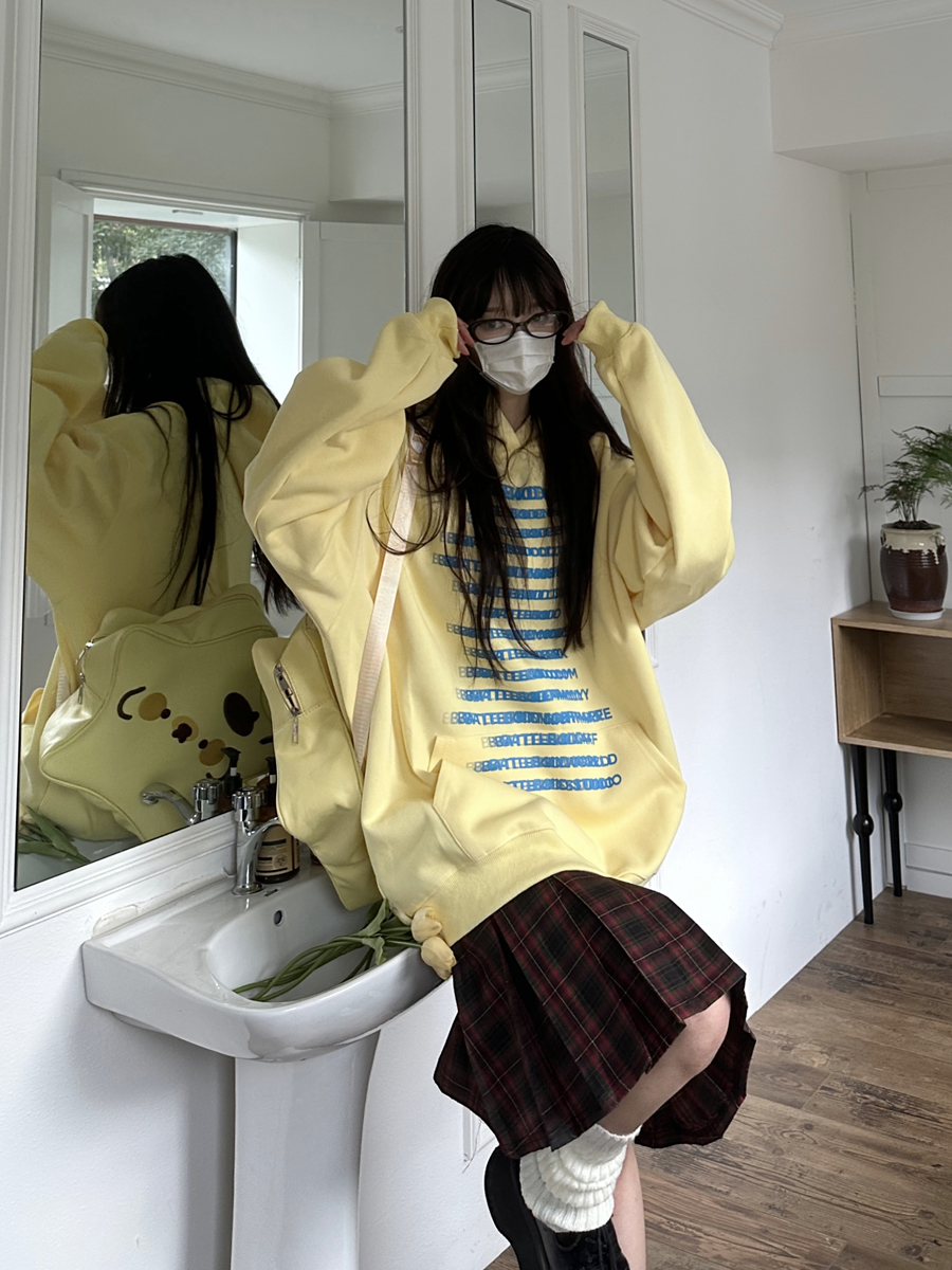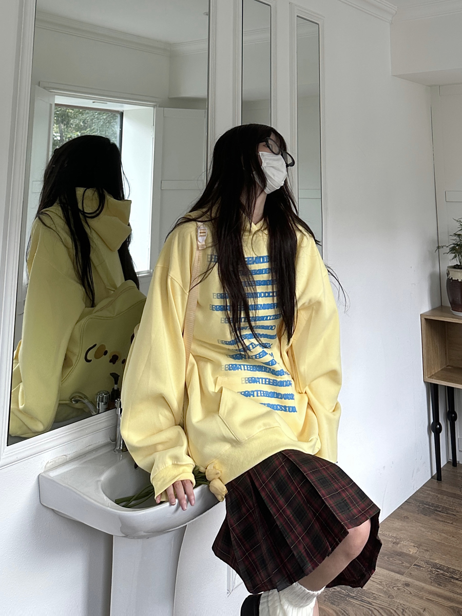 咖哩人原創自制字母印花多色連帽運動衫寬鬆休閒男女情侶慵懶上衣bf