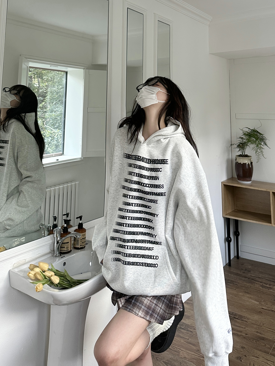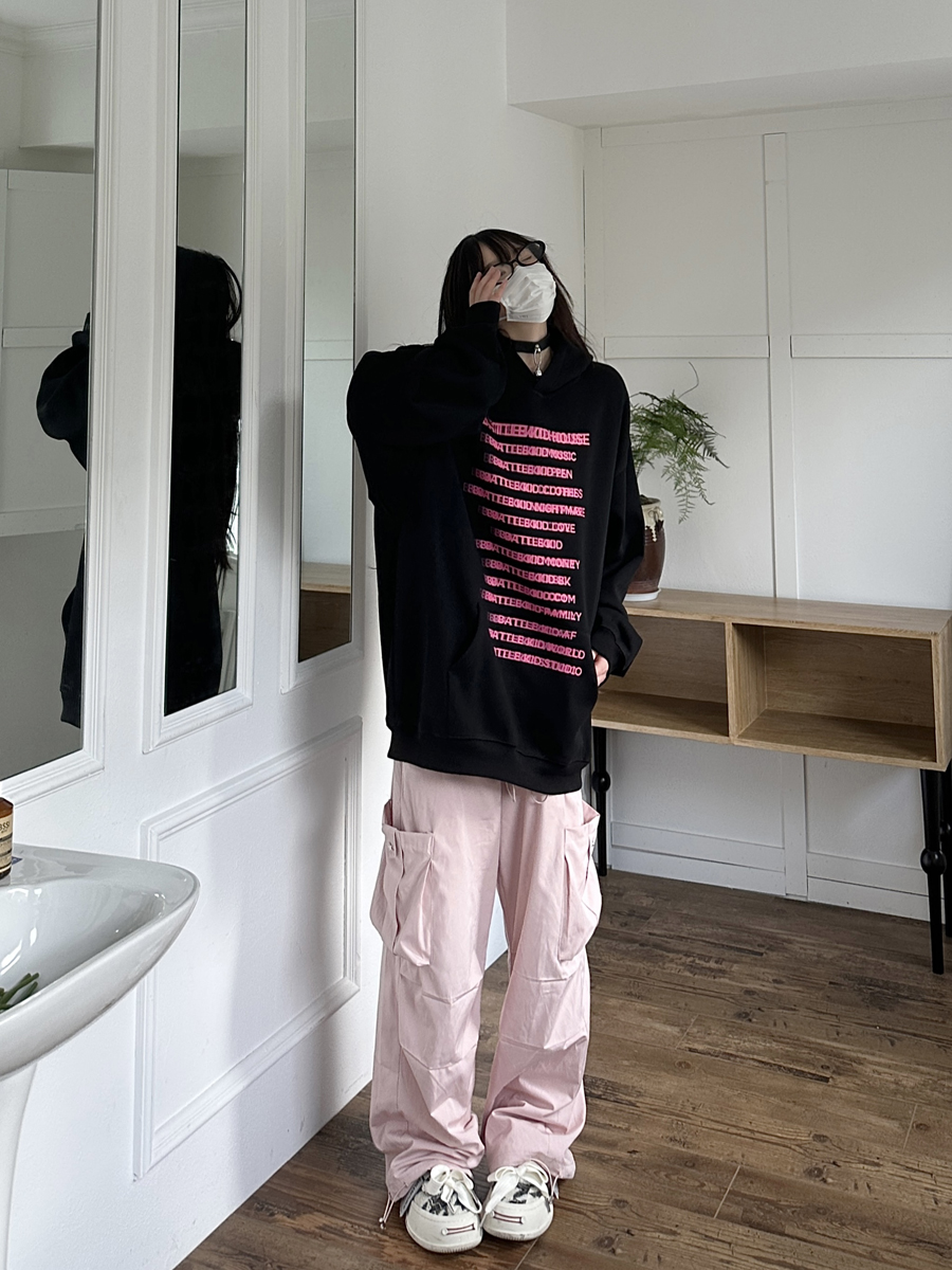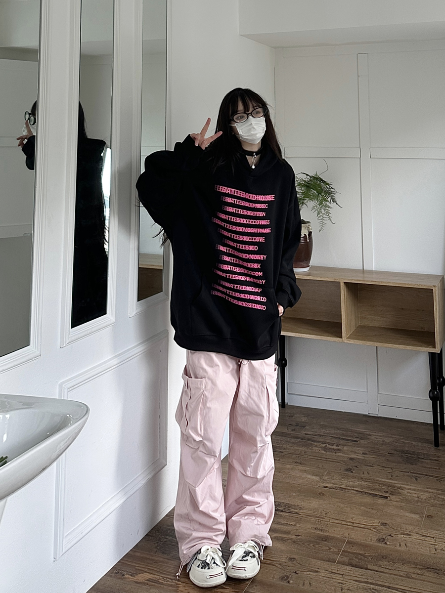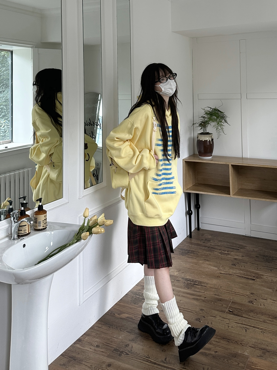 咖哩人原創自制字母印花多色連帽運動衫寬鬆休閒男女情侶慵懶上衣bf
