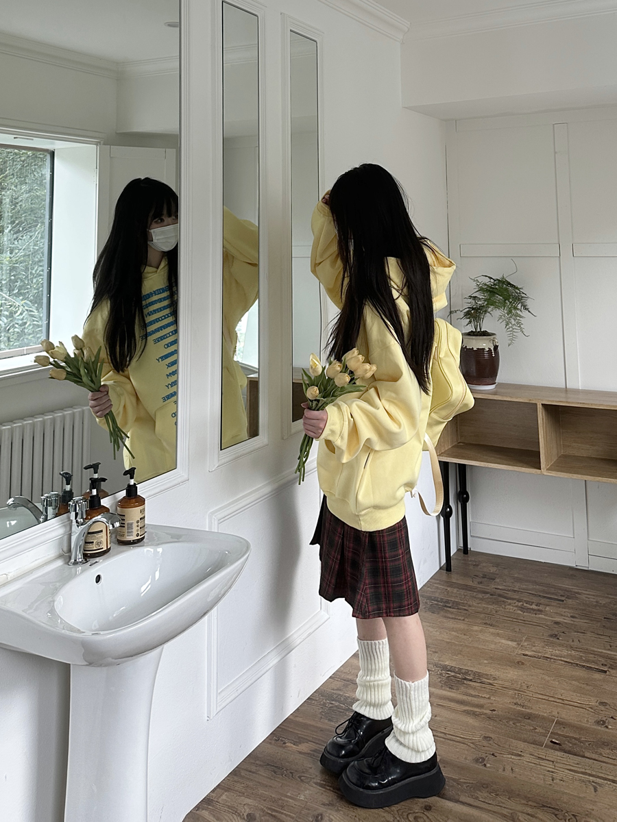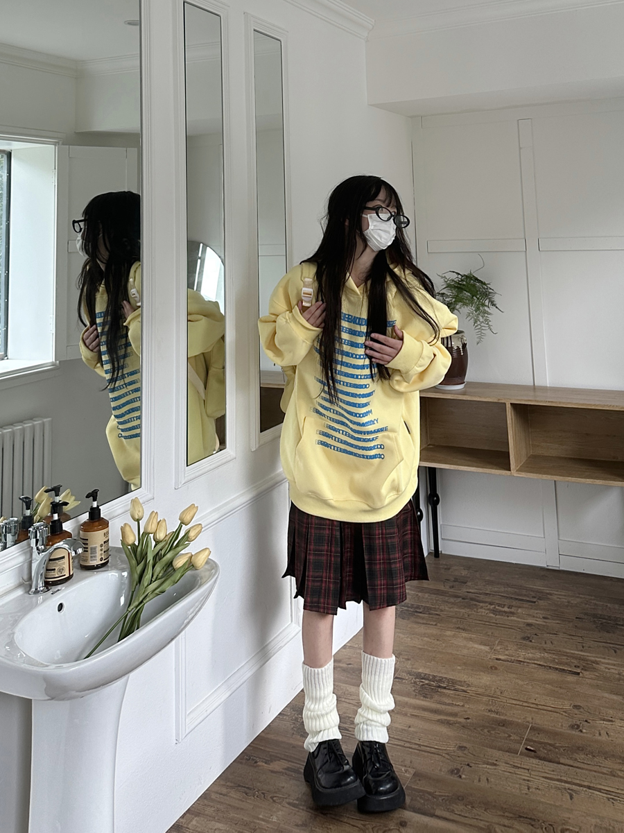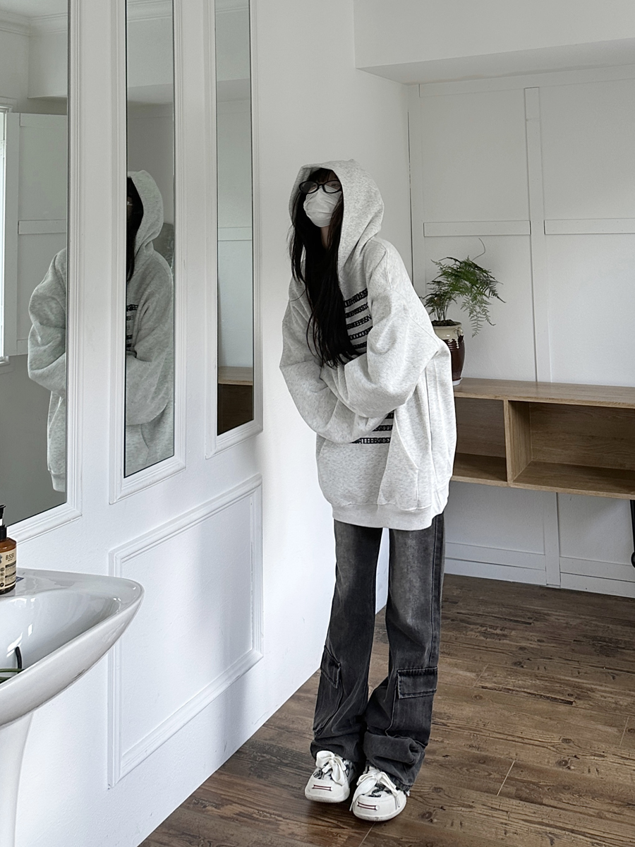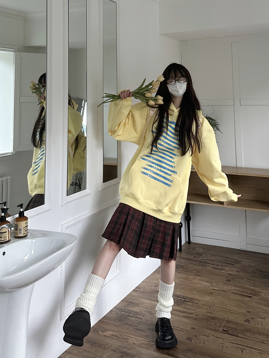 咖哩人原創自制字母印花多色連帽運動衫寬鬆休閒男女情侶慵懶上衣bf