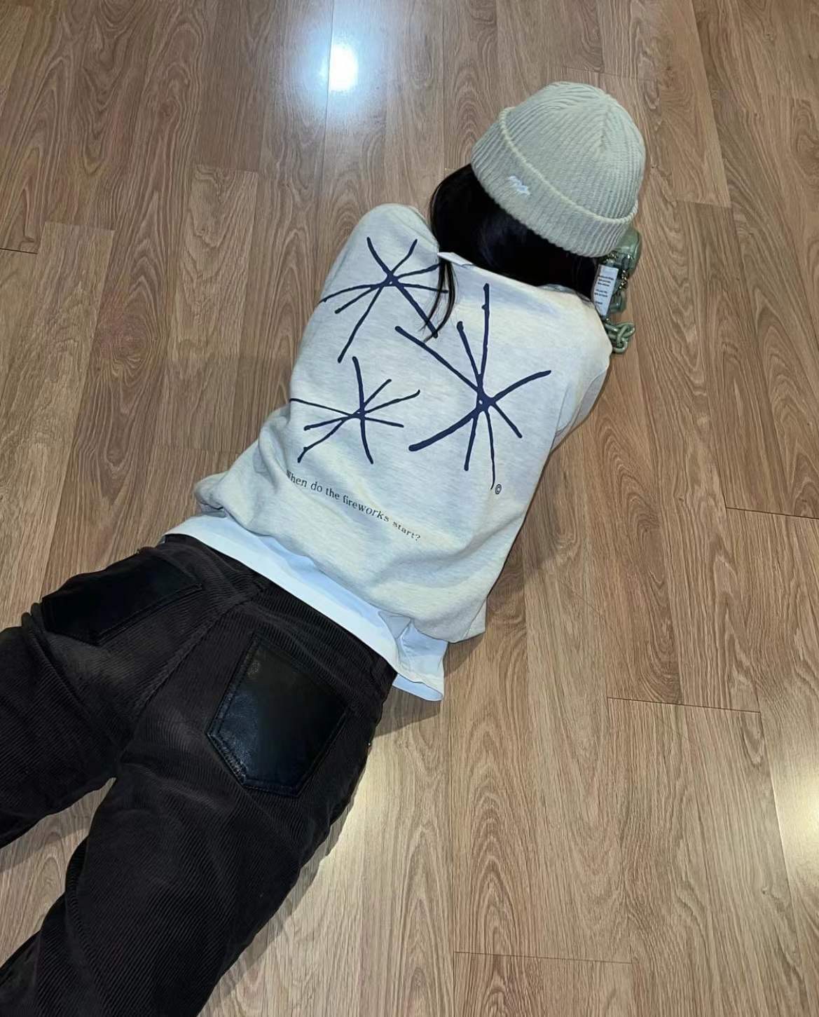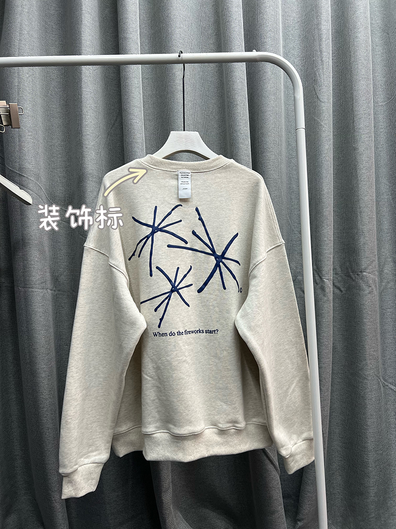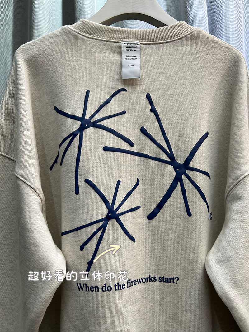 高版本NAMI韓國Jennie同款韓版淺灰色燕麥色抽象印花加絨衛衣女22