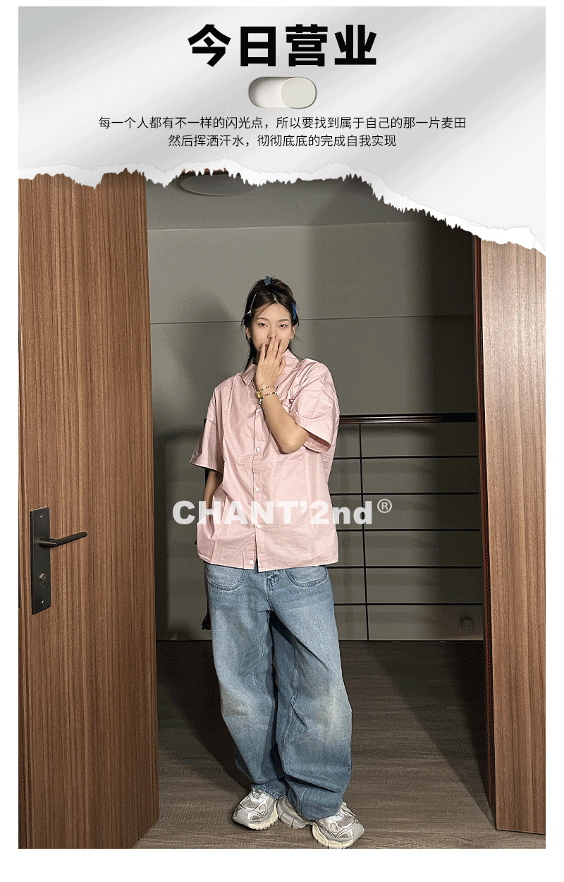 AzLan甜美粉色襯衫女設計感小眾短袖襯衫外套夏季寬鬆休閒上衣ins