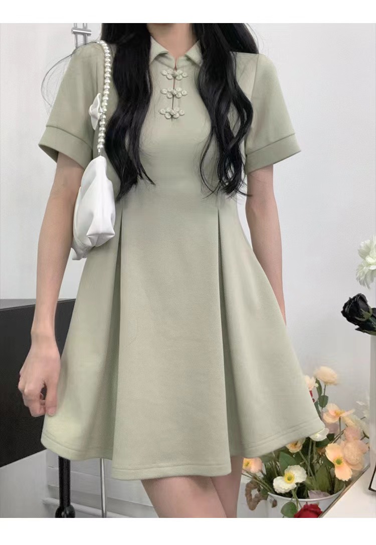 一件7折兩件6折三件5折@中式旗袍豆綠洋裝