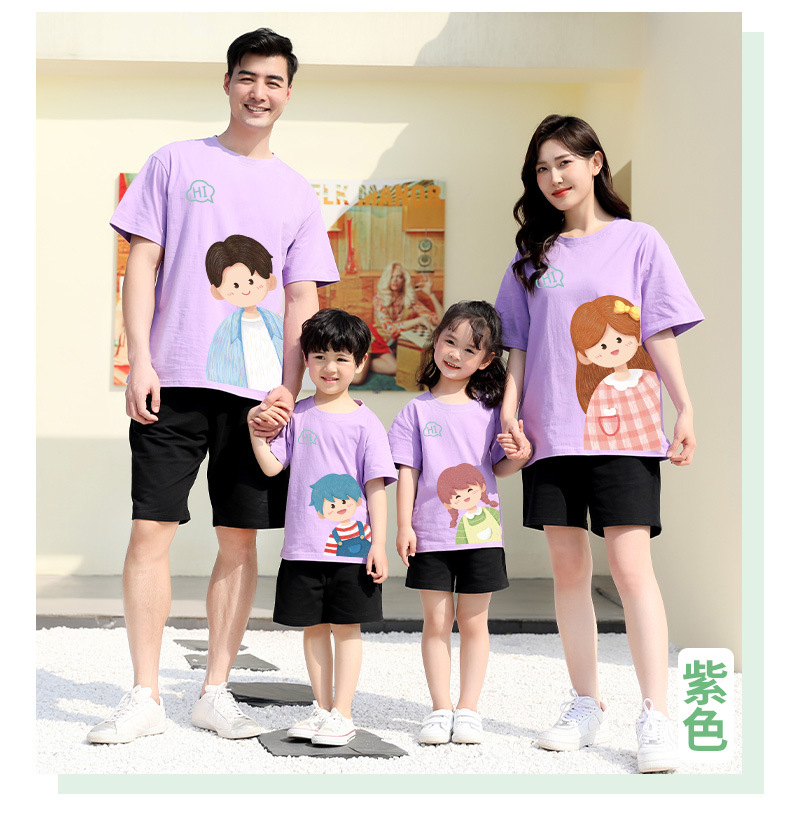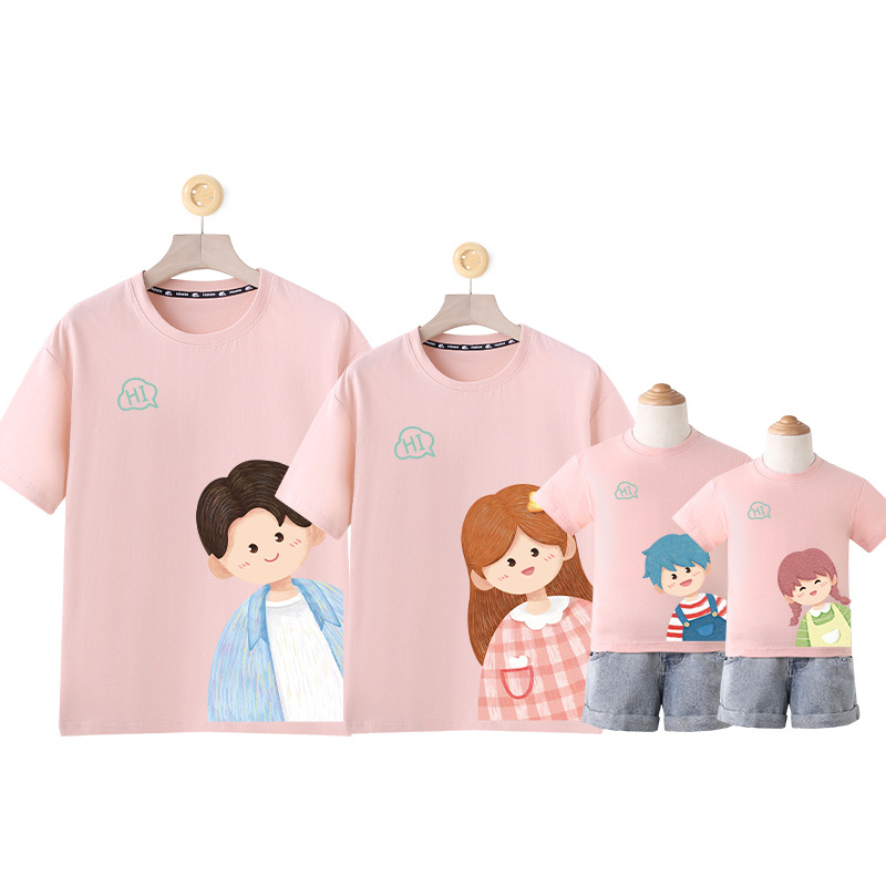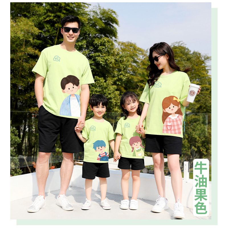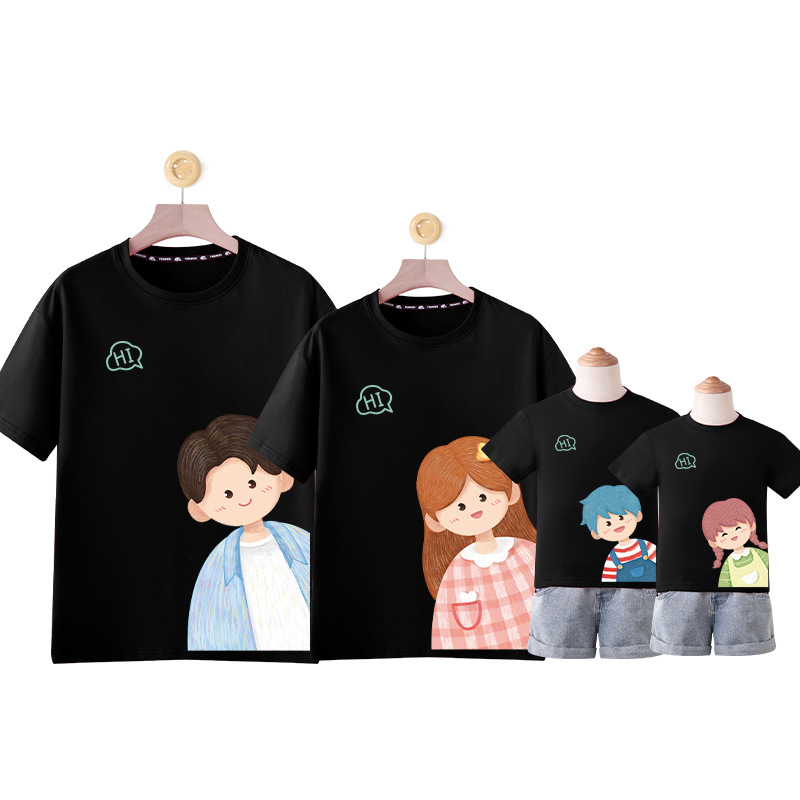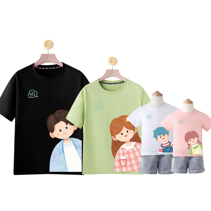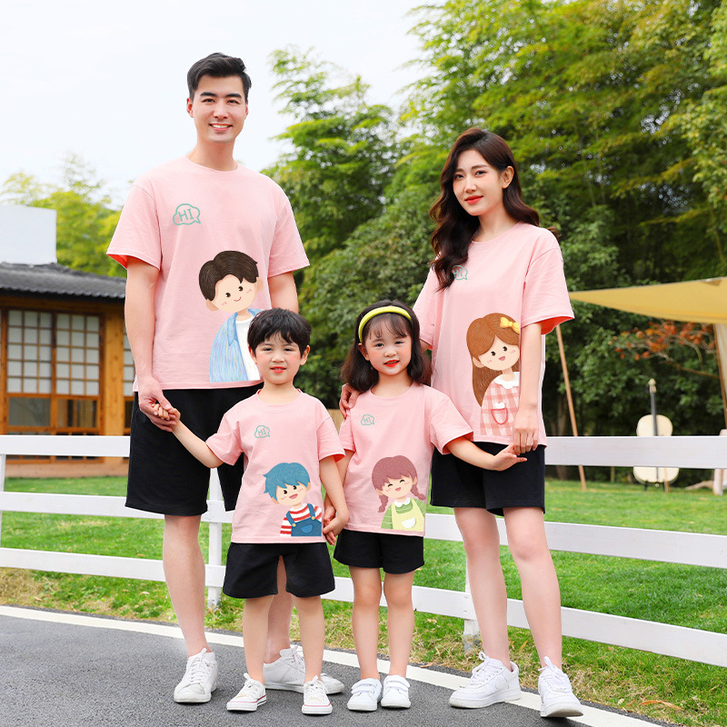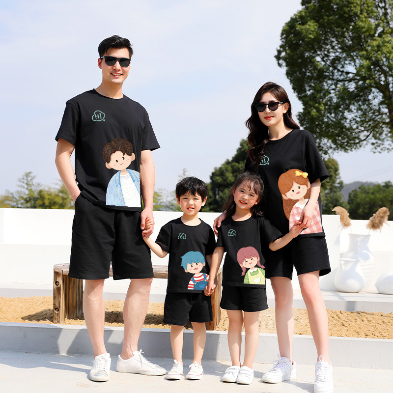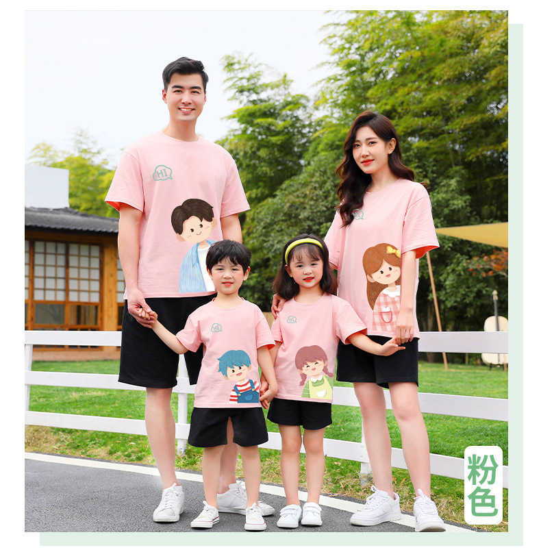 莱梦德2023夏季新款亲子装纯棉短袖一家四口全家装卡通漫画t恤