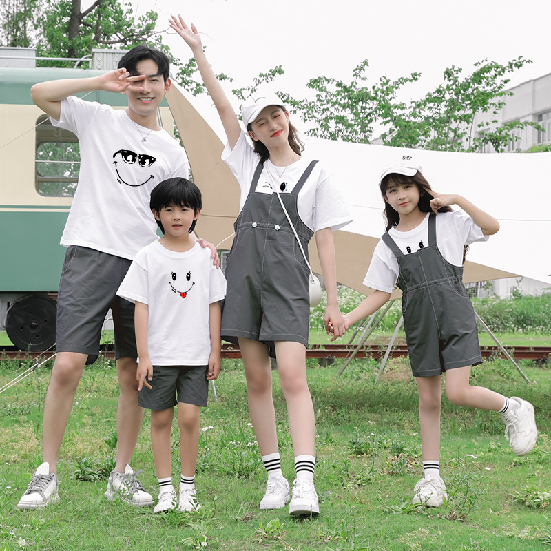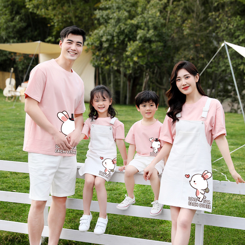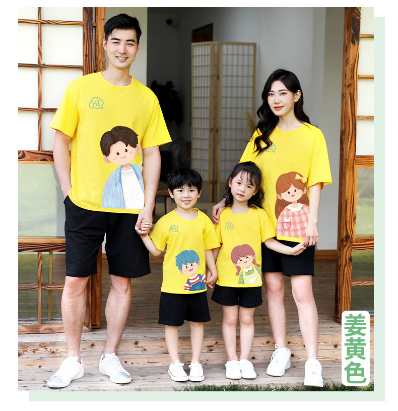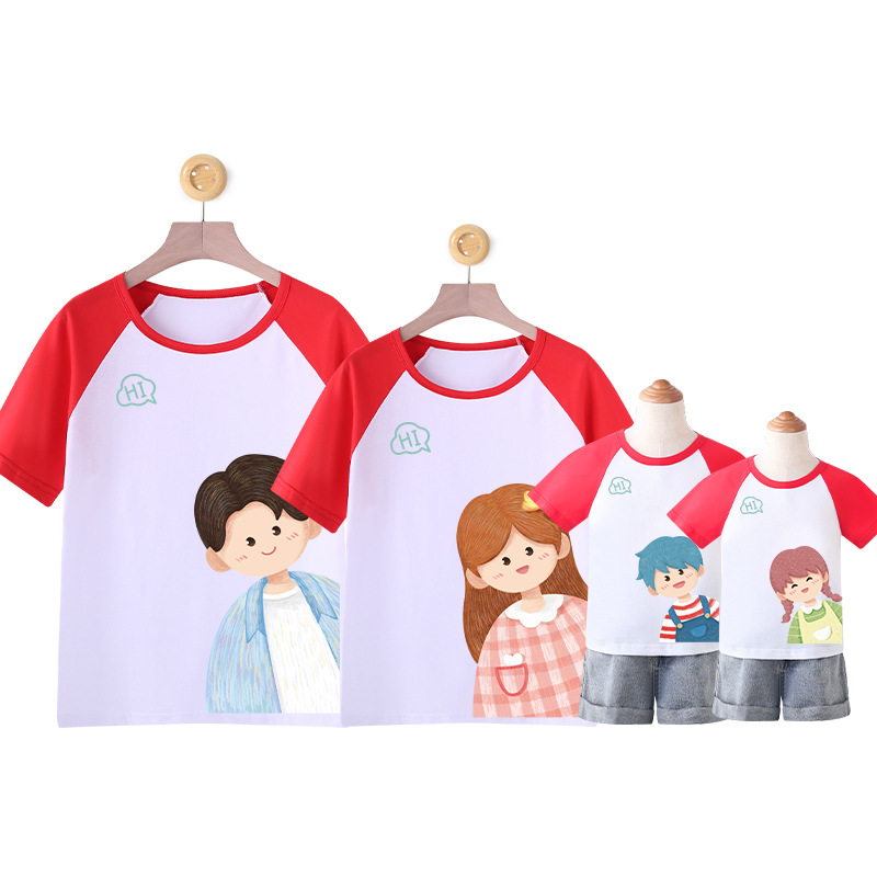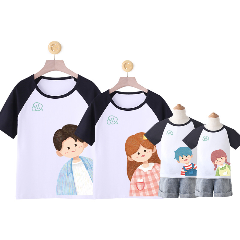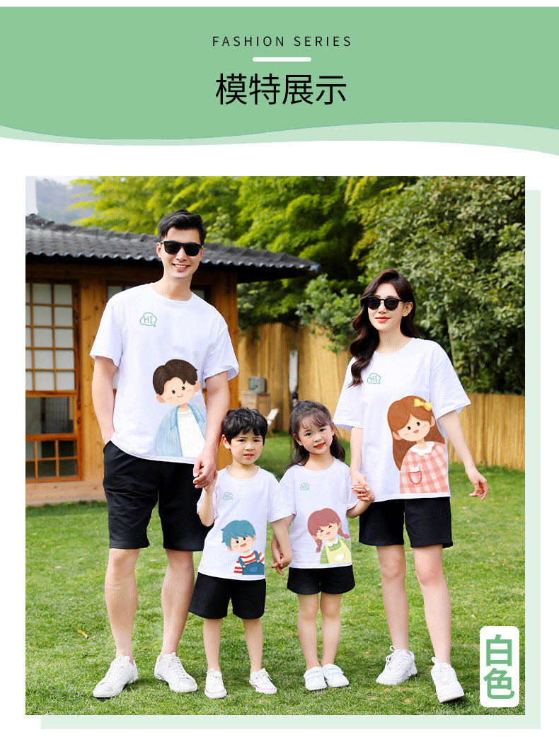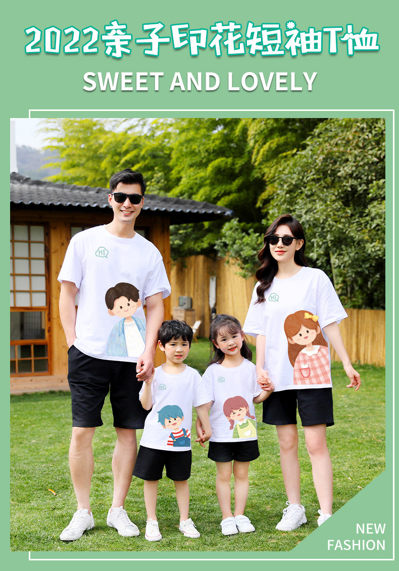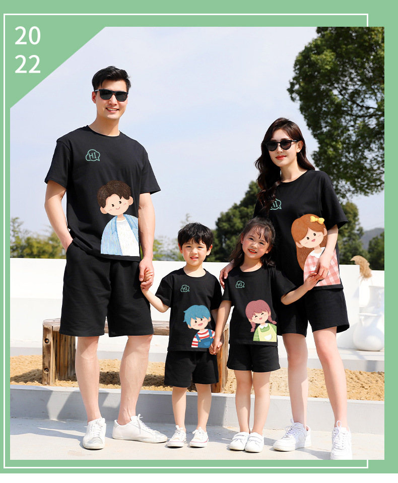 莱梦德2023夏季新款亲子装纯棉短袖一家四口全家装卡通漫画t恤