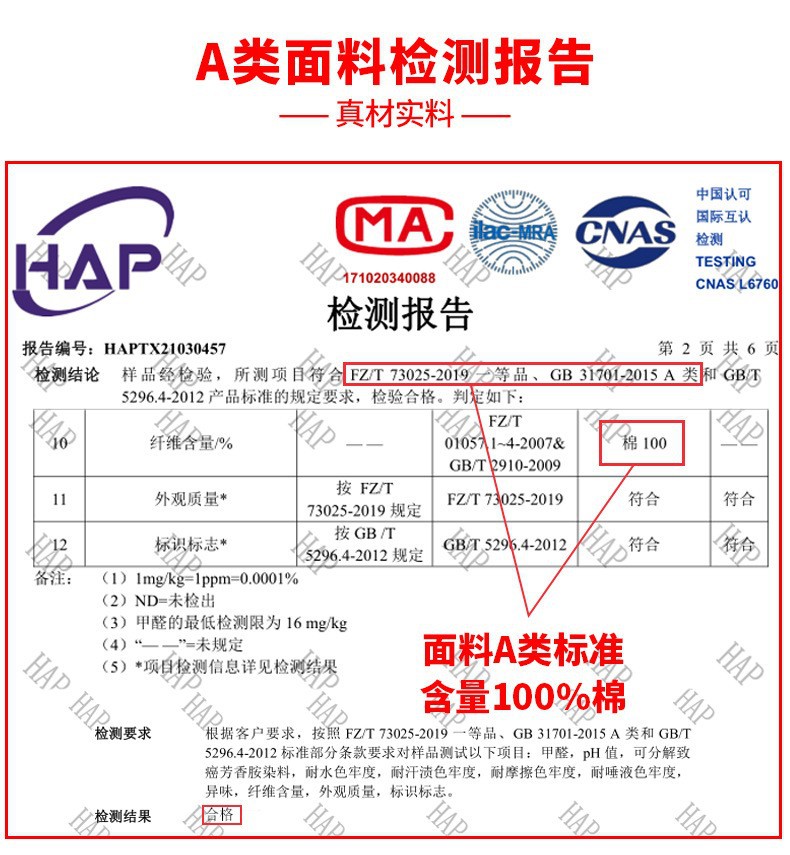 主面料成分含量 100