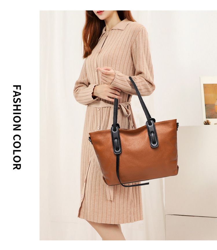 2021新款时尚软皮单肩托特包女 大容量头层牛皮真皮大包斜挎包女