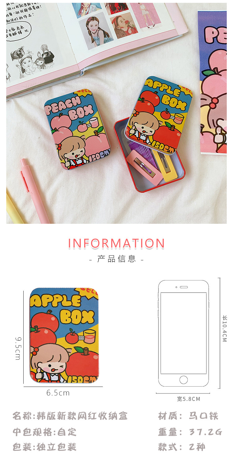 韩国新款网红同款萌女孩收纳盒少女手帐贴纸糖果收纳首饰马口铁盒