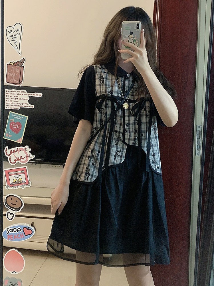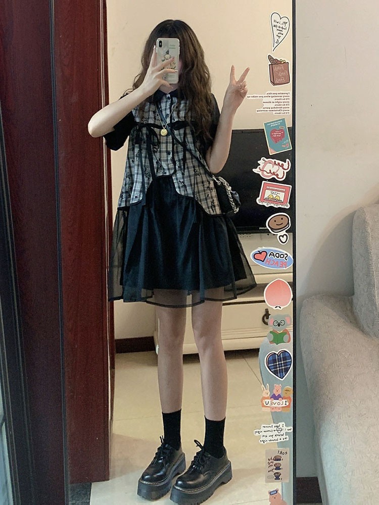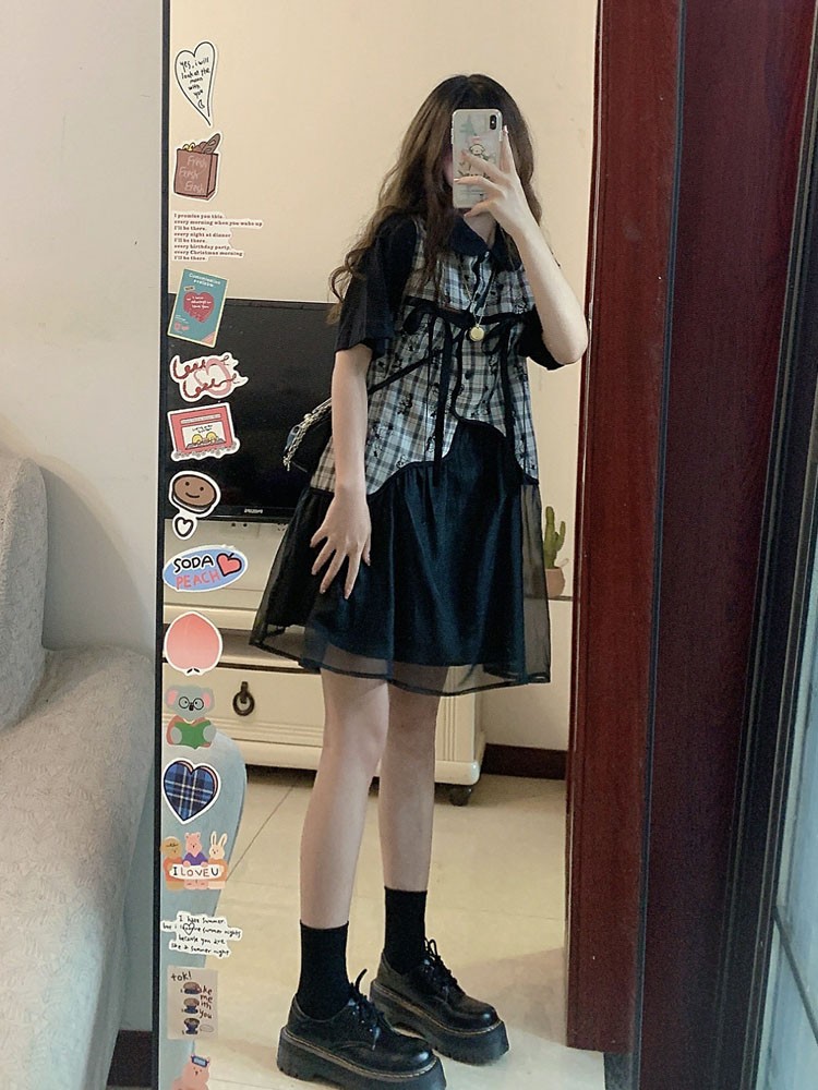 小香風甜酷polo洋裝女夏天設計感小個子韓版寬鬆網紗拼接襯衫裙