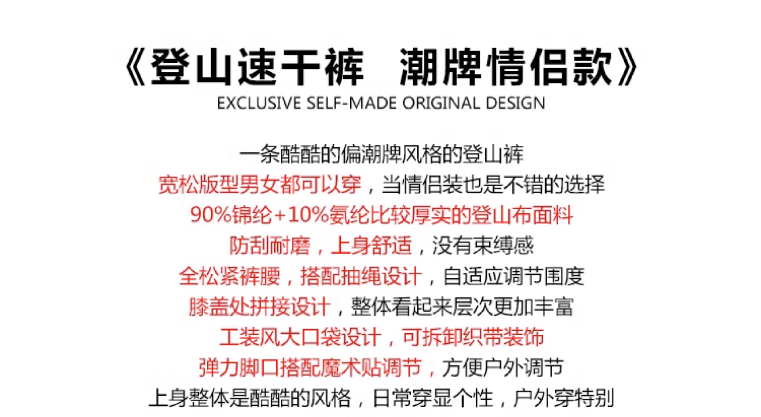 北京森林戶外2023新品旅行潮牌機車工裝風顯瘦透氣登山速乾褲男女