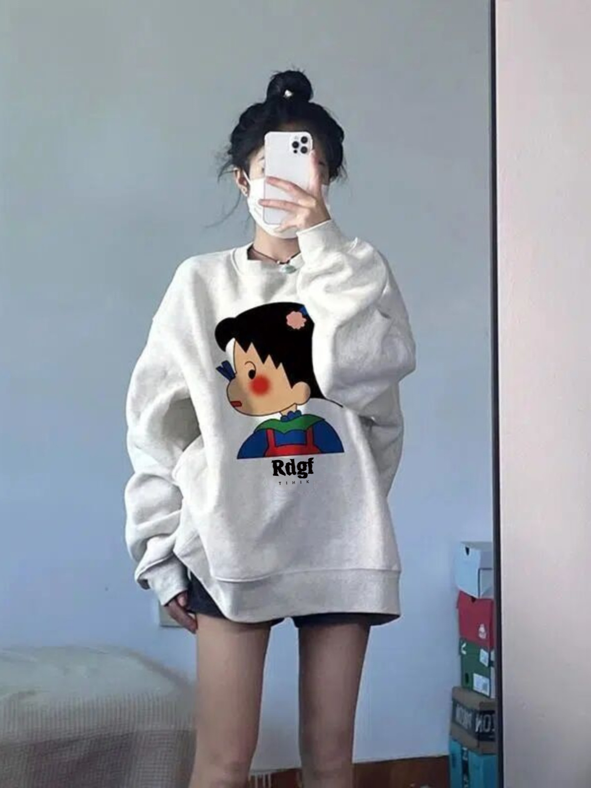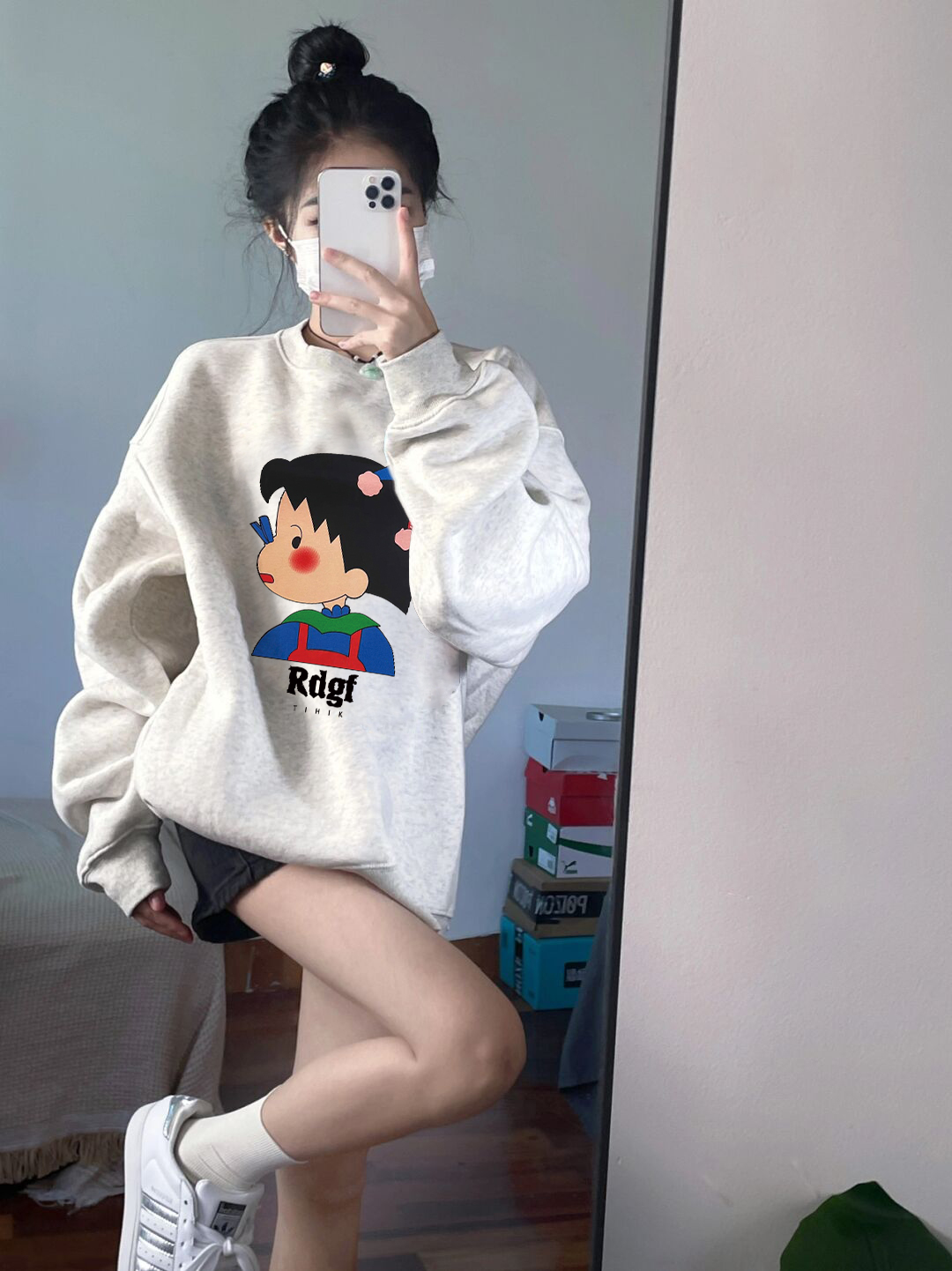 花灰色厚棉T女春秋薄款oversize韓版寬鬆慵懶風小個子圓領無帽上衣