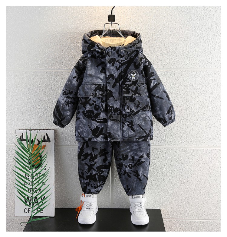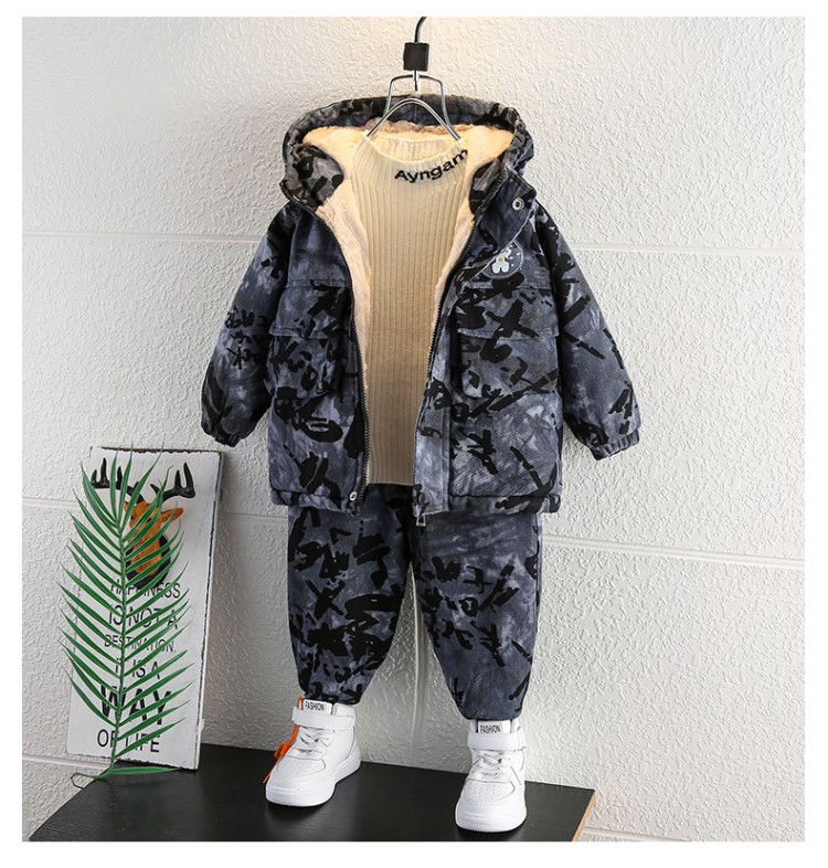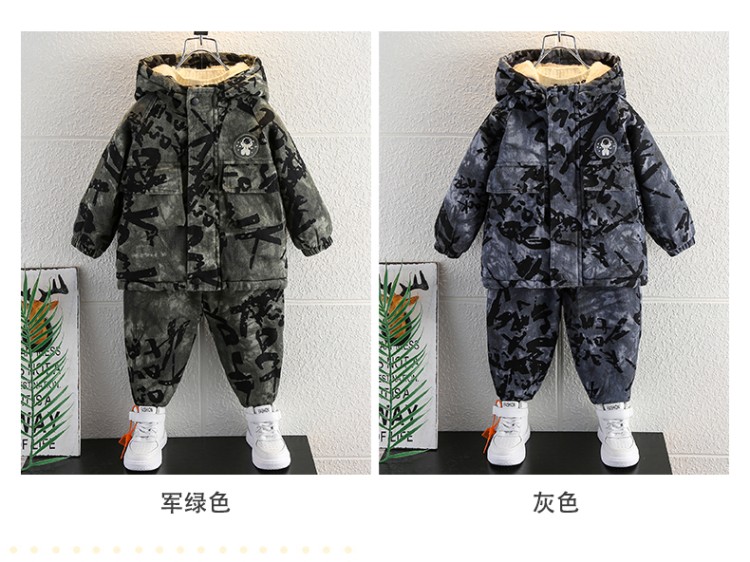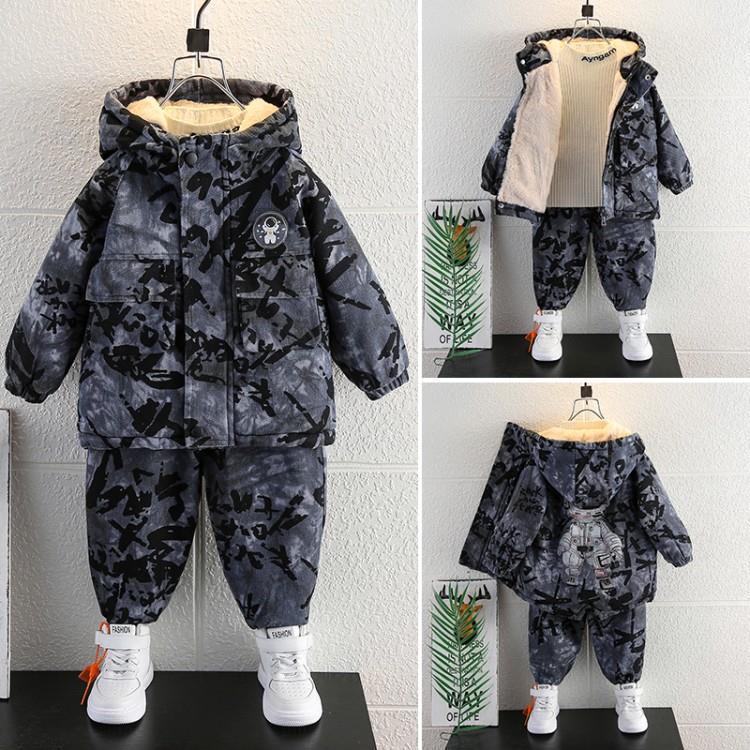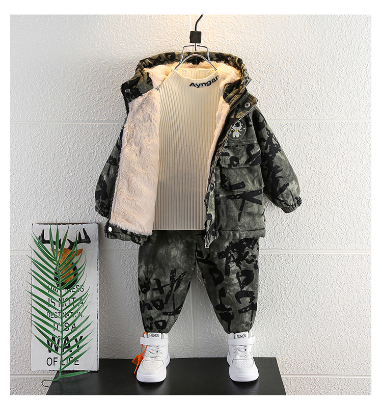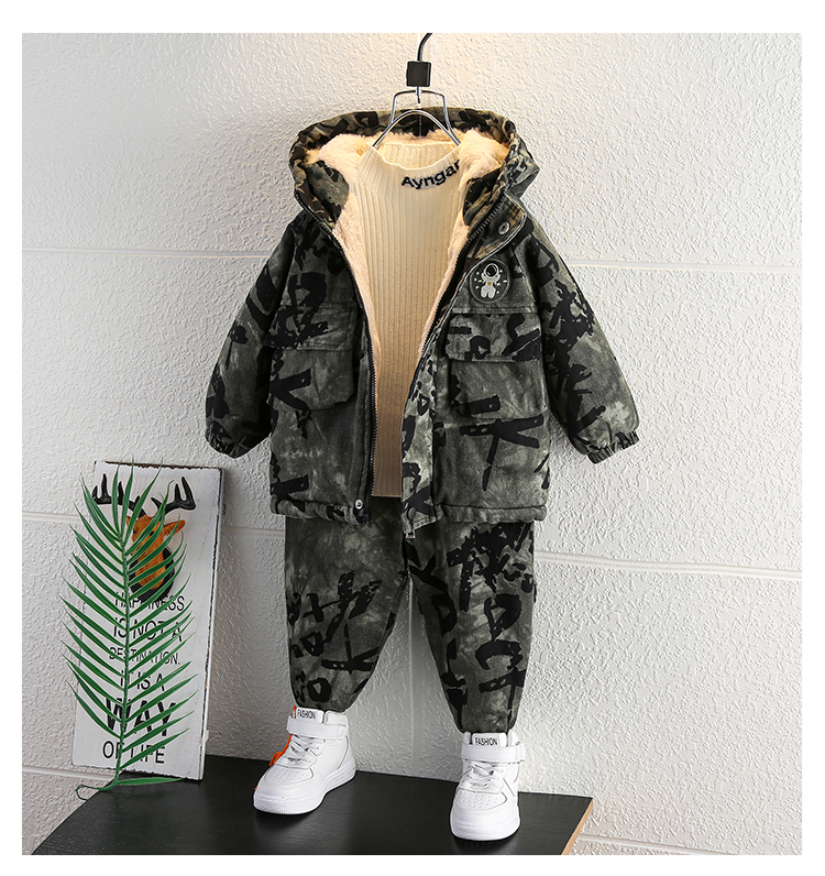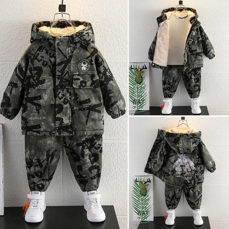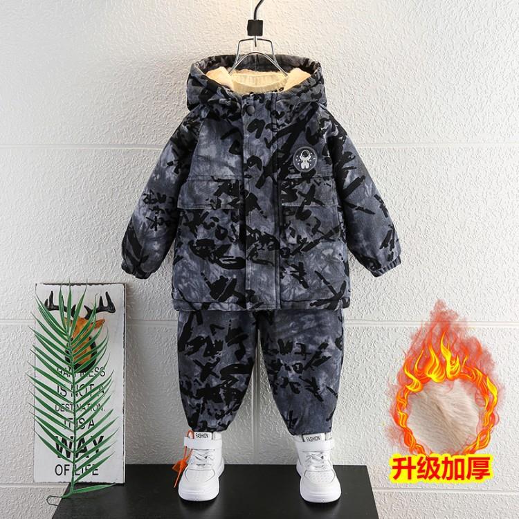 新款冬装儿童迷彩服套装加绒厚棉服小孩休闲军装男童特种兵运动装