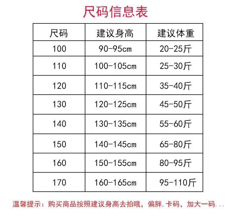 适合身高 90cm,100cm,110cm,120cm,130cm,140cm,150cm