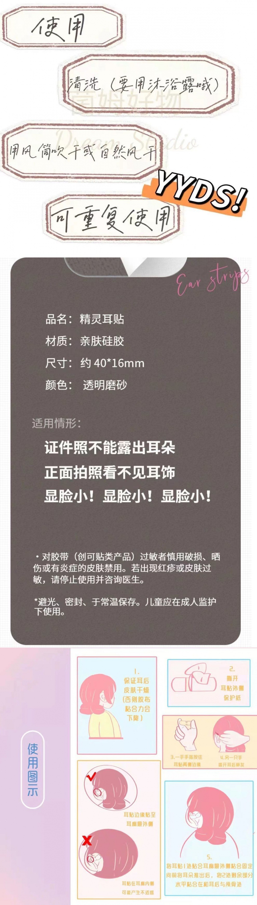 货号 QuRKn4LzpE8jTTT8ShlCwAsqg7M=耳朵神器拍照支撑硅胶贴贴小耳朵红网固定贴面速
