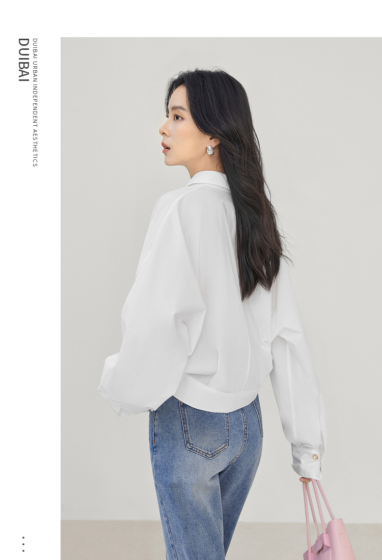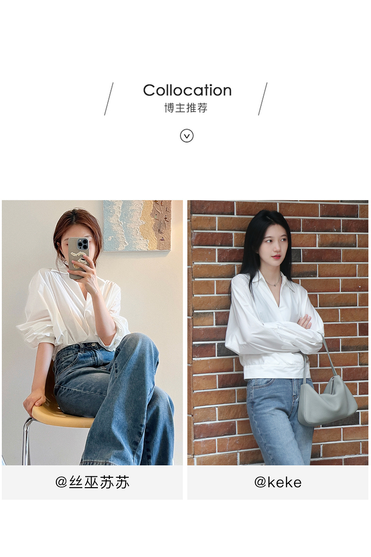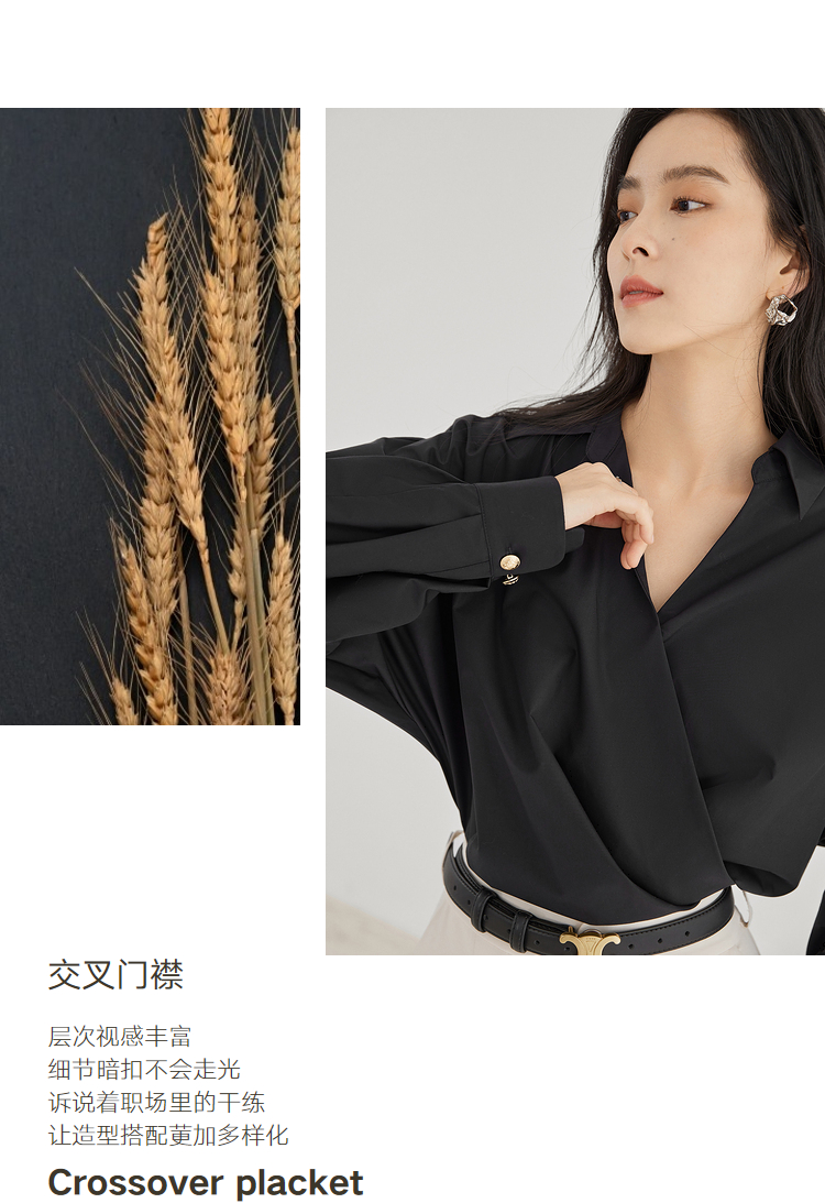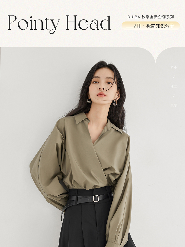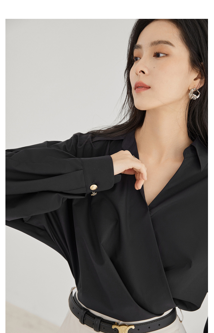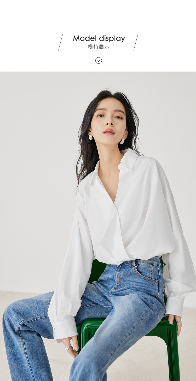 對白法式V領設計感襯衫女2023秋裝新款襯衣氣質簡約別致通勤上衣