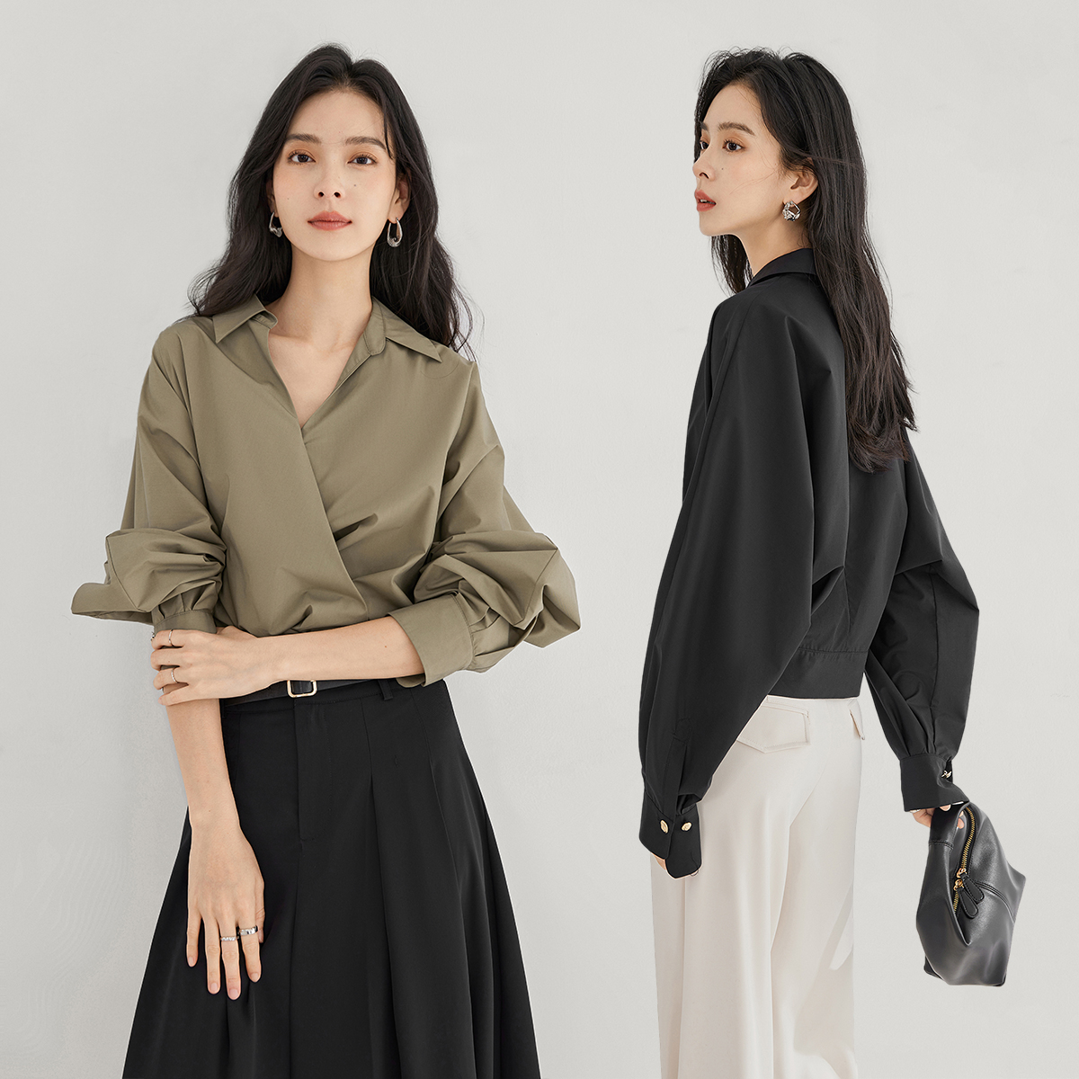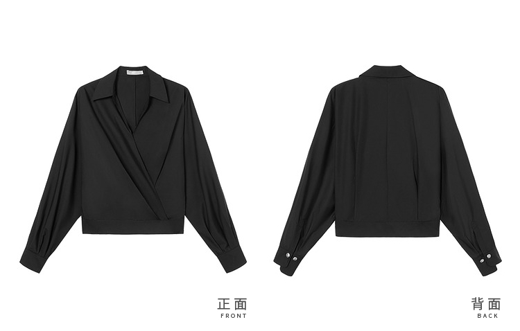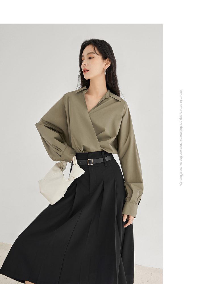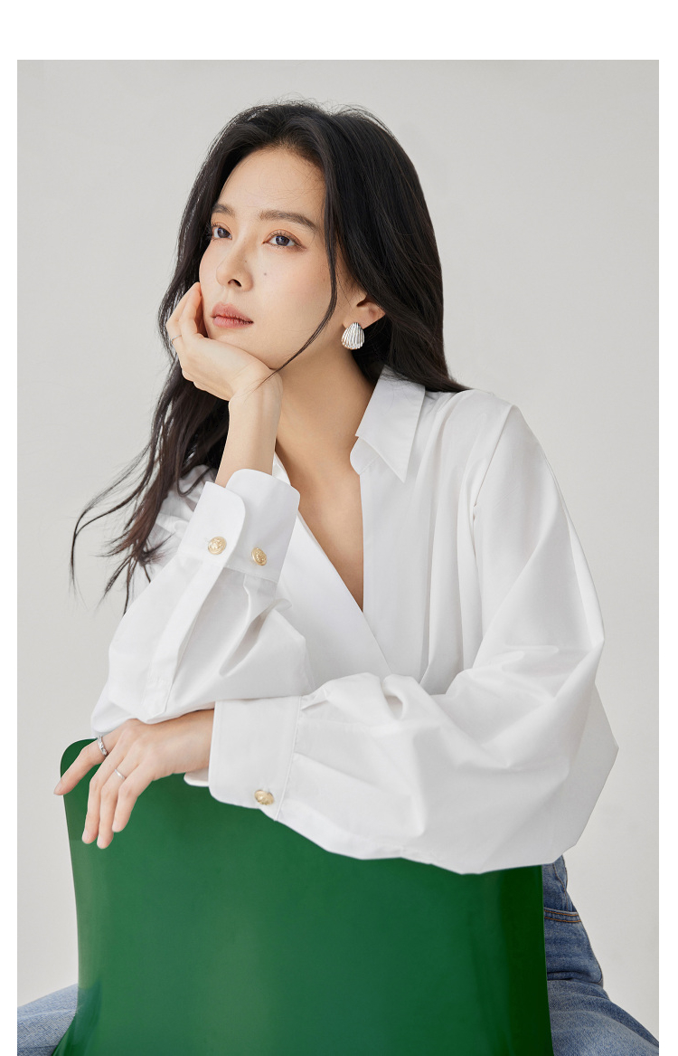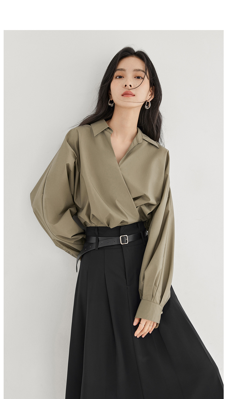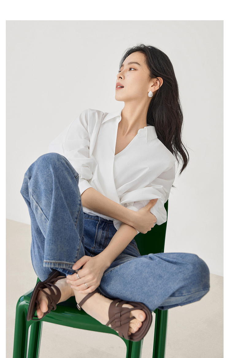 對白法式V領設計感襯衫女2023秋裝新款襯衣氣質簡約別致通勤上衣