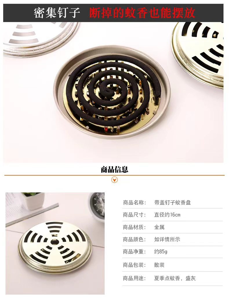 防火蚊香架带盖蚊香盘 便携式钉齿带盖蚊香托盘蚊香盒接灰盘2元店
