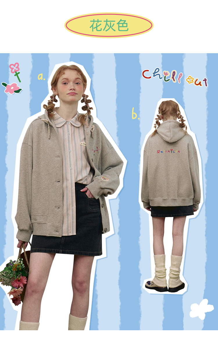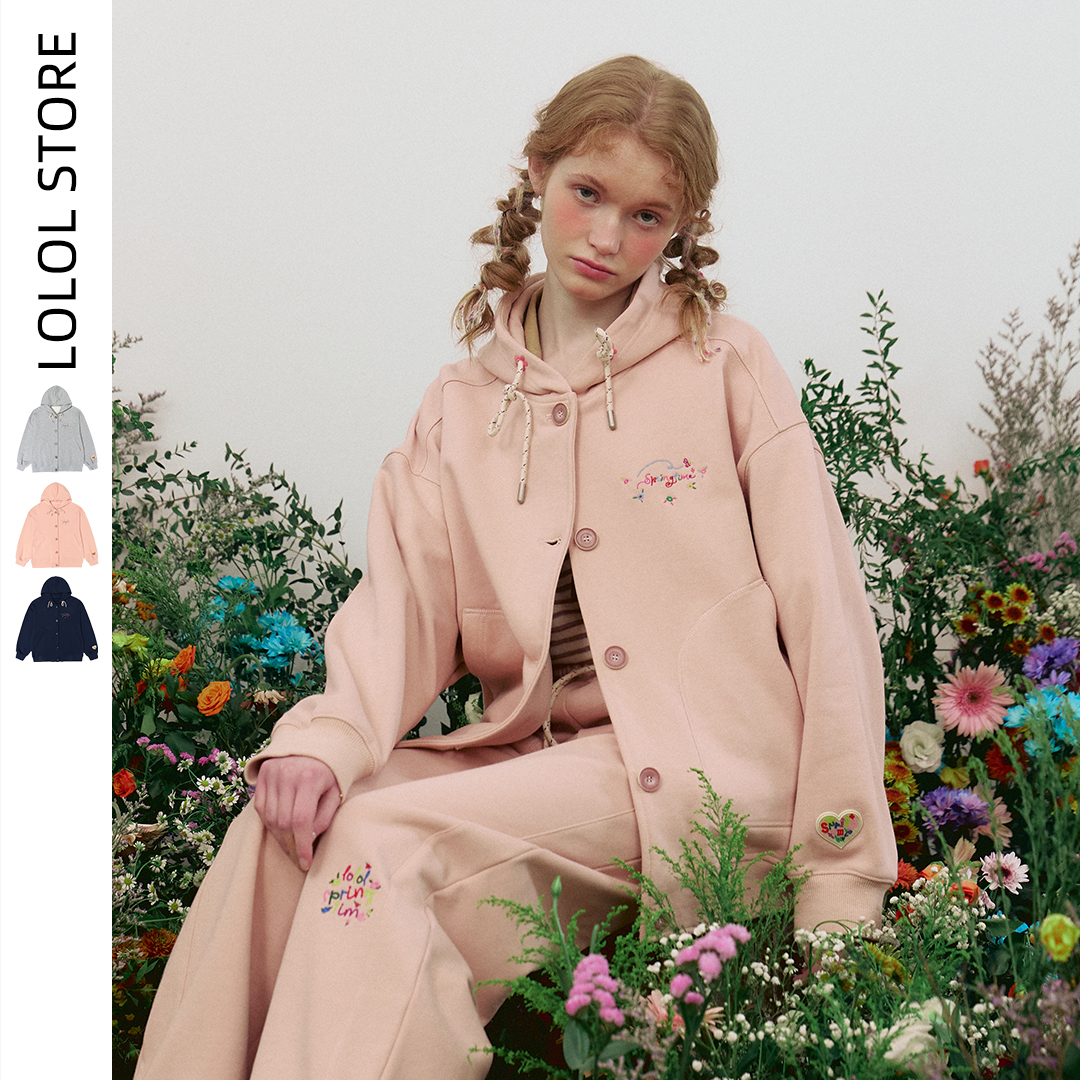 LOLOL 連帽開衫衛衣女寬鬆字母洋派純棉小個子美式復古學院風外套