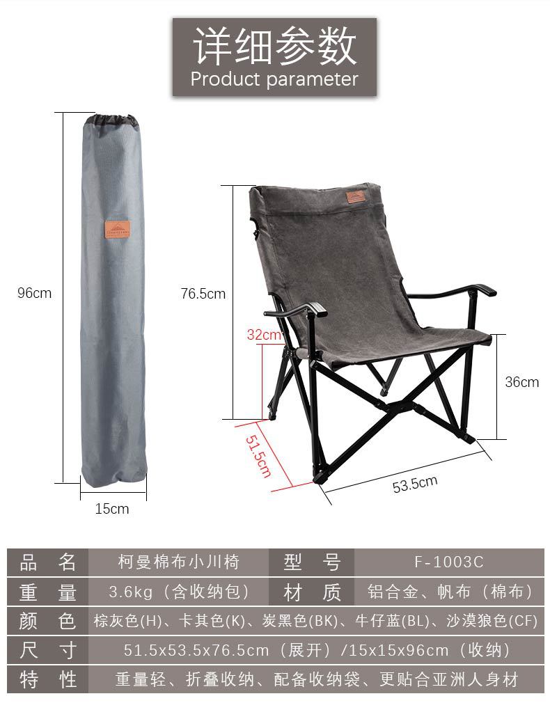 柯曼戶外露營棉布摺疊小川椅野外垂釣可攜式可調節帆布靠背扶手椅子