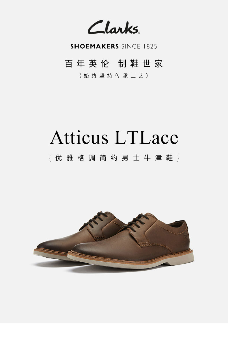 Clarks其樂男鞋繫帶休閒鞋舒服百搭真皮軟底男皮鞋Atticus LTLace