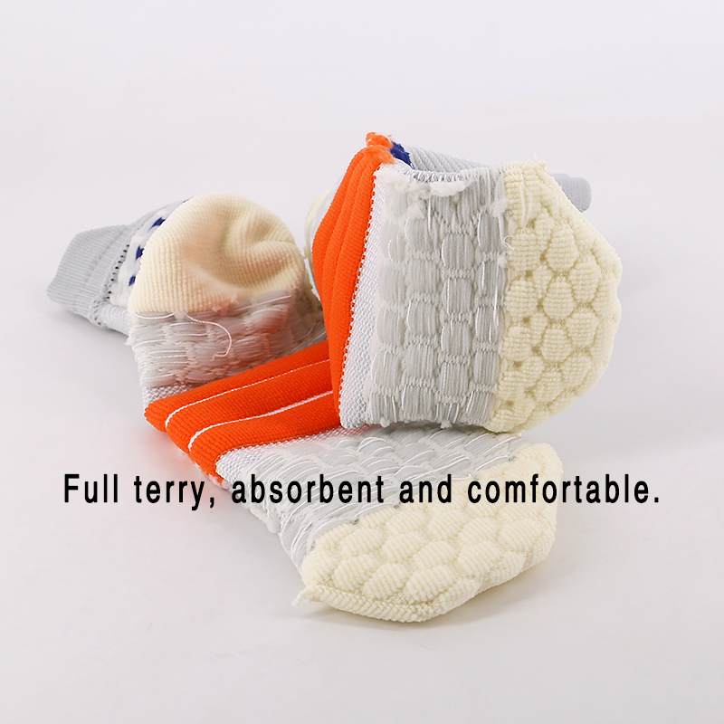 Full terry design on the sole of the socks, which is shock-absorbing and non-slip;