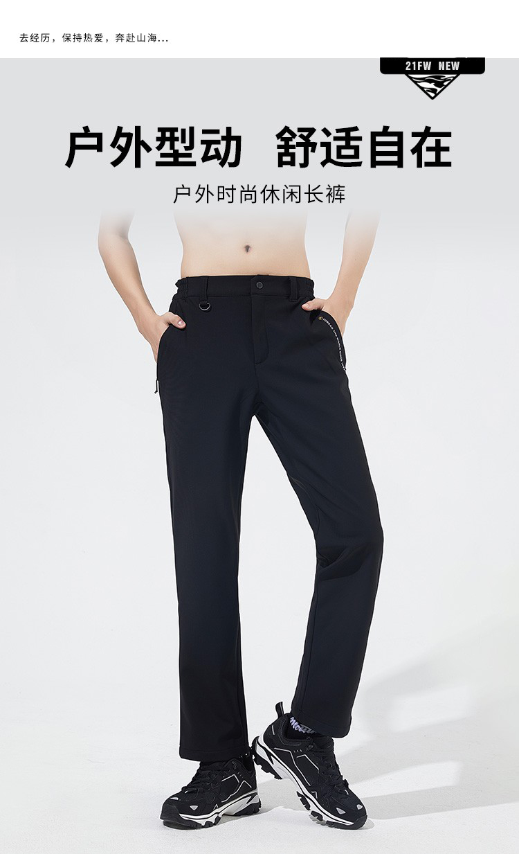 探路者軟殼褲男21秋冬戶外防風透氣加厚加絨彈力衝鋒褲TAMJ91157
