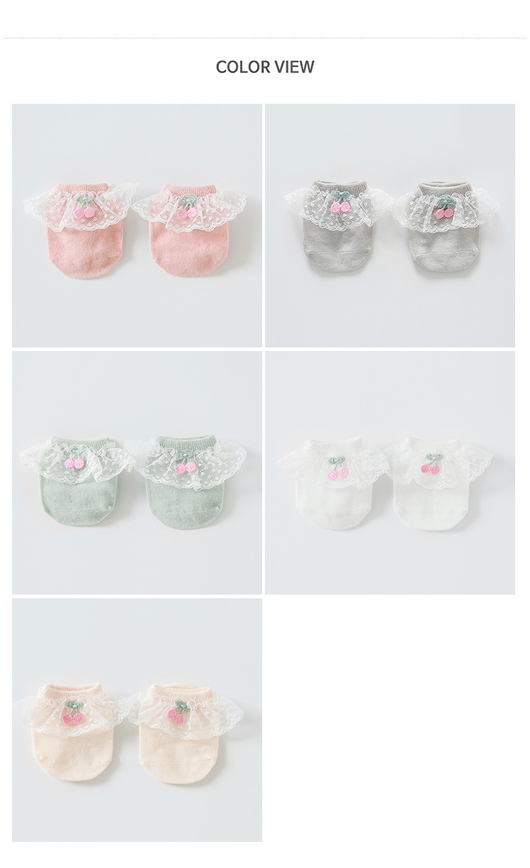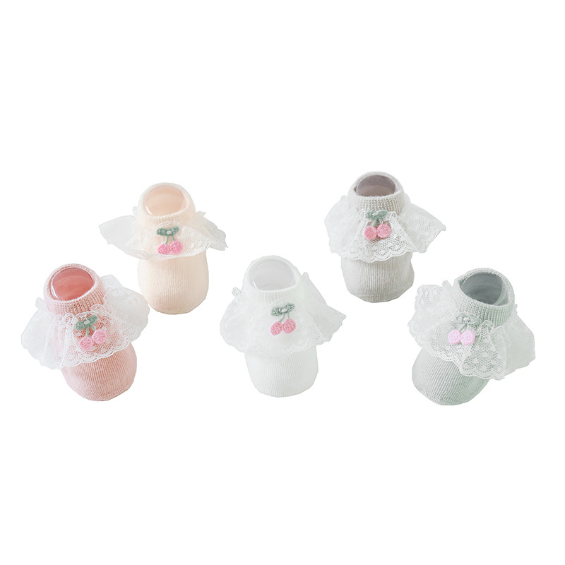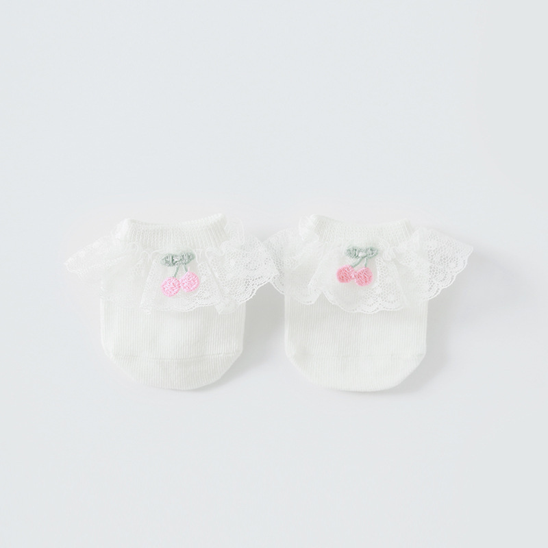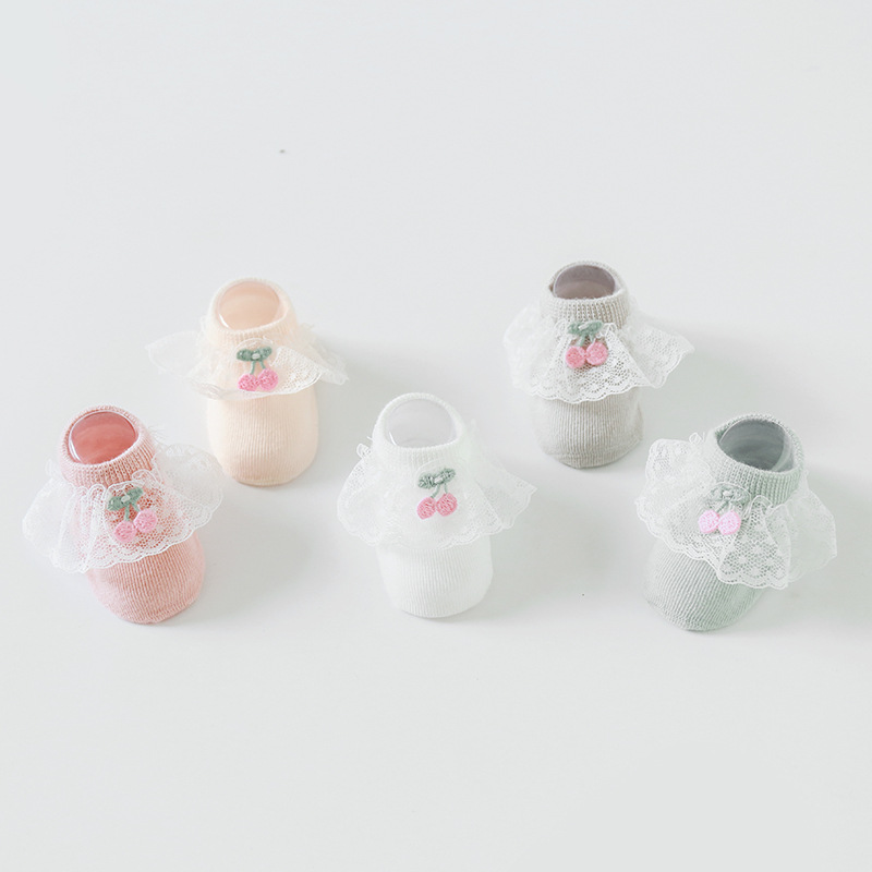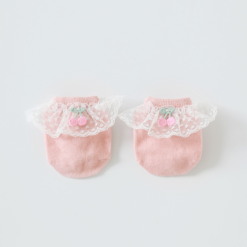 2020年春夏新款樱桃蕾丝花边防滑婴儿地板袜女童宝宝袜子短袜船袜