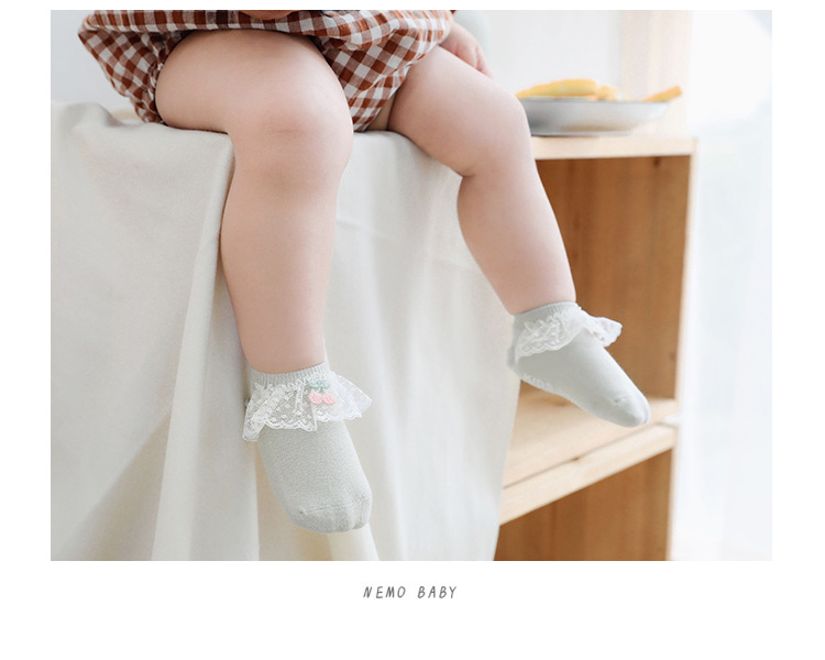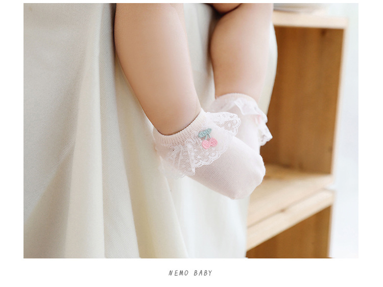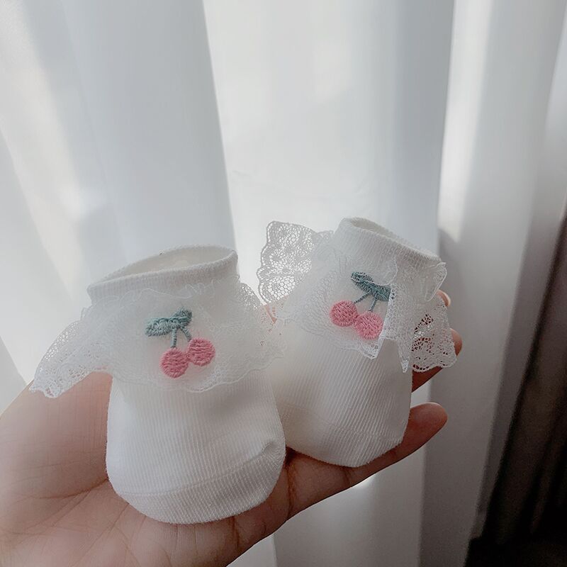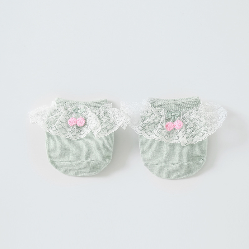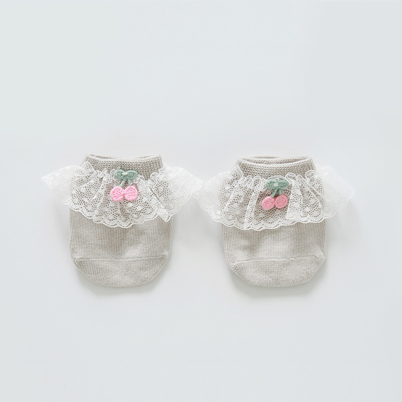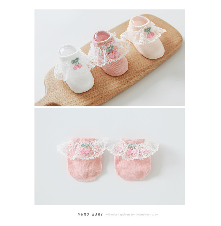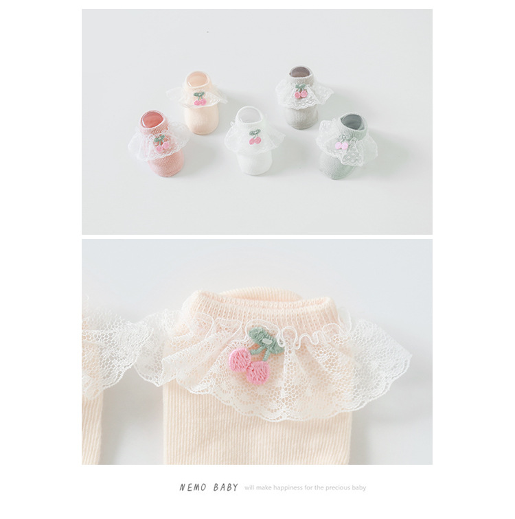 2020年春夏新款樱桃蕾丝花边防滑婴儿地板袜女童宝宝袜子短袜船袜