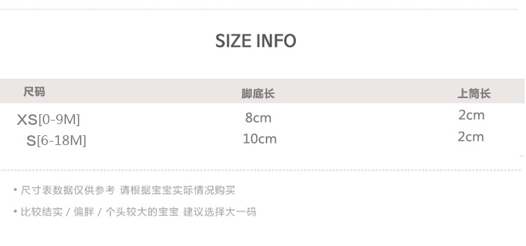 童袜尺码 XS码(0-9个月),S码(9-18个月)