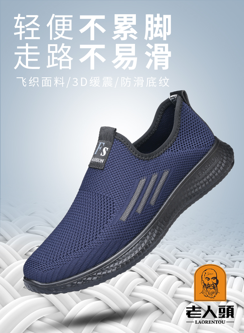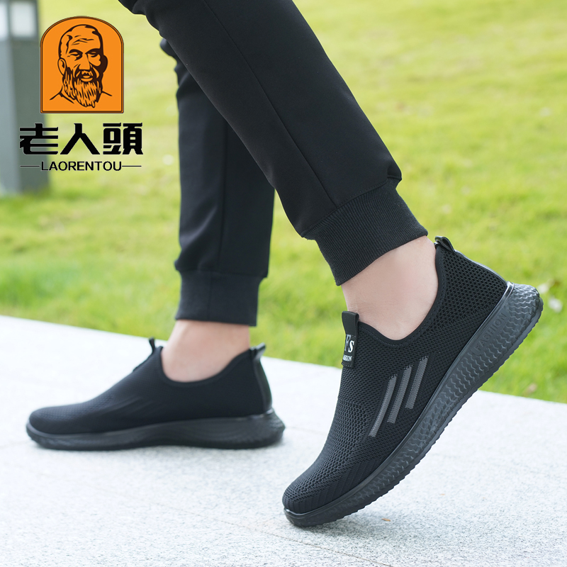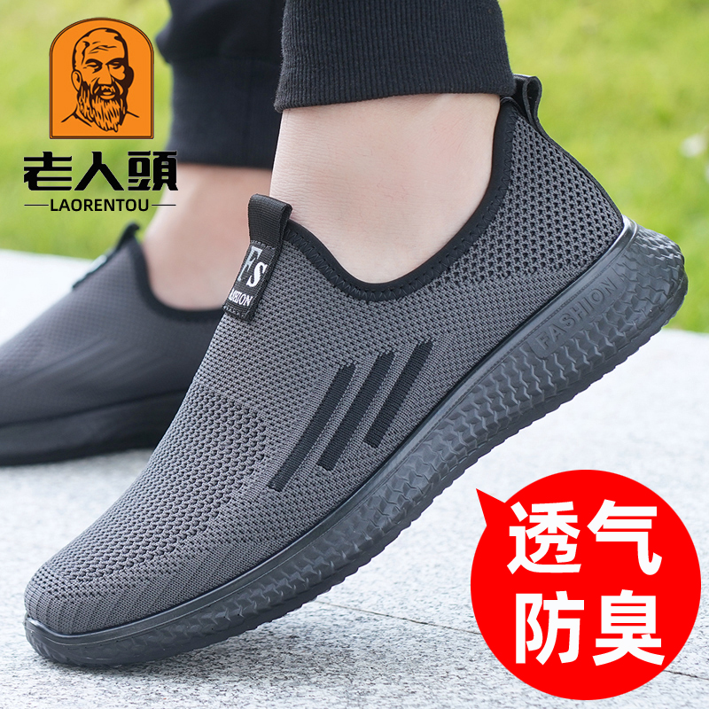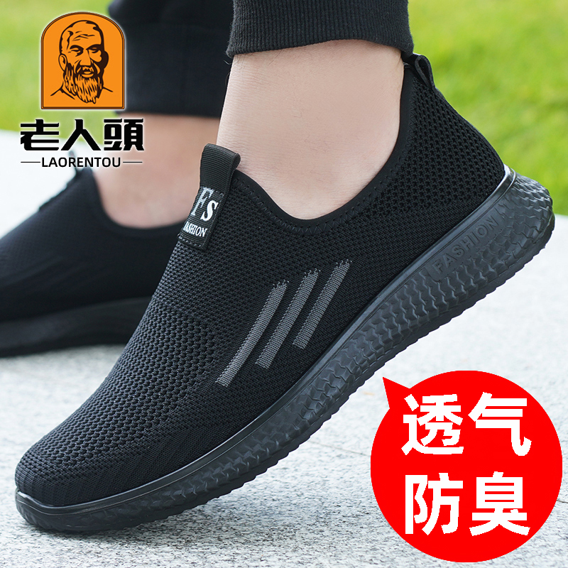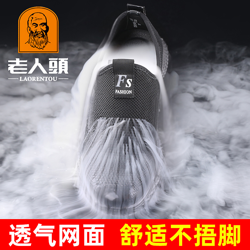 老人頭網面鞋男春夏季透氣厚底中老年運動休閒鞋老北京布鞋爸爸鞋