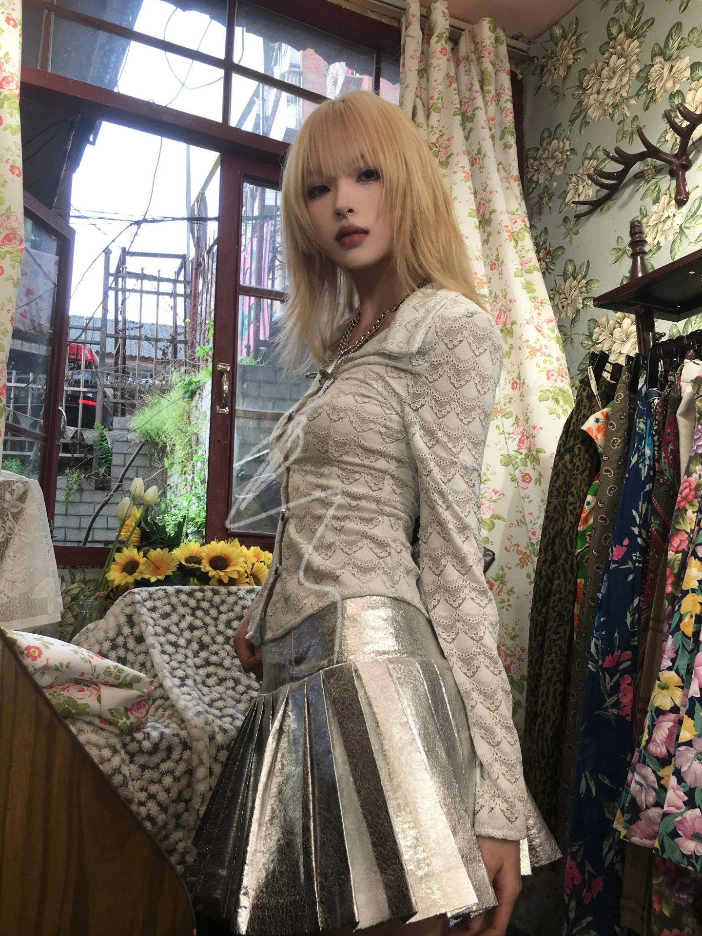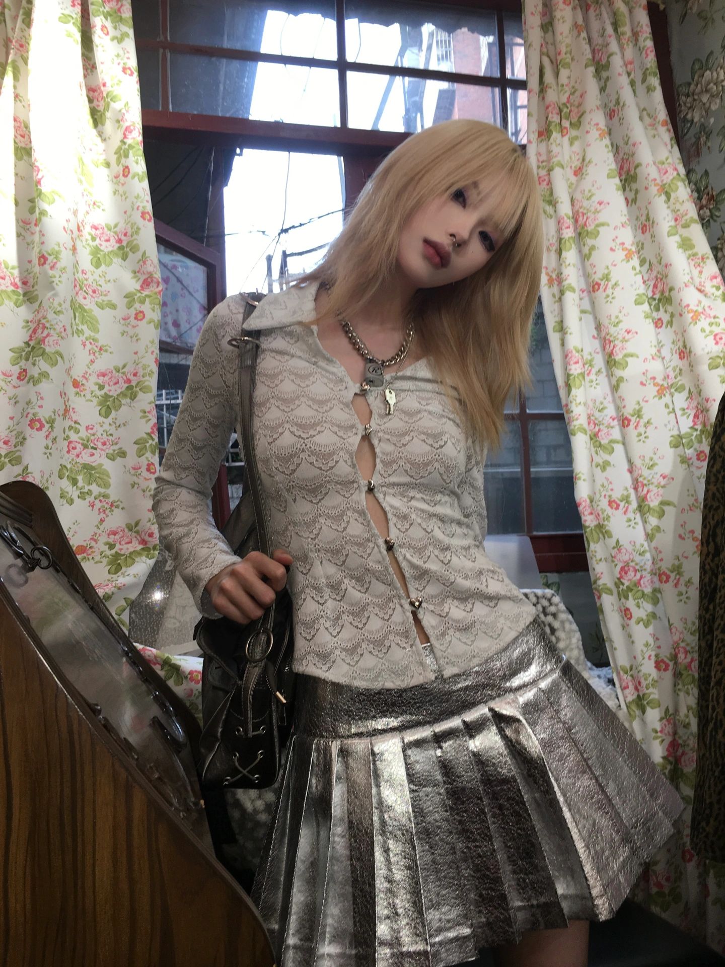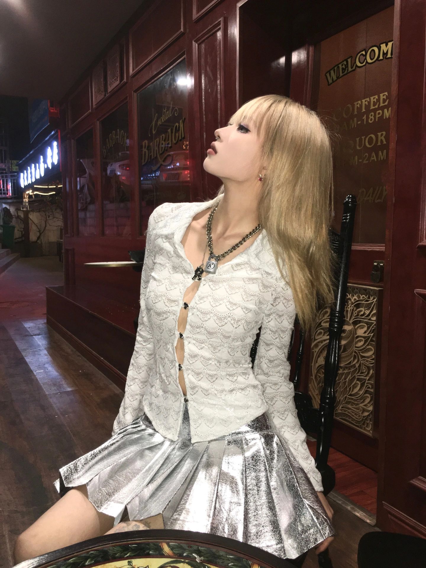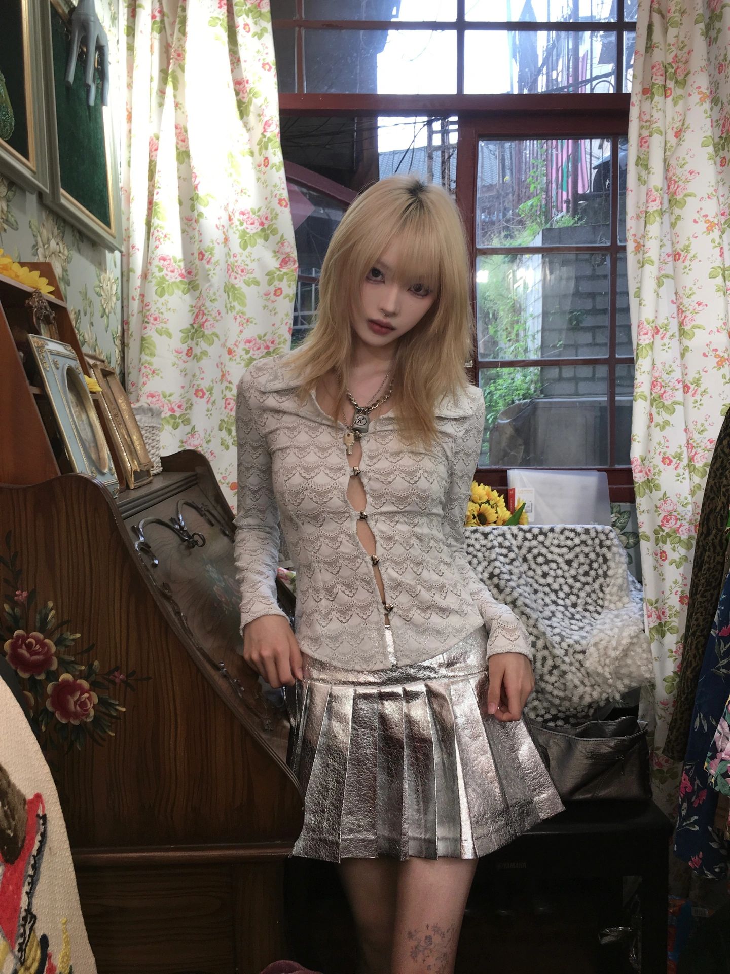 2023SS白色“心碎”針織開衫性感俏皮上衣