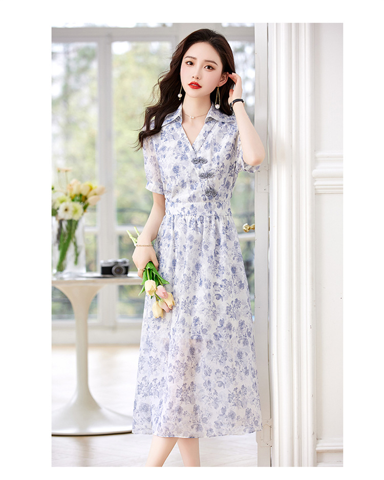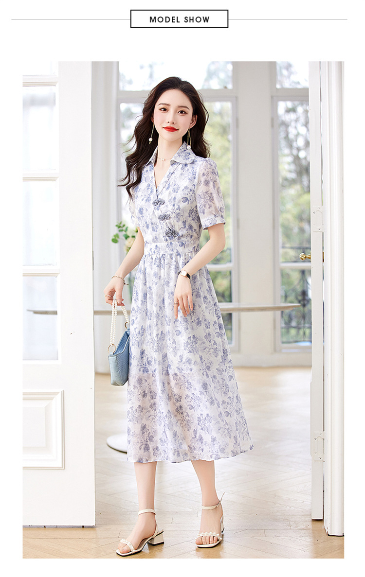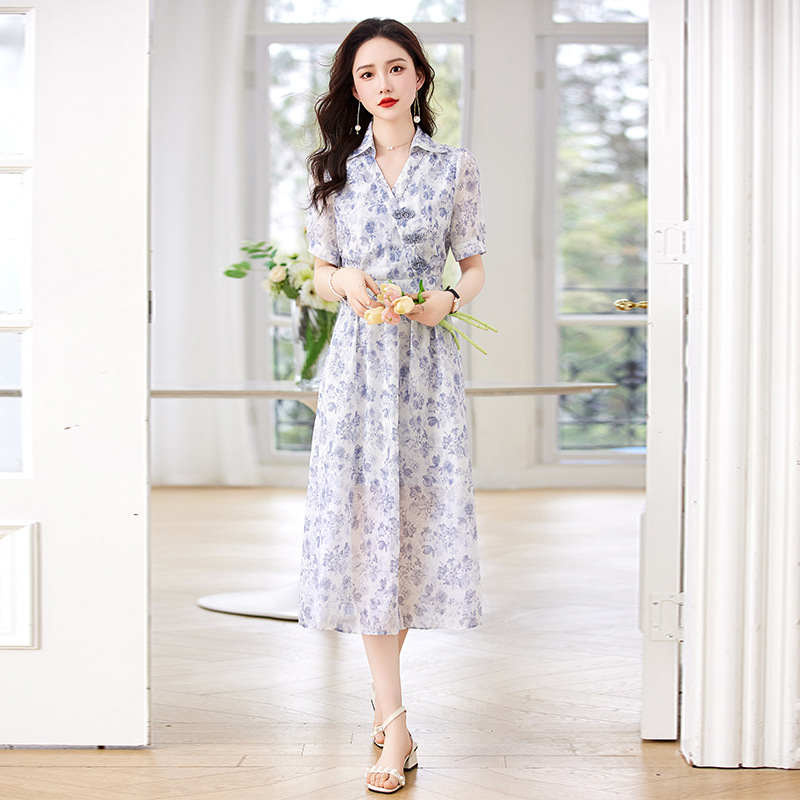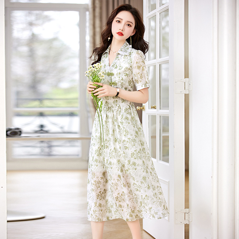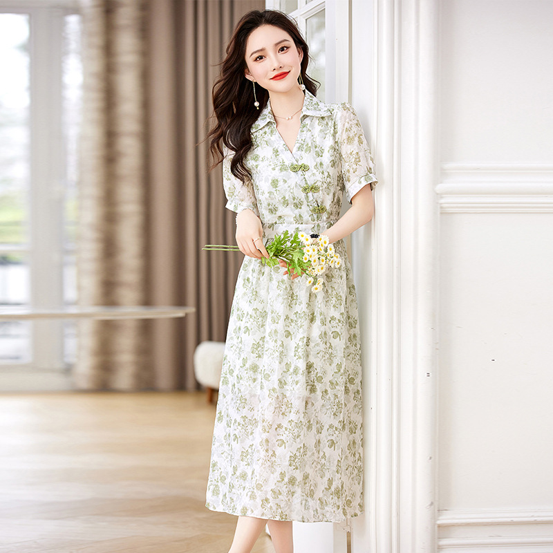 碎花连衣裙女2023夏季新款法式设计感复古国风优雅气质显瘦茶歇裙