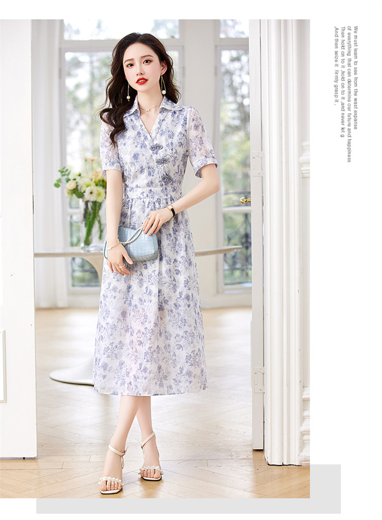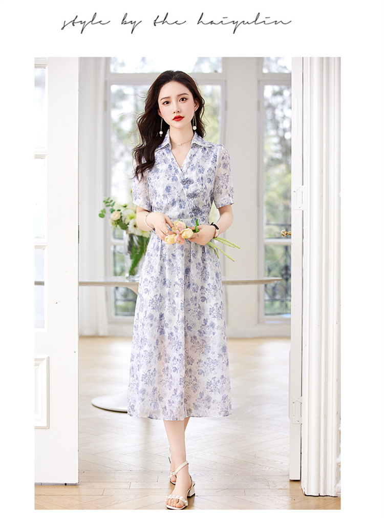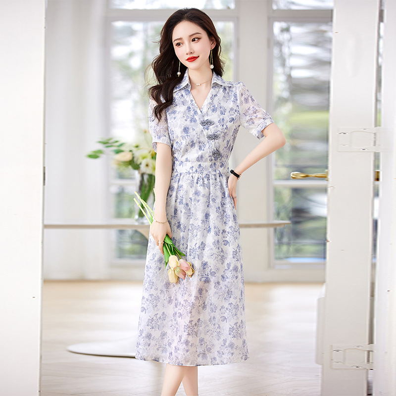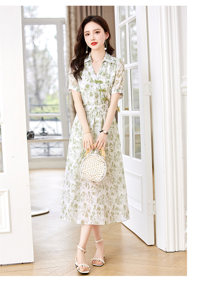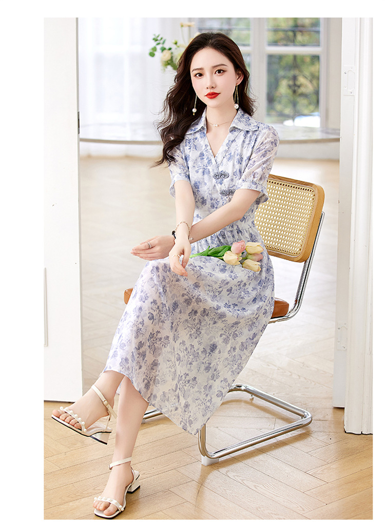 碎花连衣裙女2023夏季新款法式设计感复古国风优雅气质显瘦茶歇裙