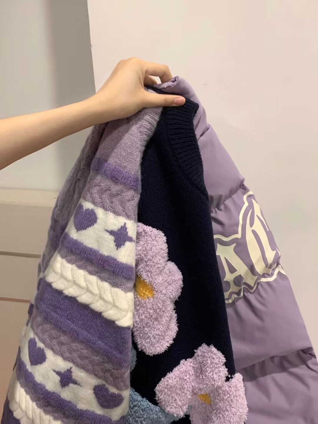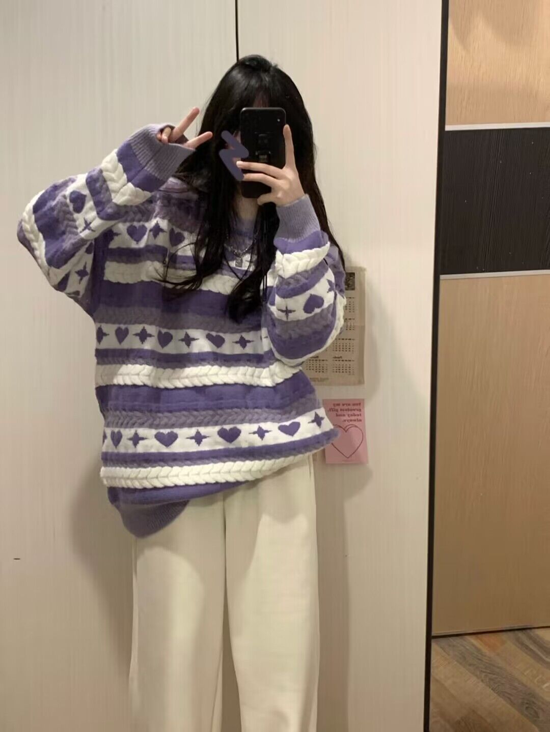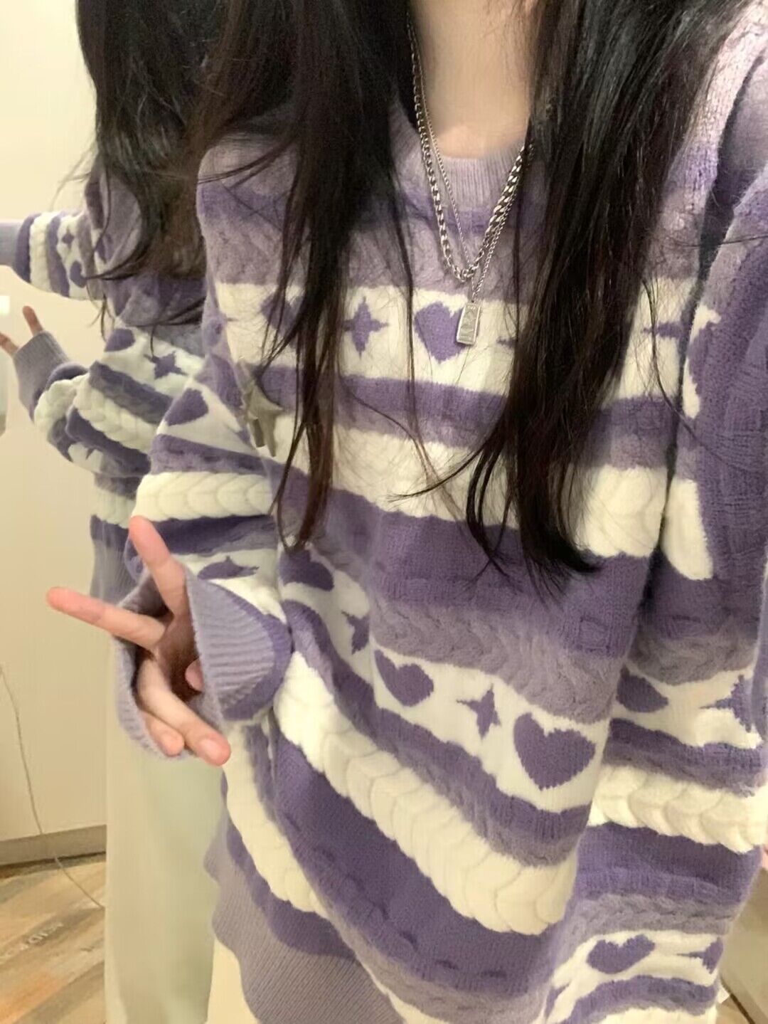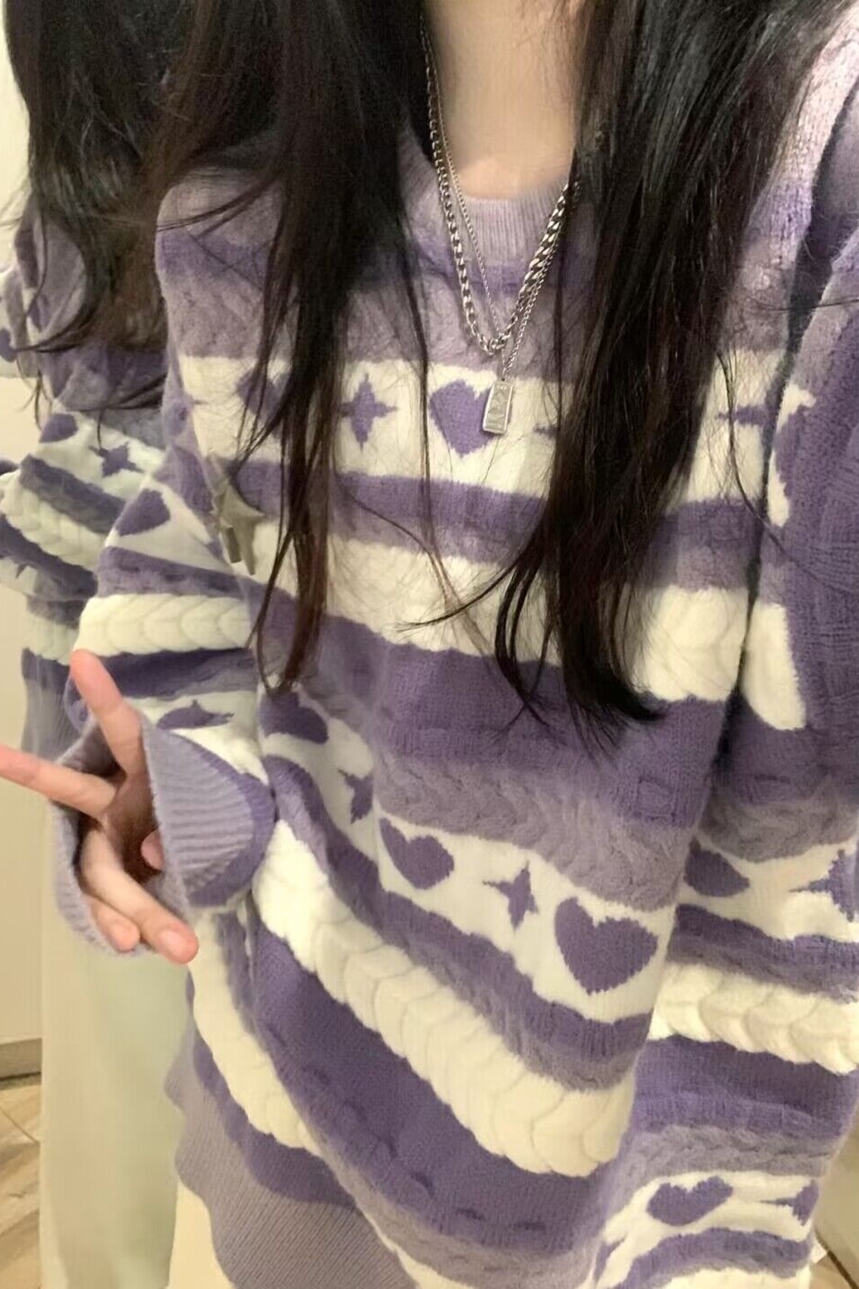 紫色毛衣女冬季新款設計感小眾日系慵懶風復古條紋針織衫圓領上衣