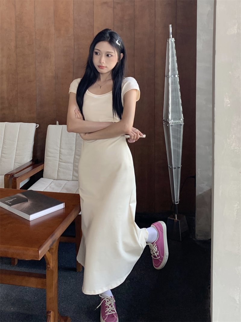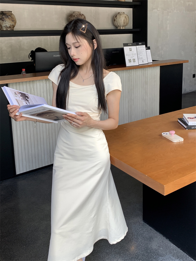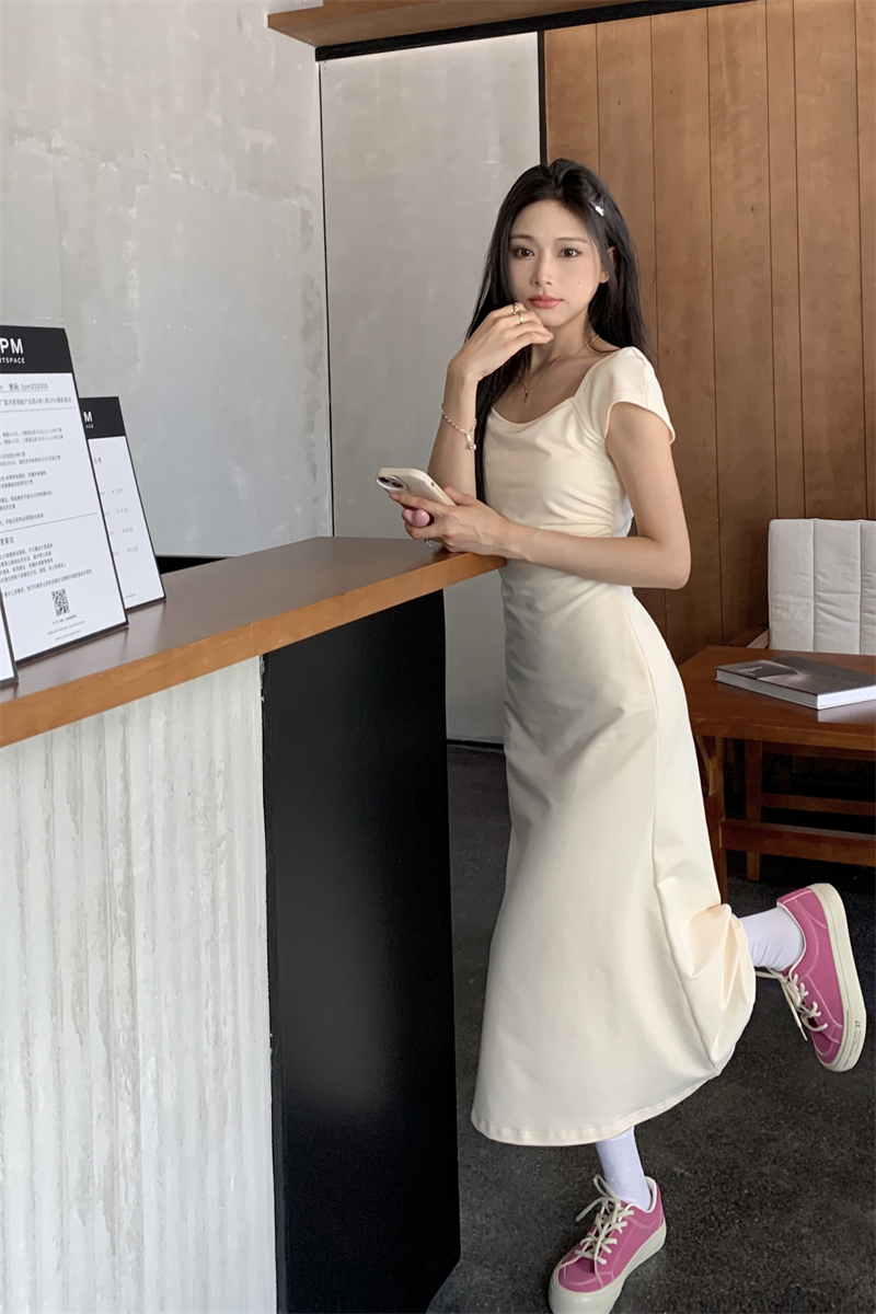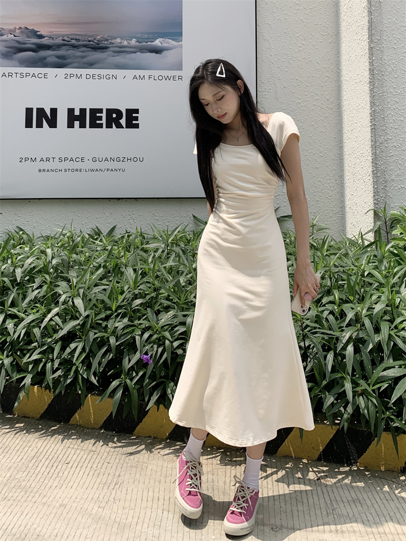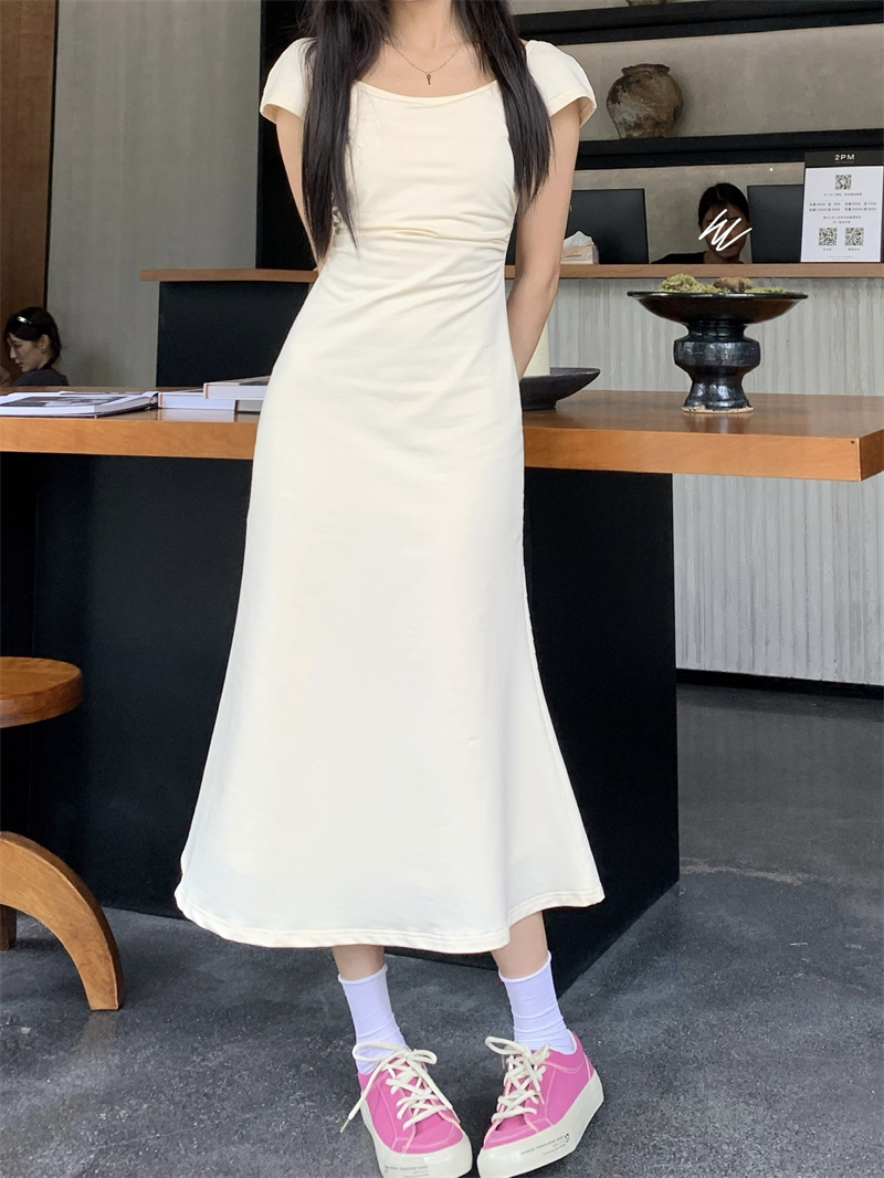 PPHOME花間白芍~溫柔風包臀裙洋裝女夏季新款收腰抽褶針織長裙