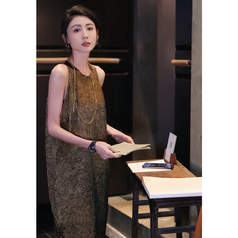 法式復古高端精緻輕熟風氣質寬鬆顯瘦醋酸肌理感無袖洋裝女夏季