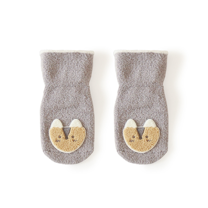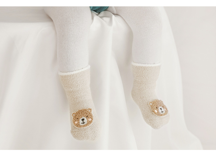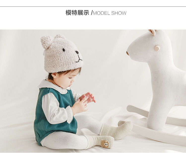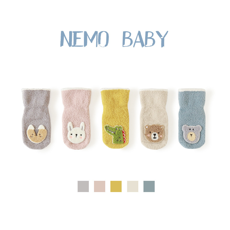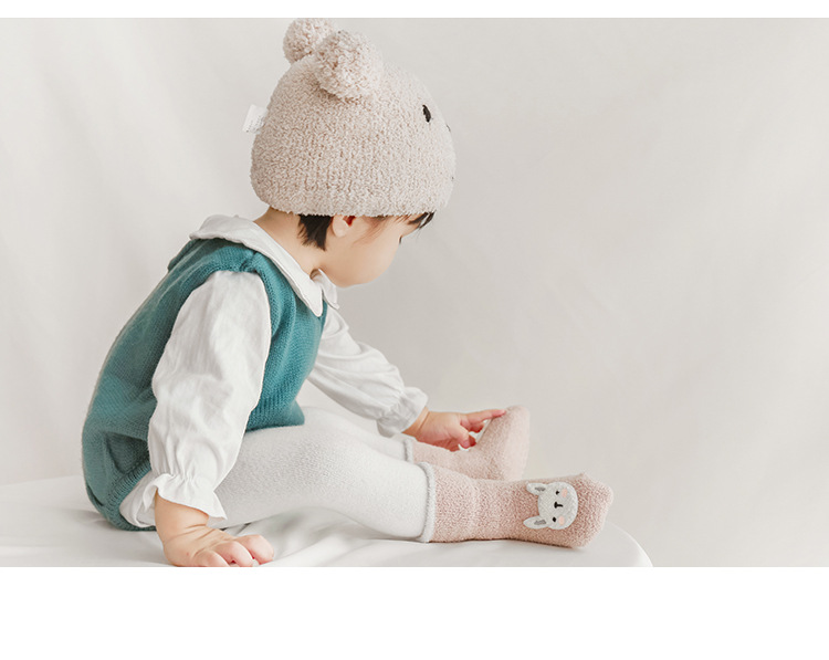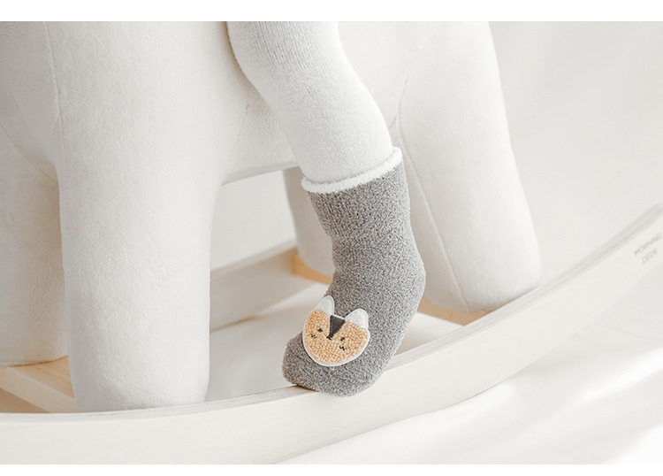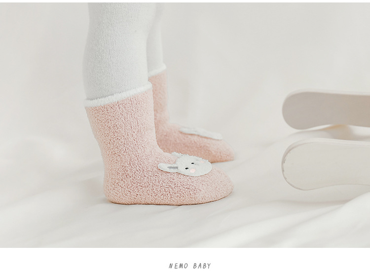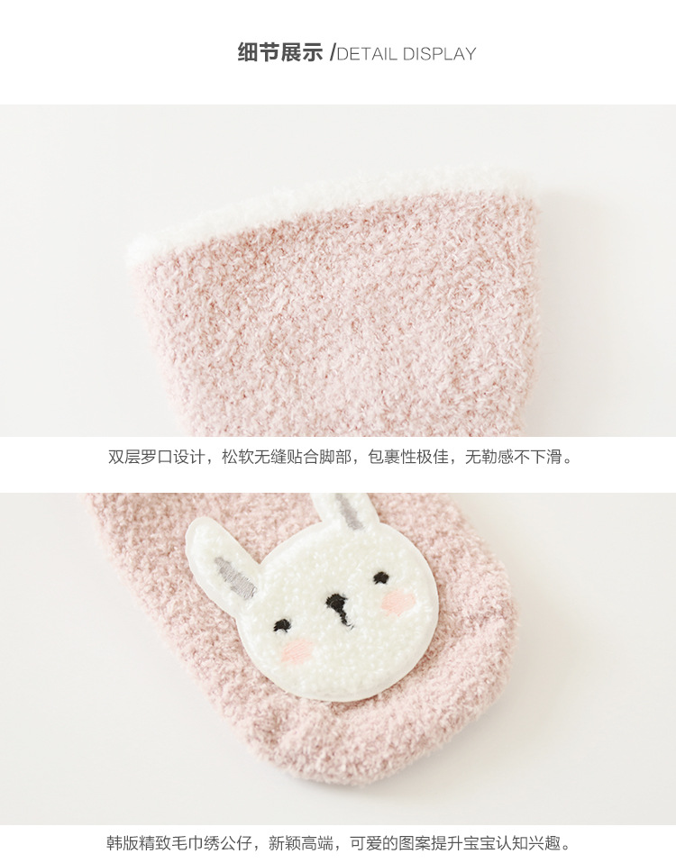 20年冬季新品宝宝袜子韩版卡通保暖加绒毛巾袜新生婴儿防滑地板袜
