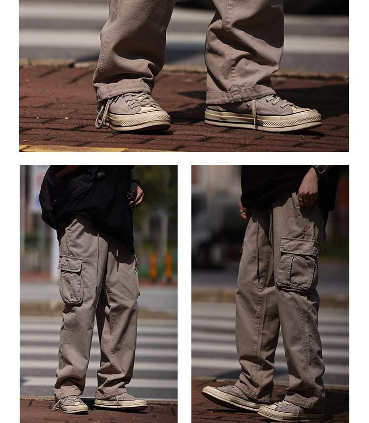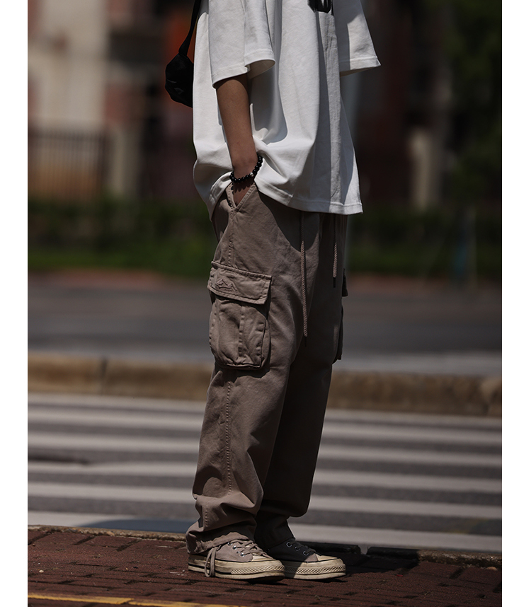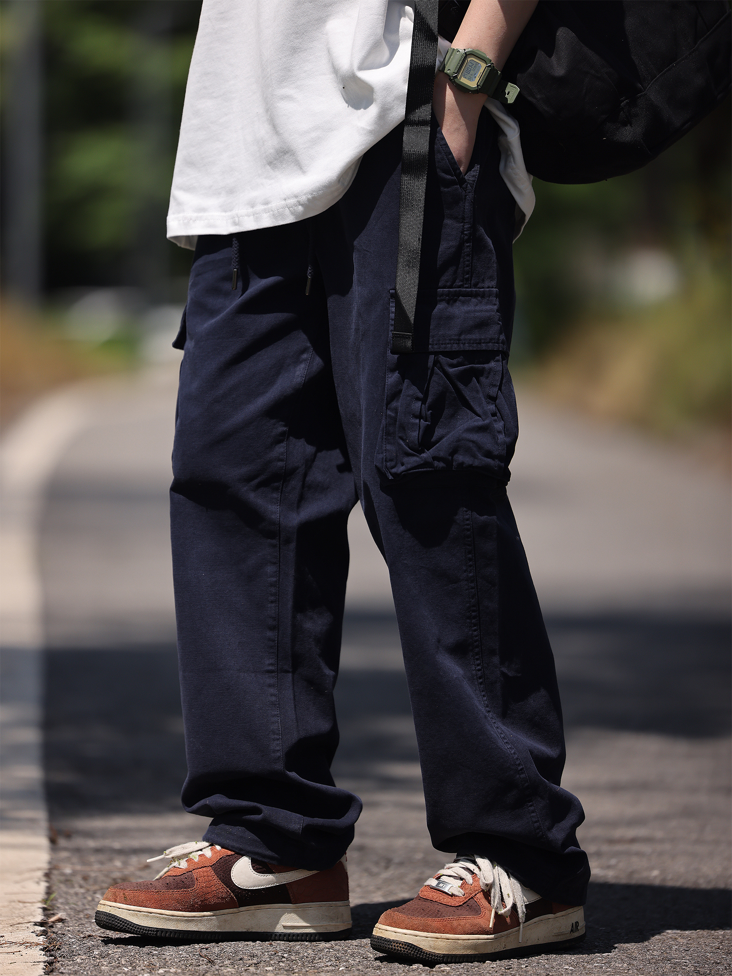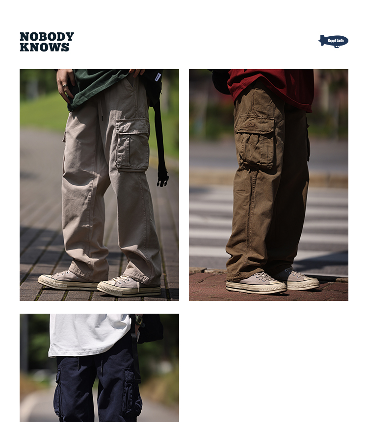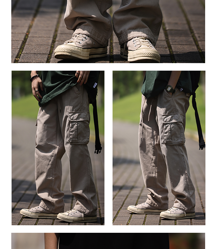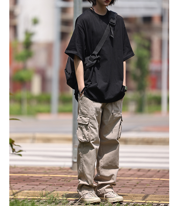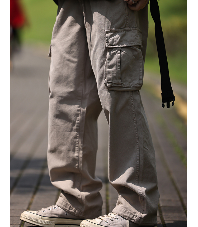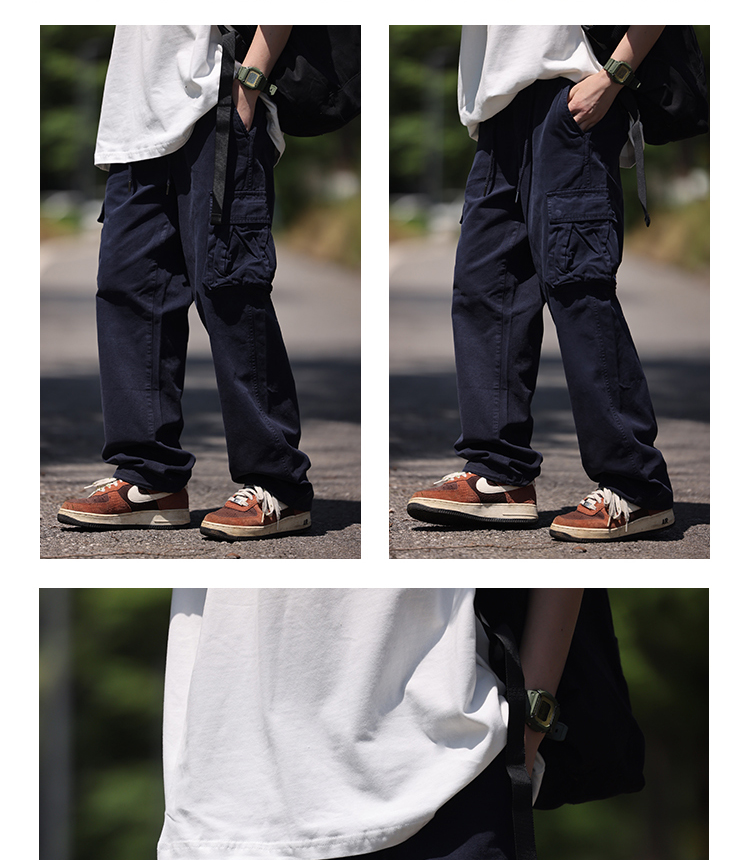 Nobodyknows日系cleanfit休閒褲口袋工裝褲顯瘦直筒基礎百搭長褲