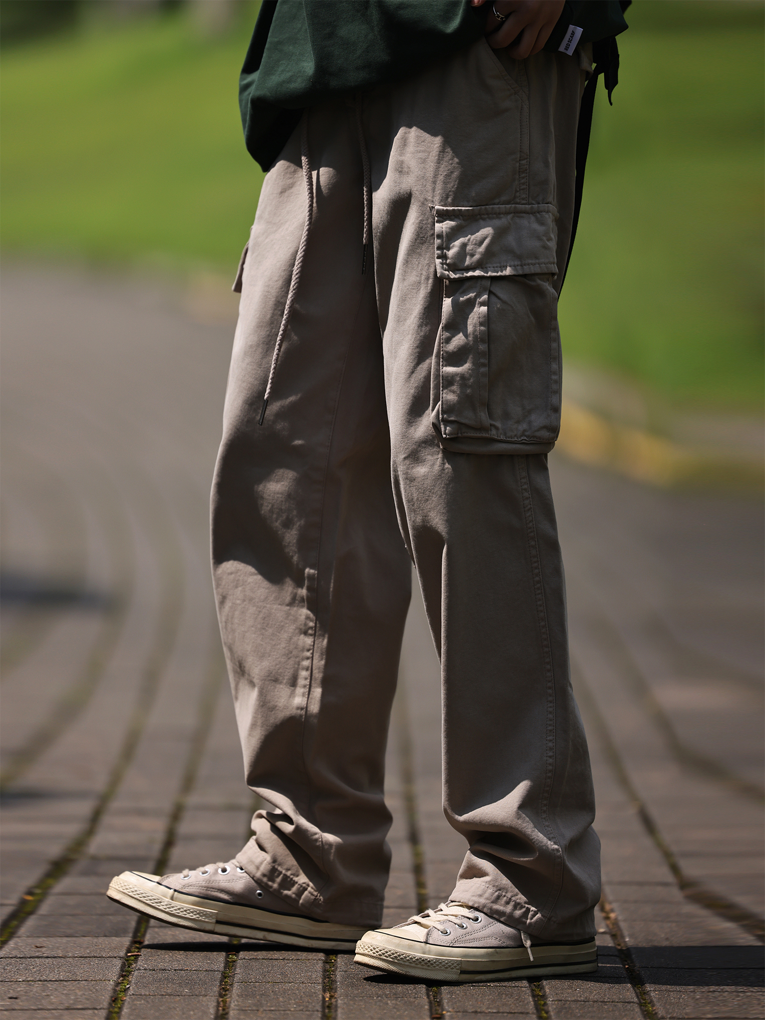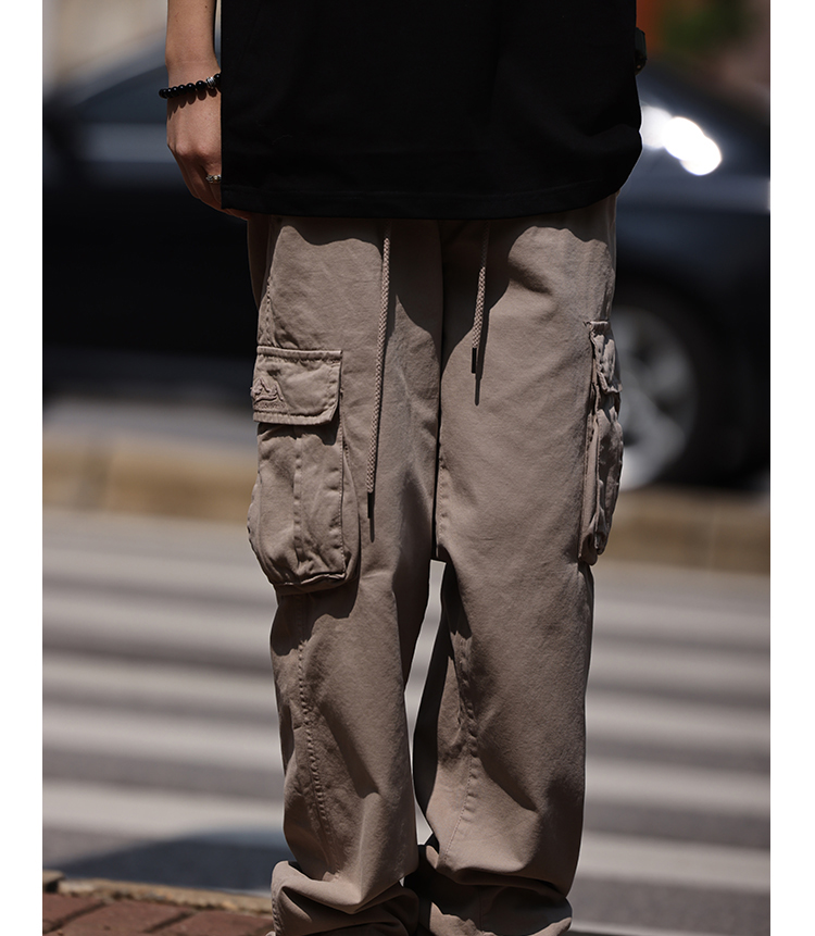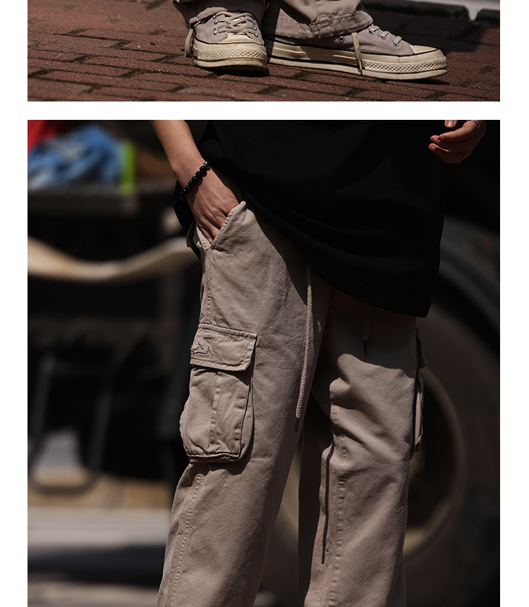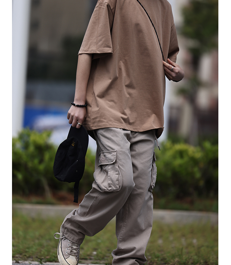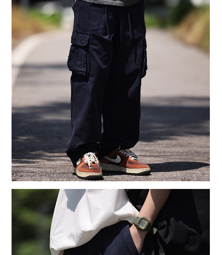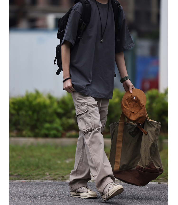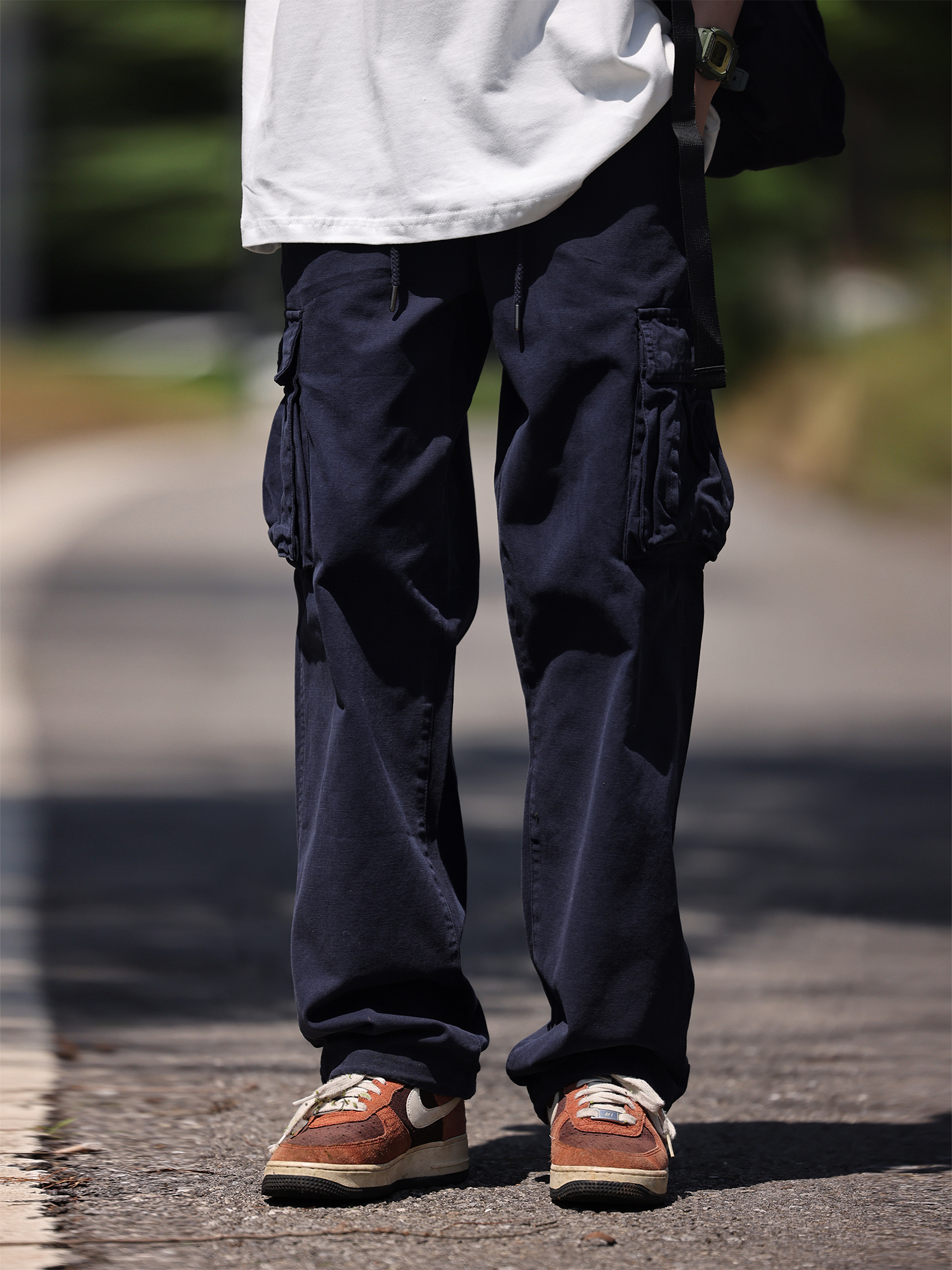 Nobodyknows日系cleanfit休閒褲口袋工裝褲顯瘦直筒基礎百搭長褲