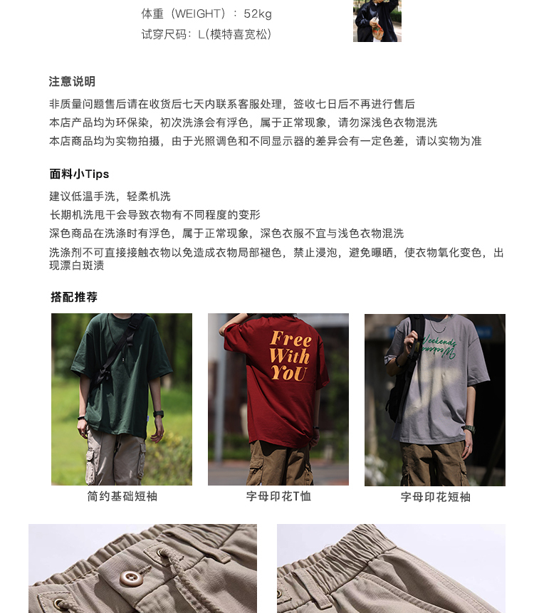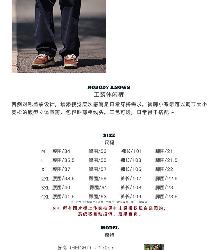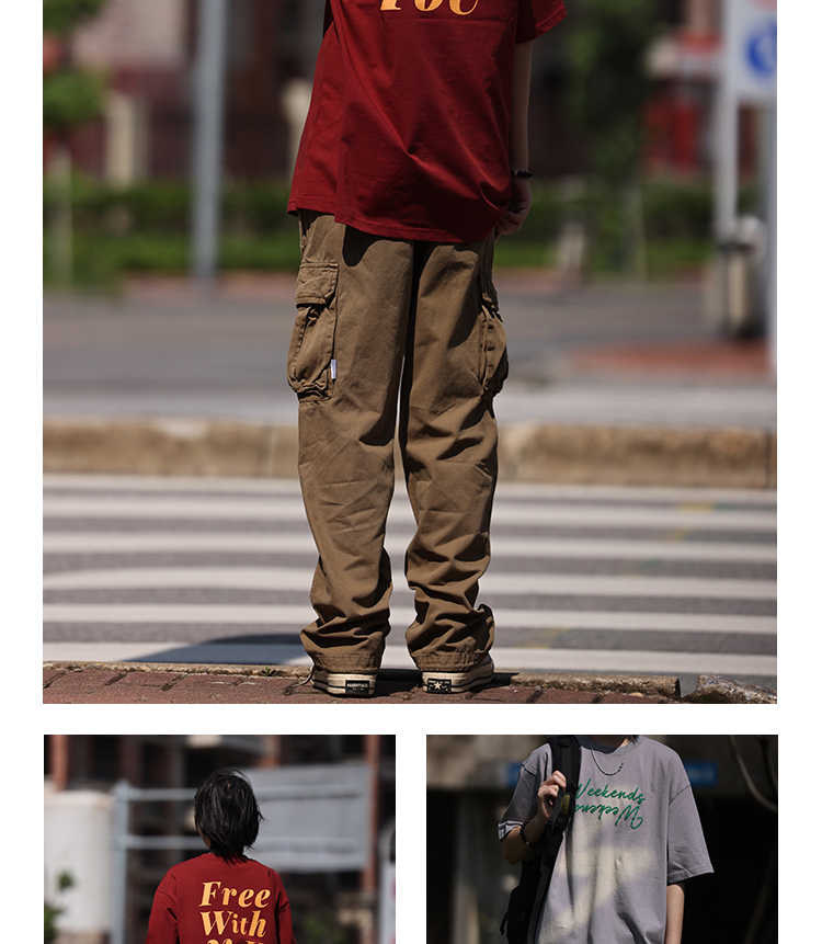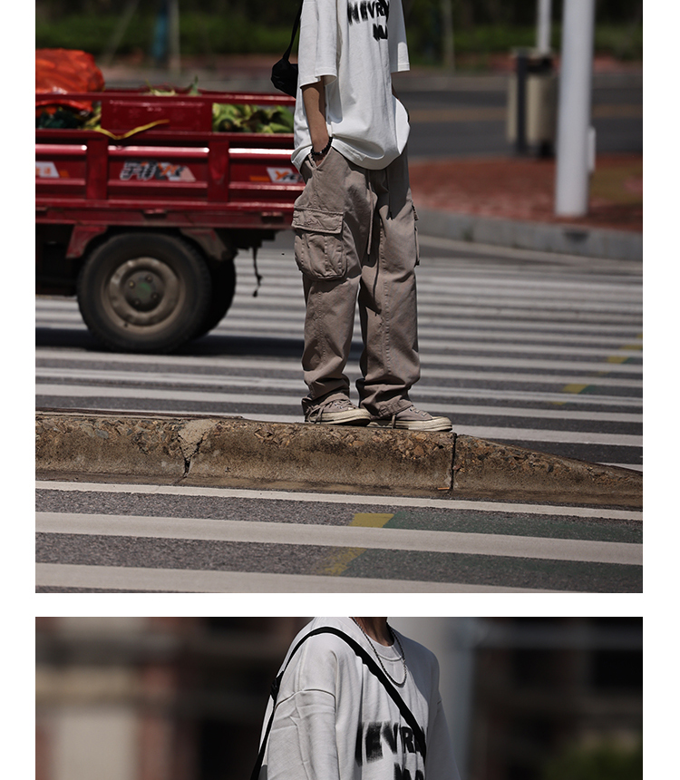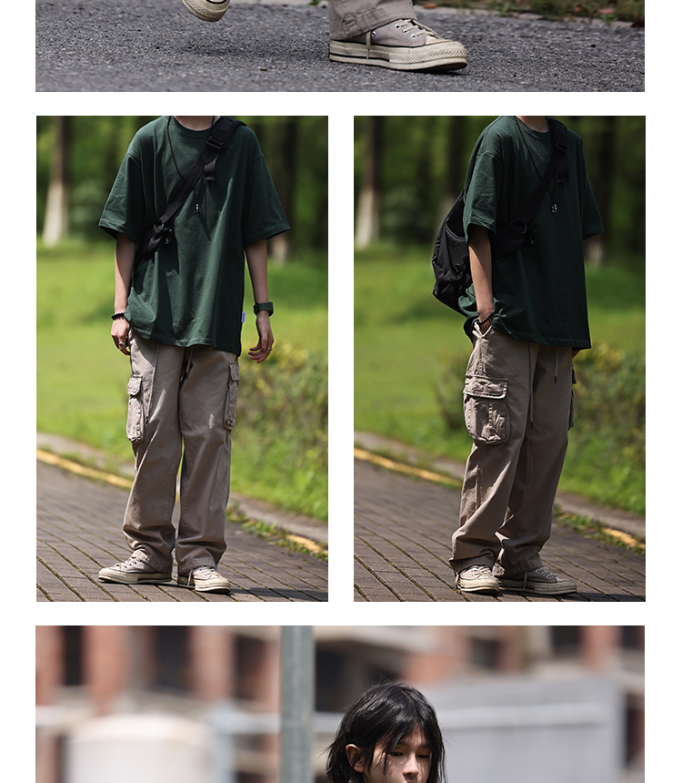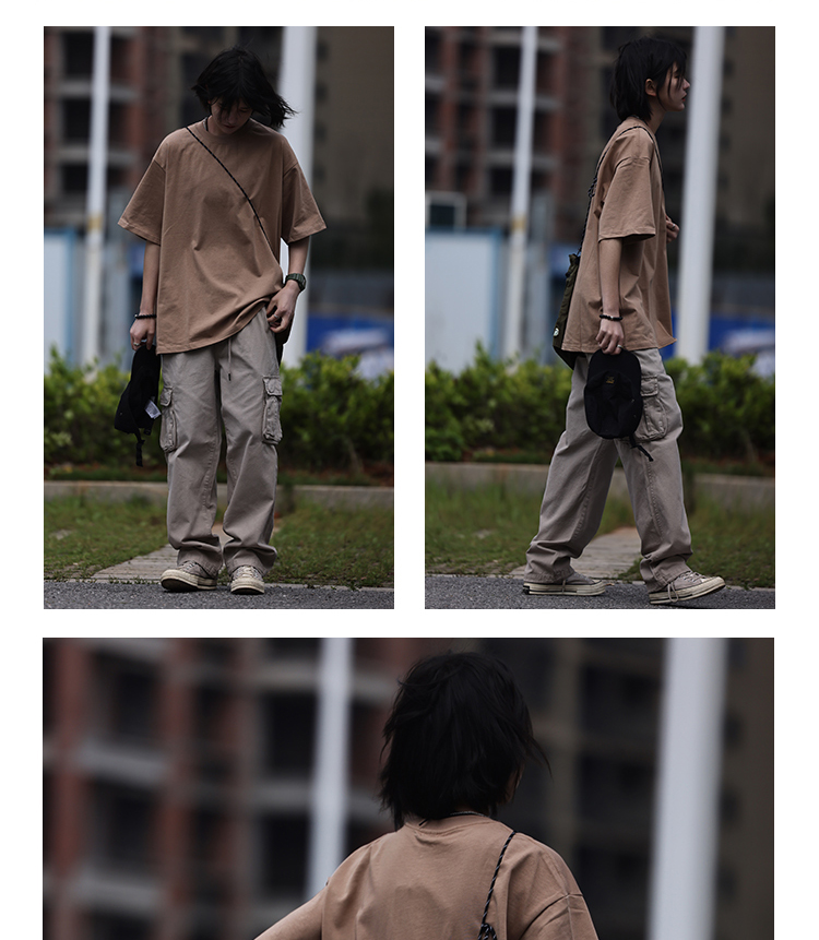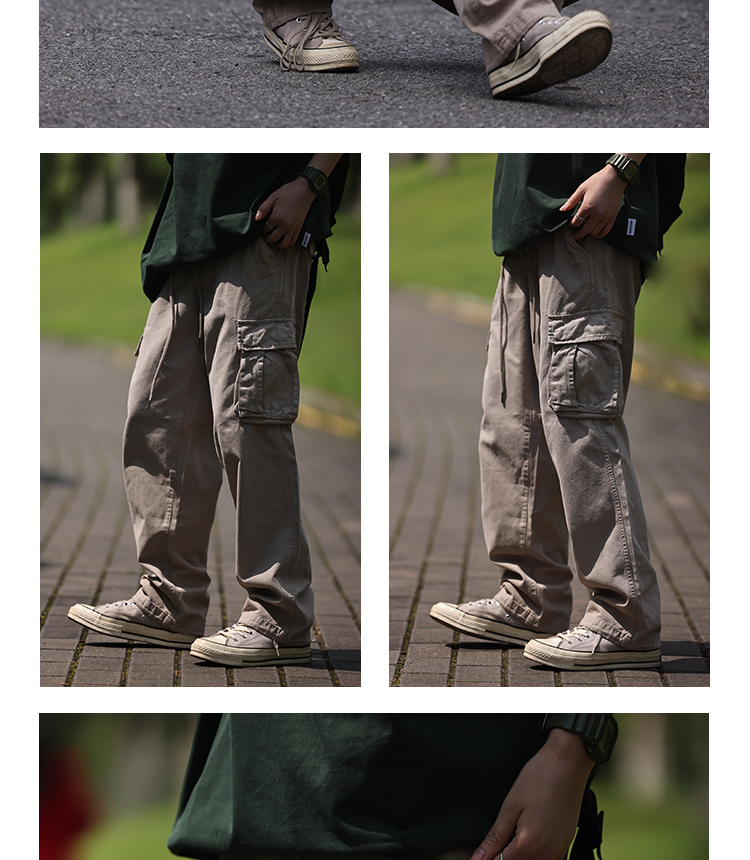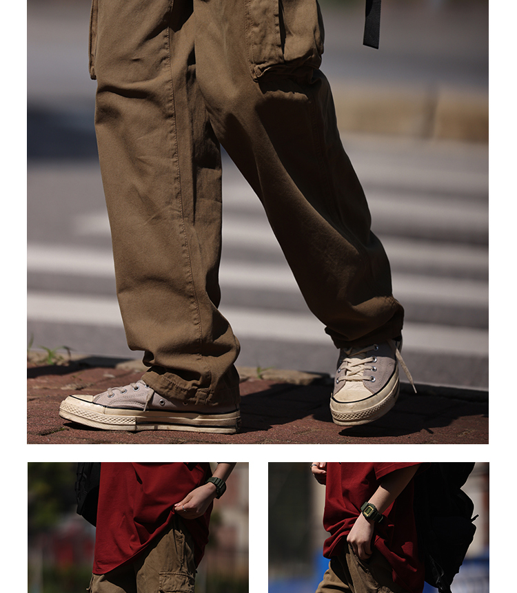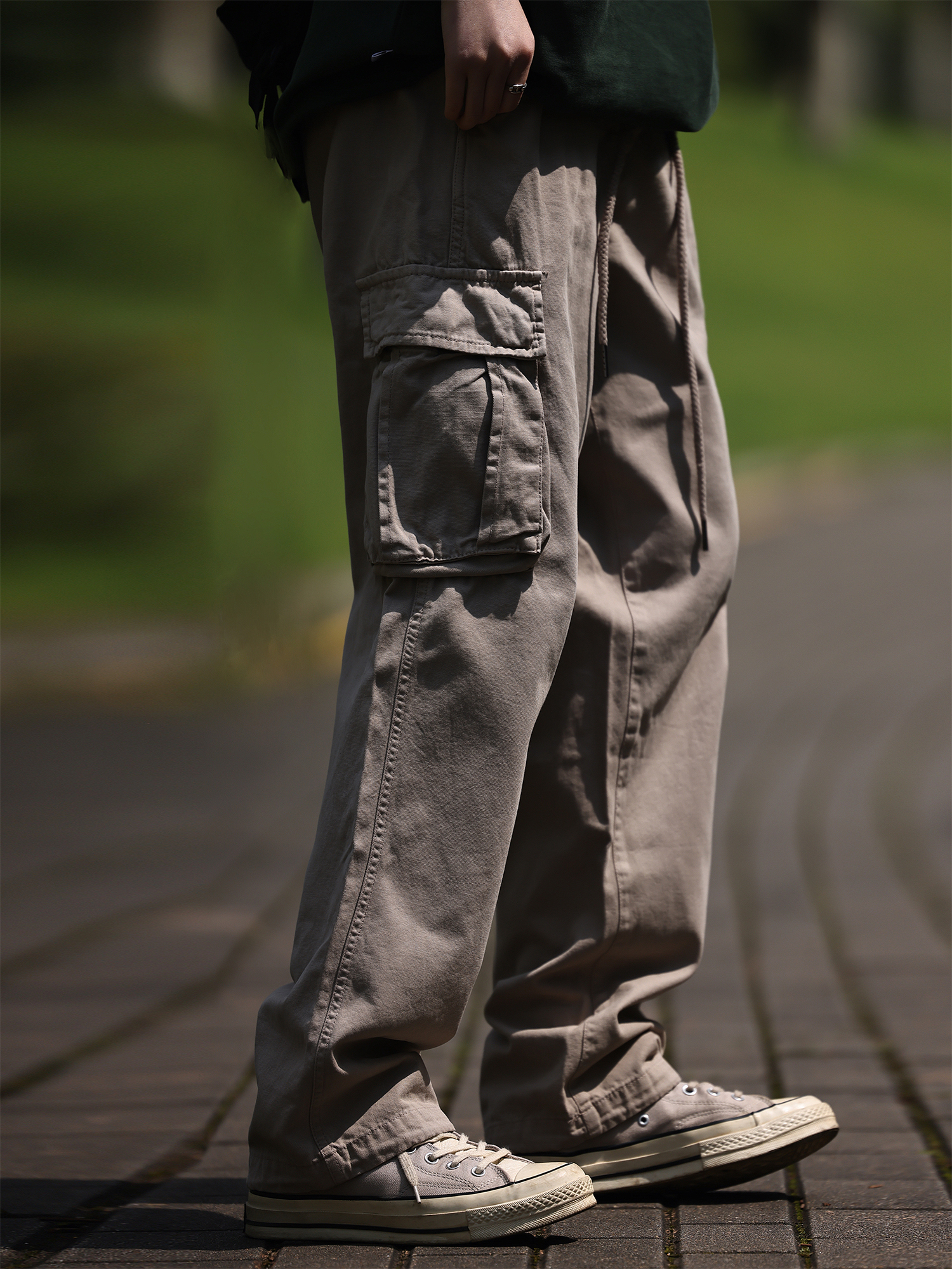 Nobodyknows日系cleanfit休閒褲口袋工裝褲顯瘦直筒基礎百搭長褲