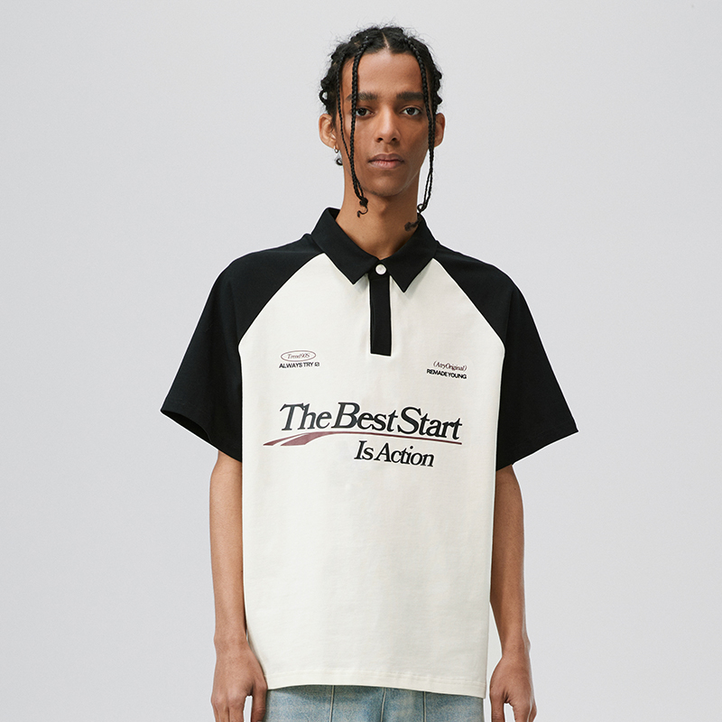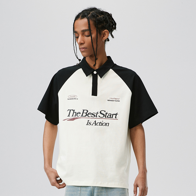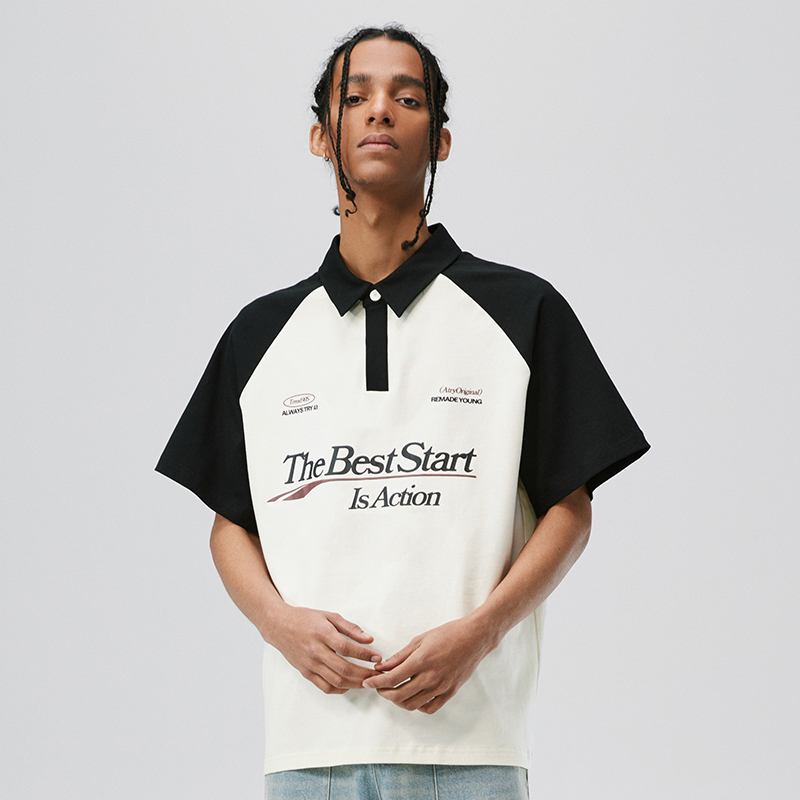 ATRY賽車插肩POLO短袖 夏季國潮牌美式情侶美式百搭方領T恤上衣男