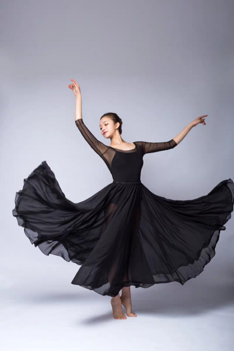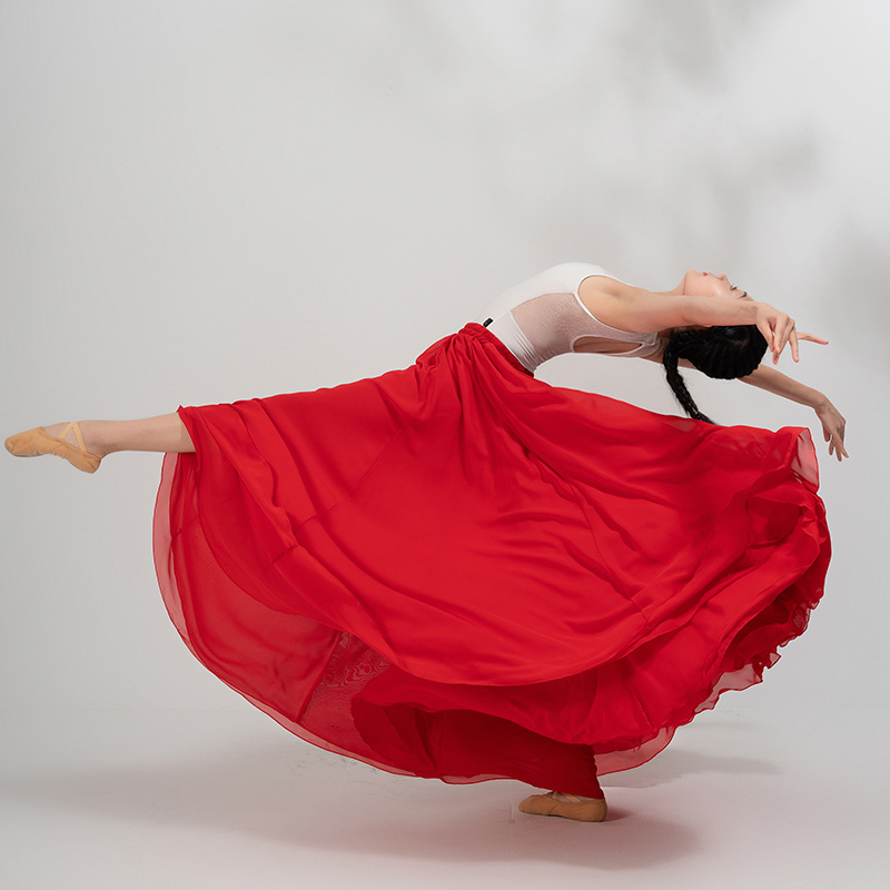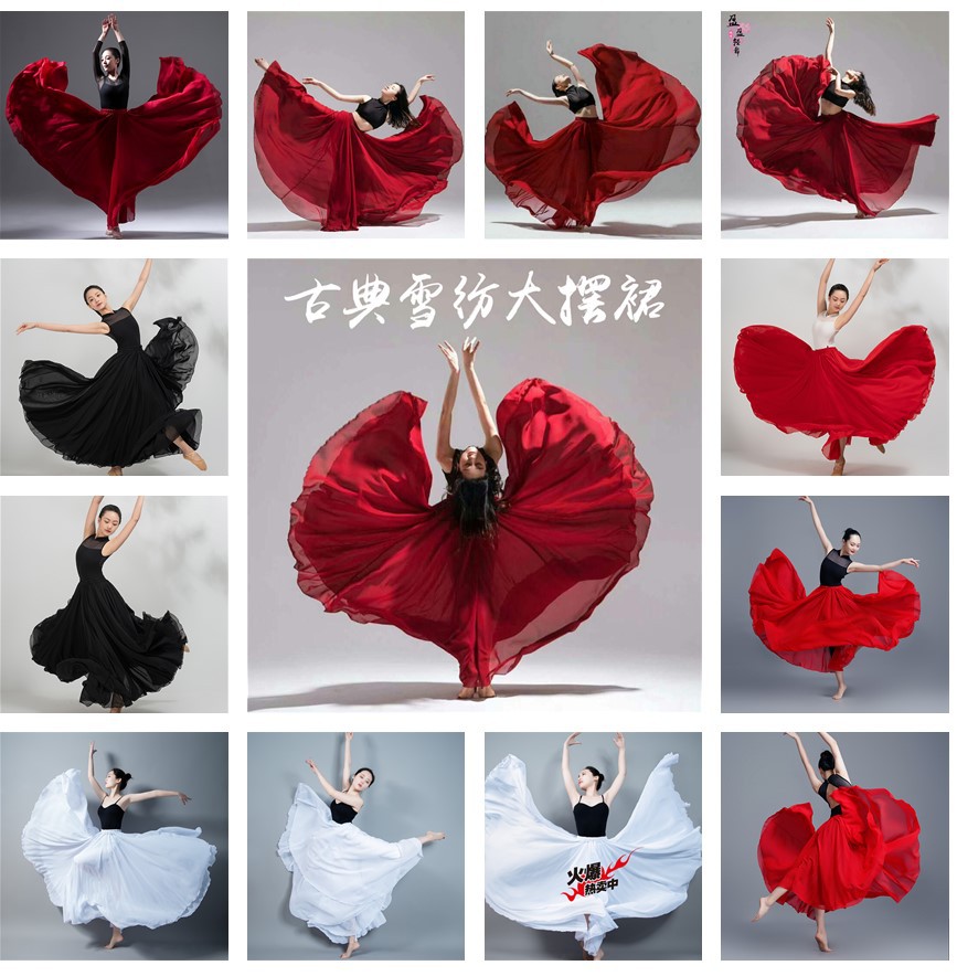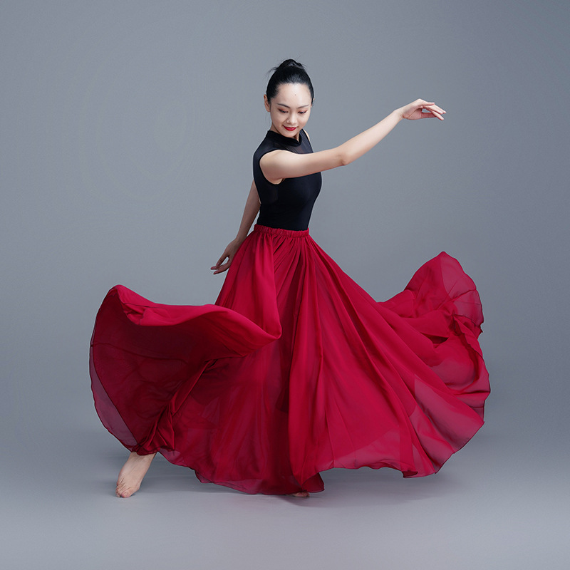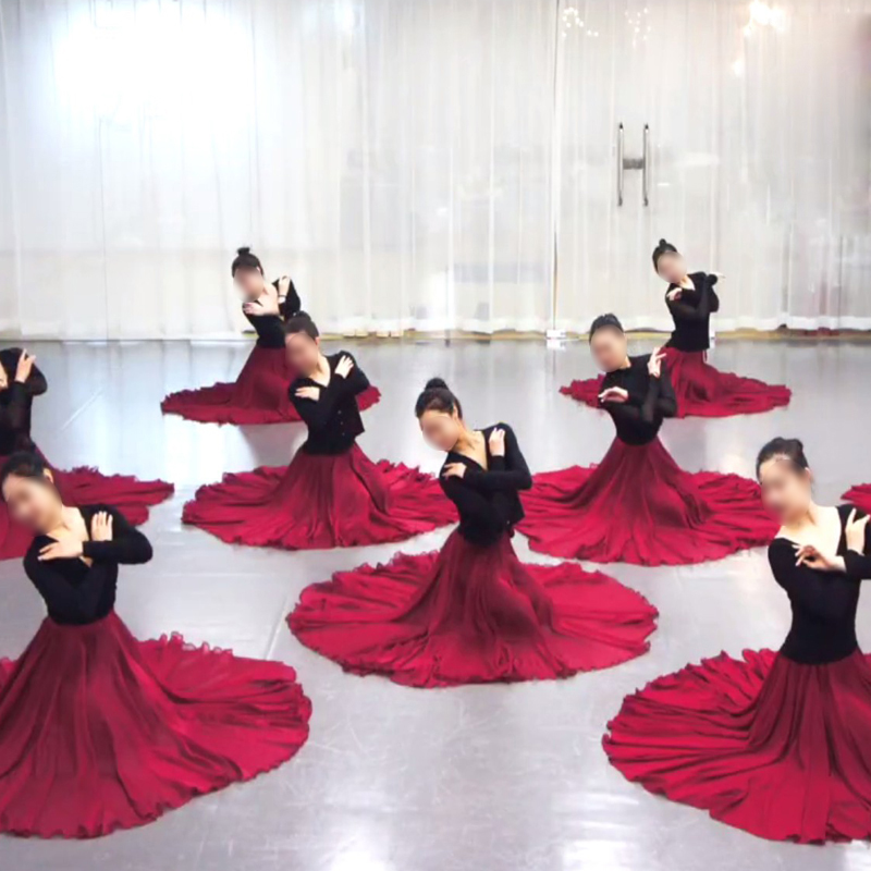 古典舞蹈服女飘逸新疆舞演出服半身长裙大摆裙现代芭蕾练功服纱裙
