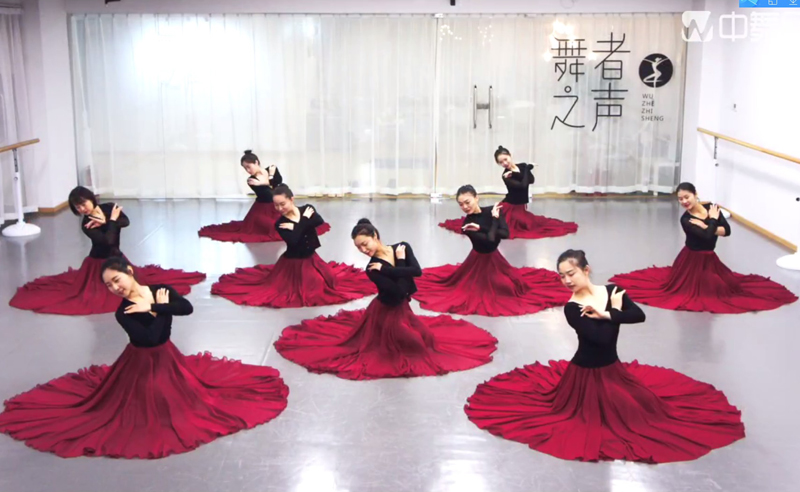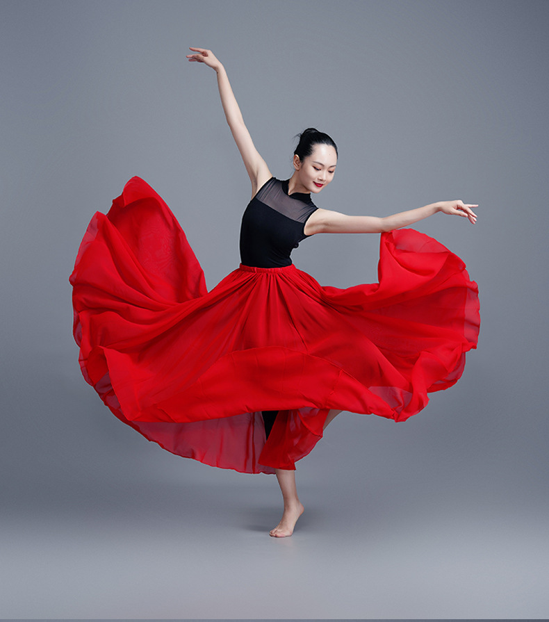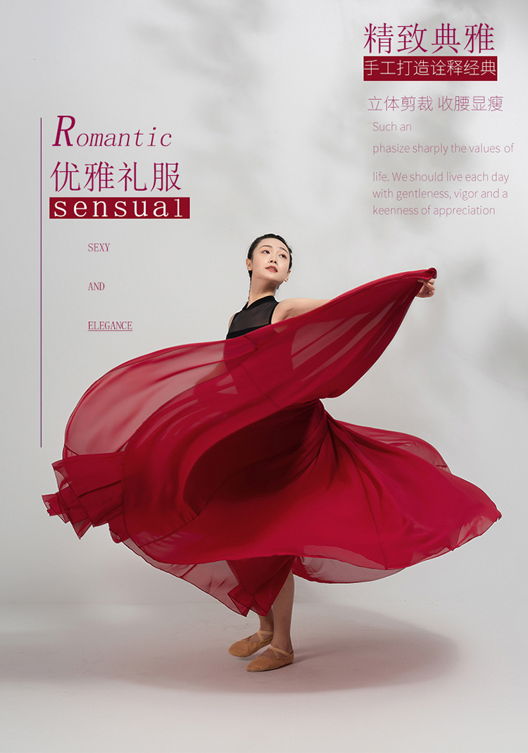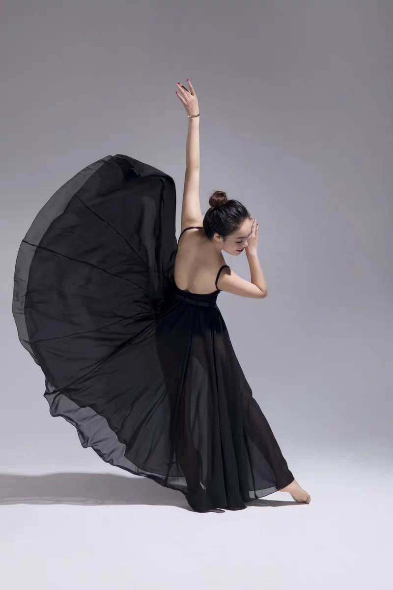 古典舞蹈服女飘逸新疆舞演出服半身长裙大摆裙现代芭蕾练功服纱裙